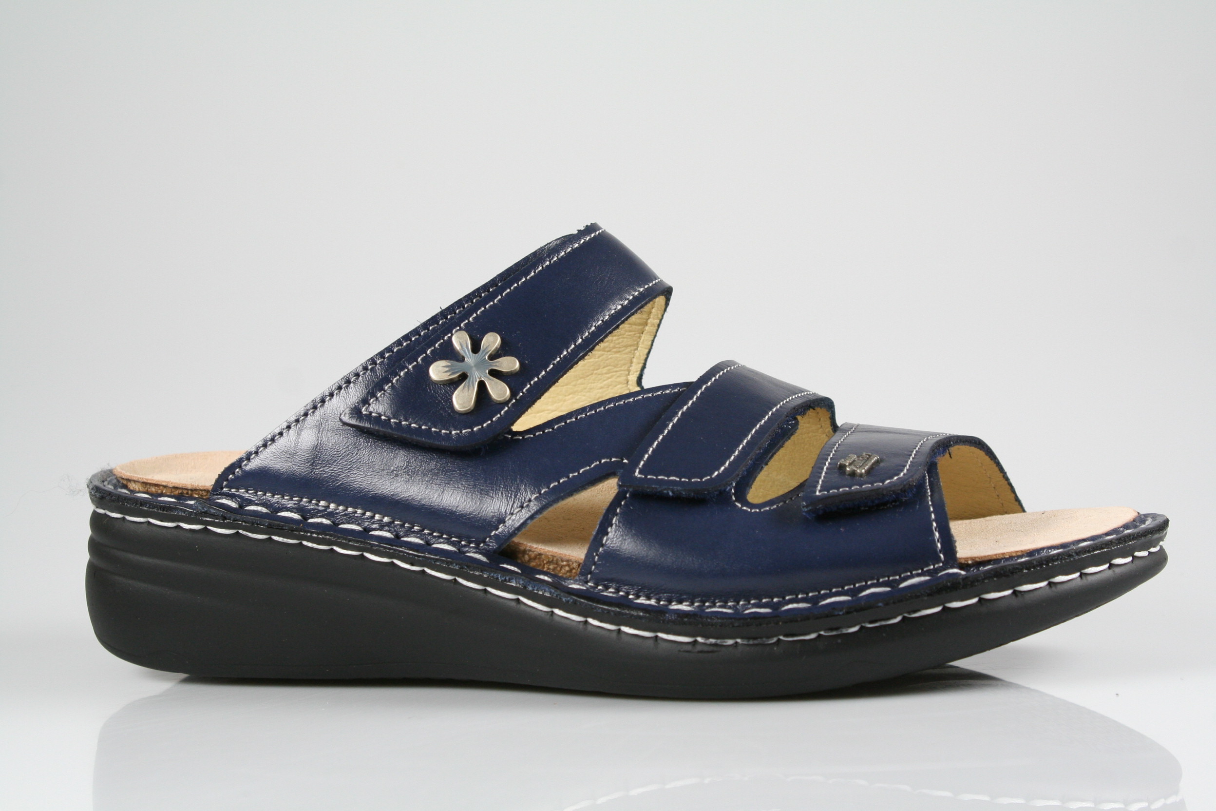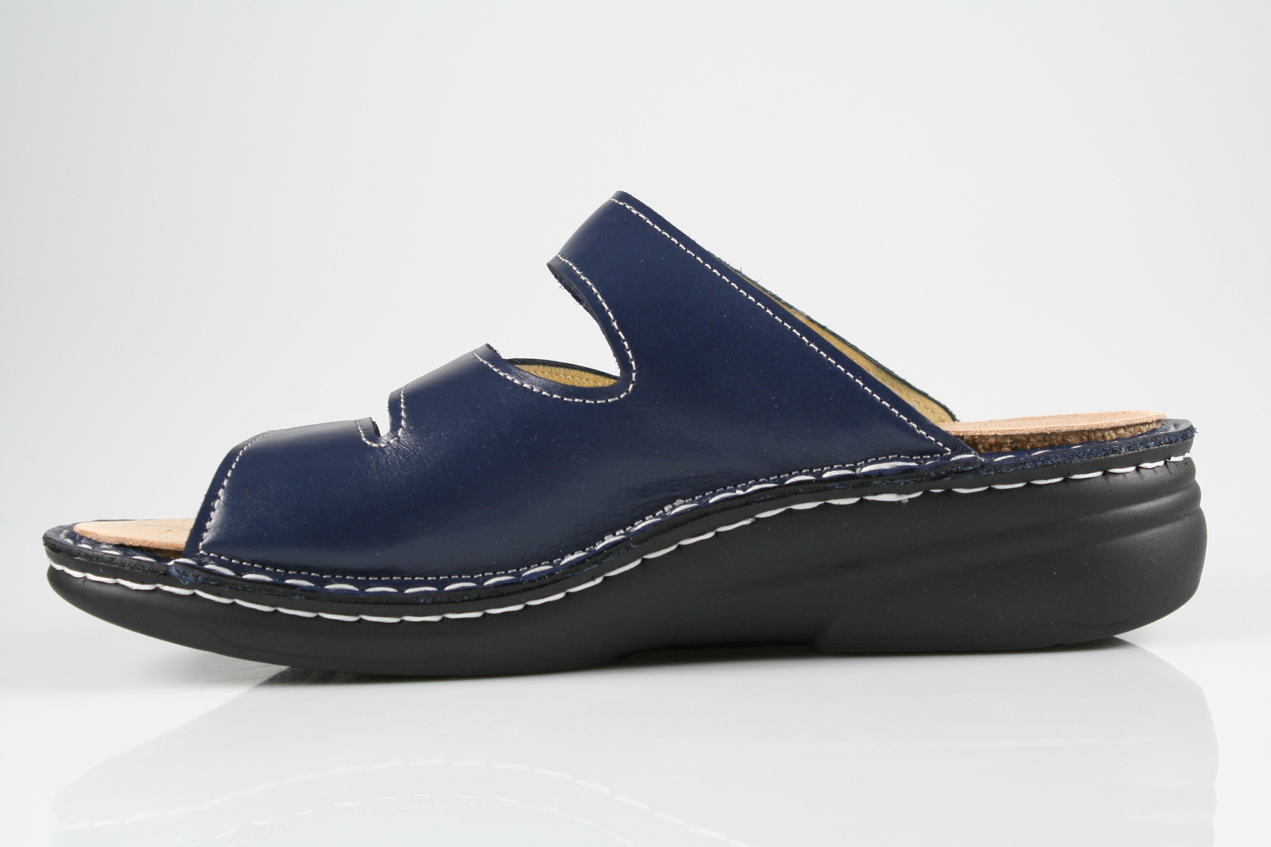 Typ: Pantolette; Farbe:"blue/yuka"; Ausstattung:; - Obermaterial: Leder; - Lederfutter; - herausnehmbares Fußbett; - leichte Laufsohle; - Riemchen mit Klettverschluss; - Modell "Grenada"
