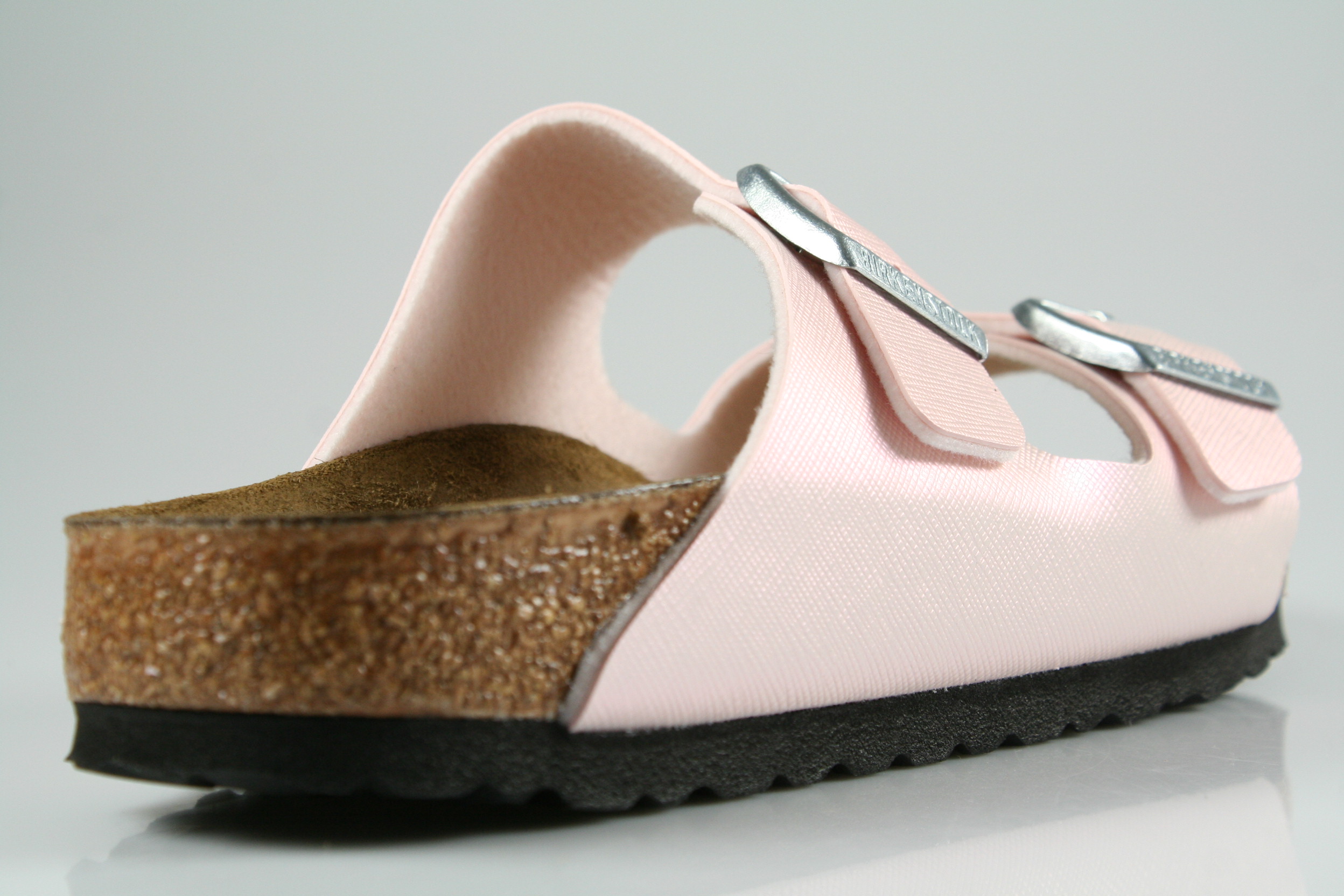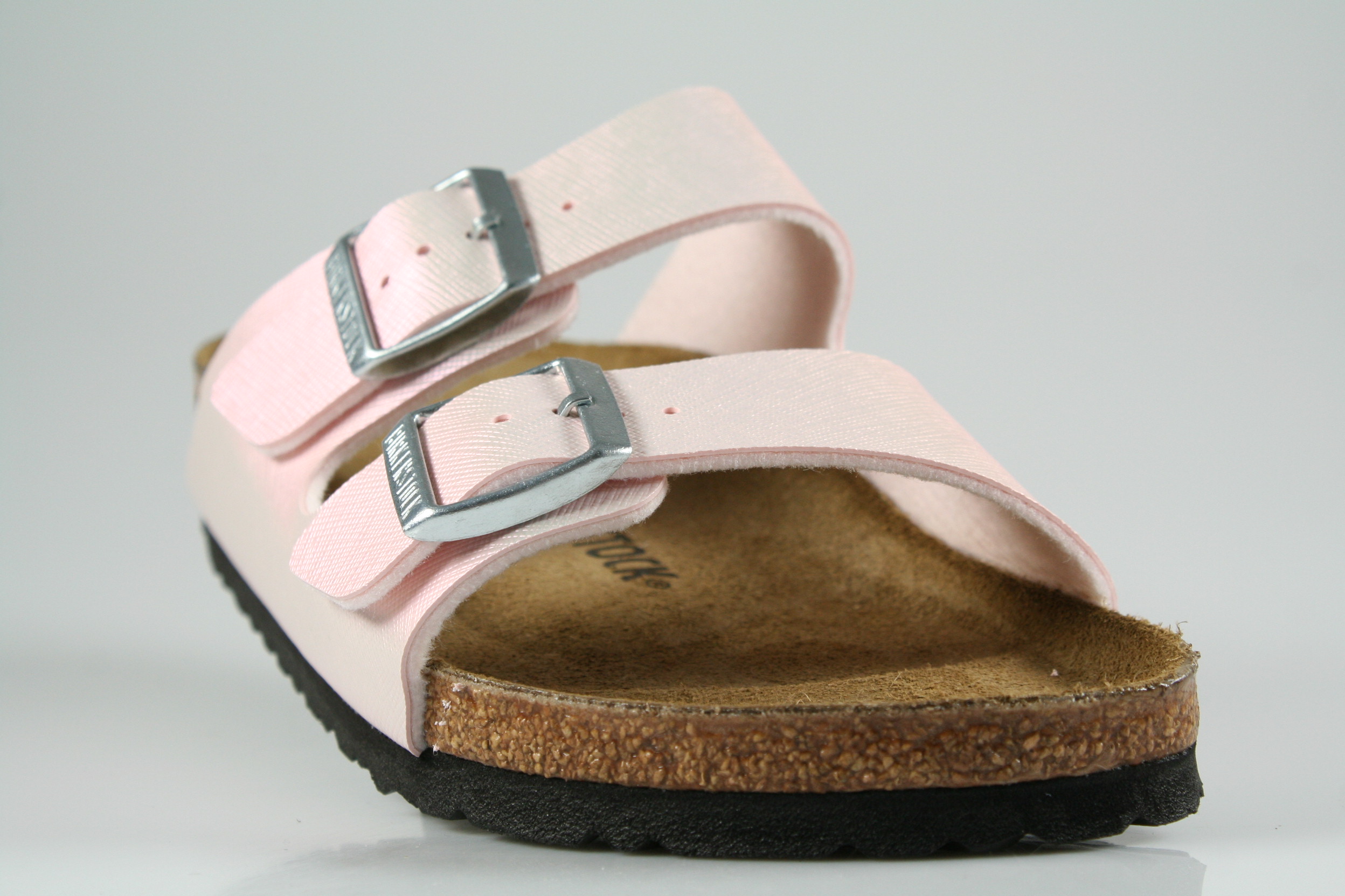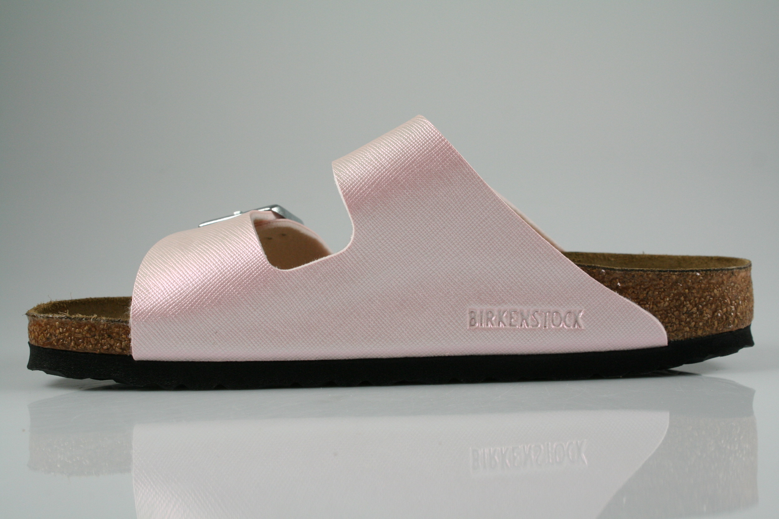Typ: Pantolette; Farbe: "saffiano iridescent light rose"; Ausstattung:; - Obermaterial: Birko-Flor; - Lederfußbett; - leichte Laufsohle; - Riemchen zur Weitenregulierung; - schmale Weite