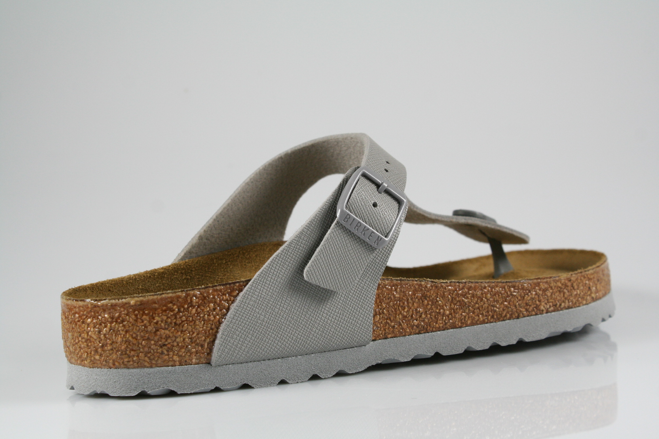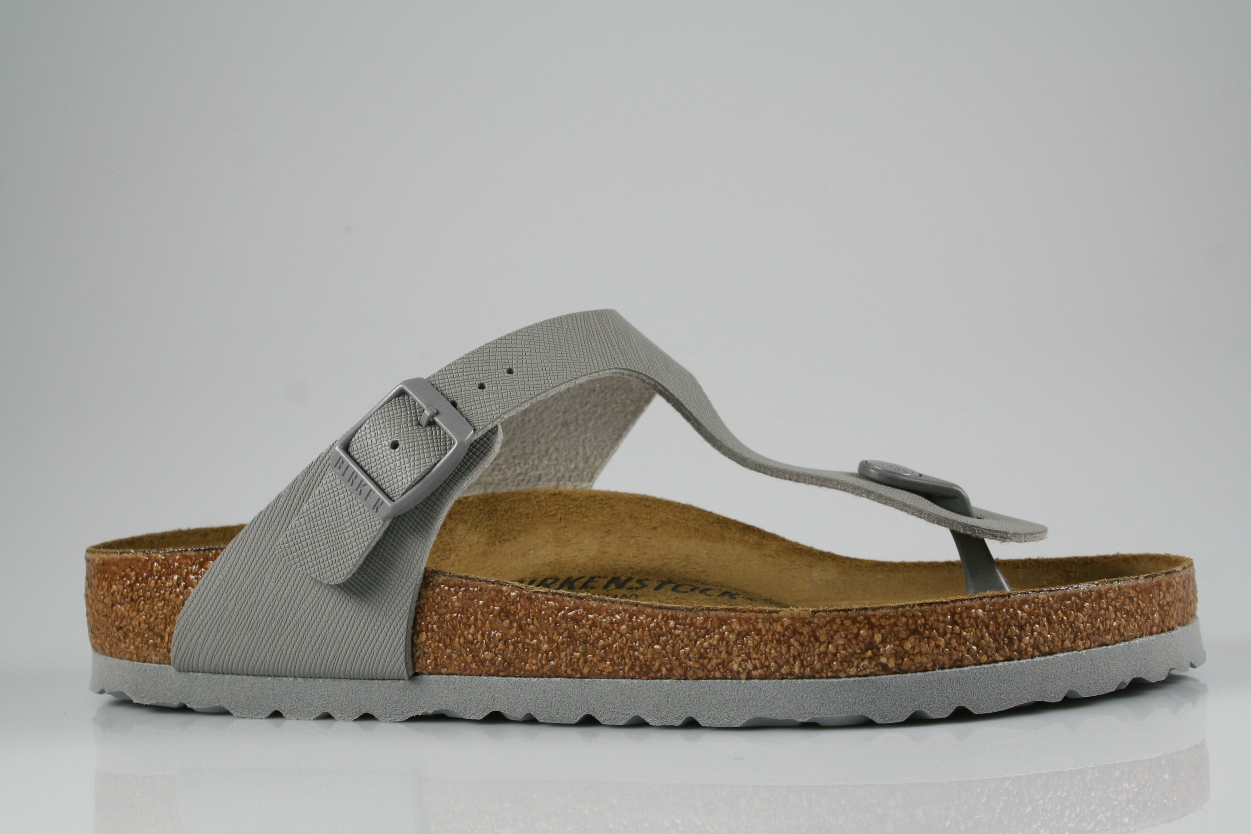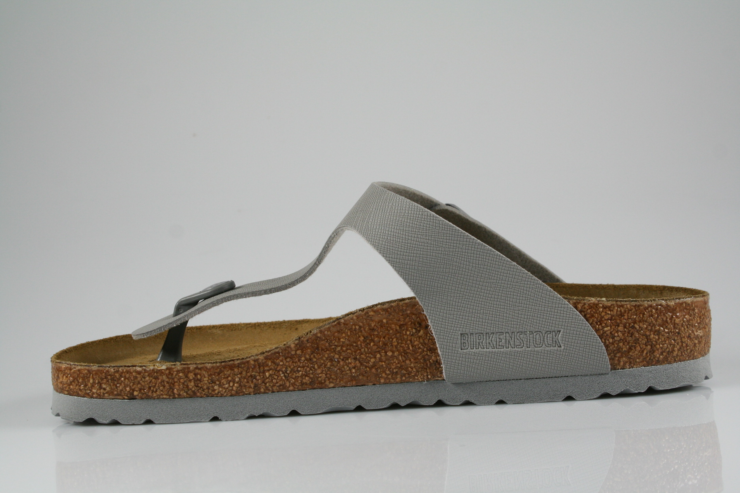 Typ: Pantolette; Farbe: "stone coin"; Ausstattung:; - Obermaterial "Birko-Flor"; - Sohle: EVA; - Kork-/Lederfußbett; - Riemchen mit Schnalle; - Modell "Gizeh"; - normale Weite