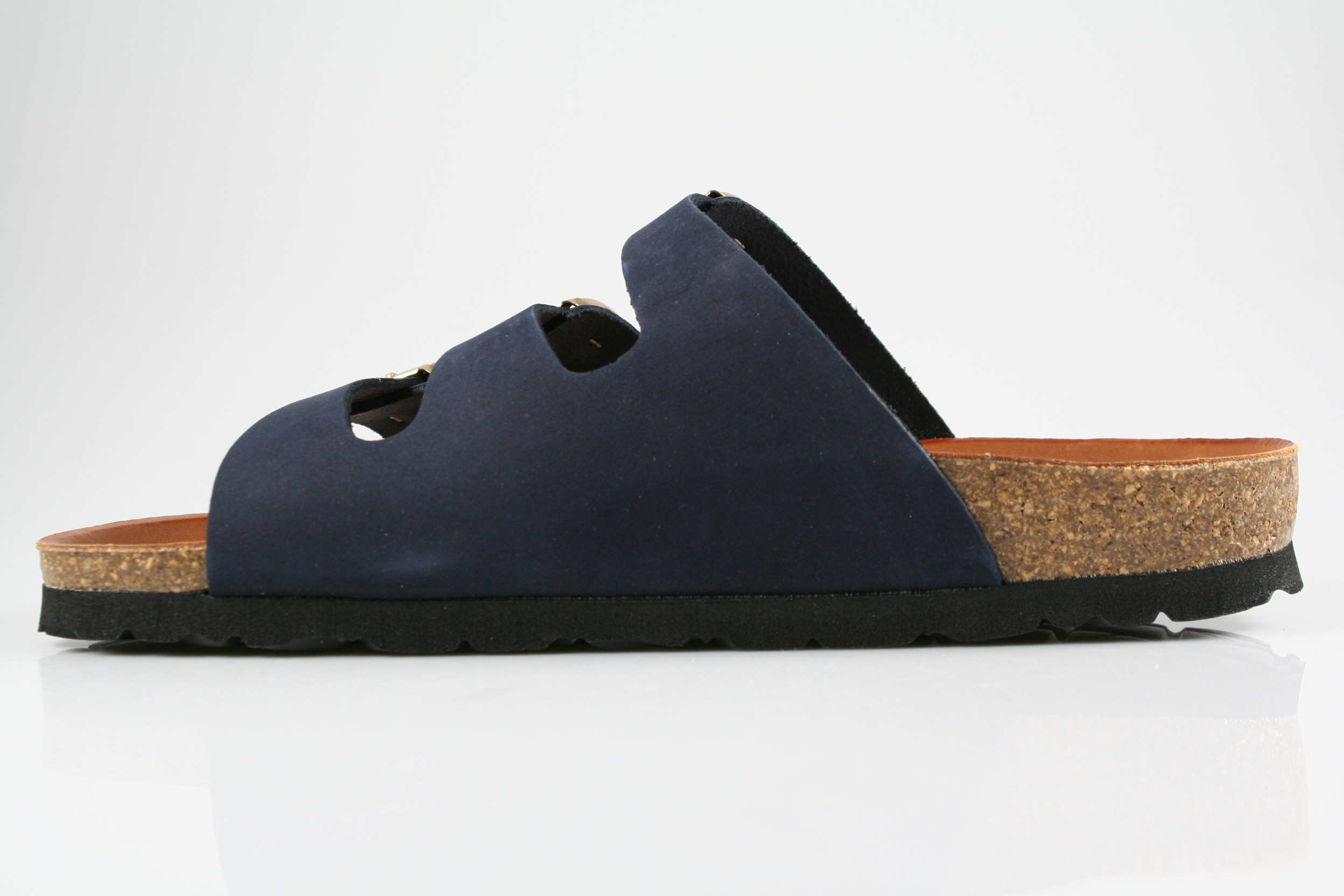 Typ: Pantolette; Farbe: "blau"; Ausstattung:; - Obermaterial: Nubukleder; - weich gepolstertes Kork-Leder-Fußbett; - Leichtzell-Laufsohle; - Riemchen mit Schnallen