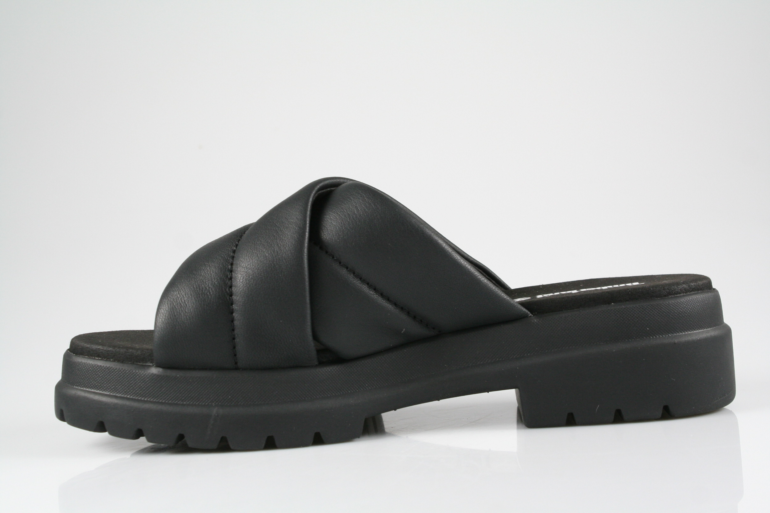 Typ: Pantolette; Farbe: schwarz; Ausstattung:; - Obermaterial: Leder; - atmungsaktives Futter; - gepolstertes Fußbett; - weiche Laufsohle;