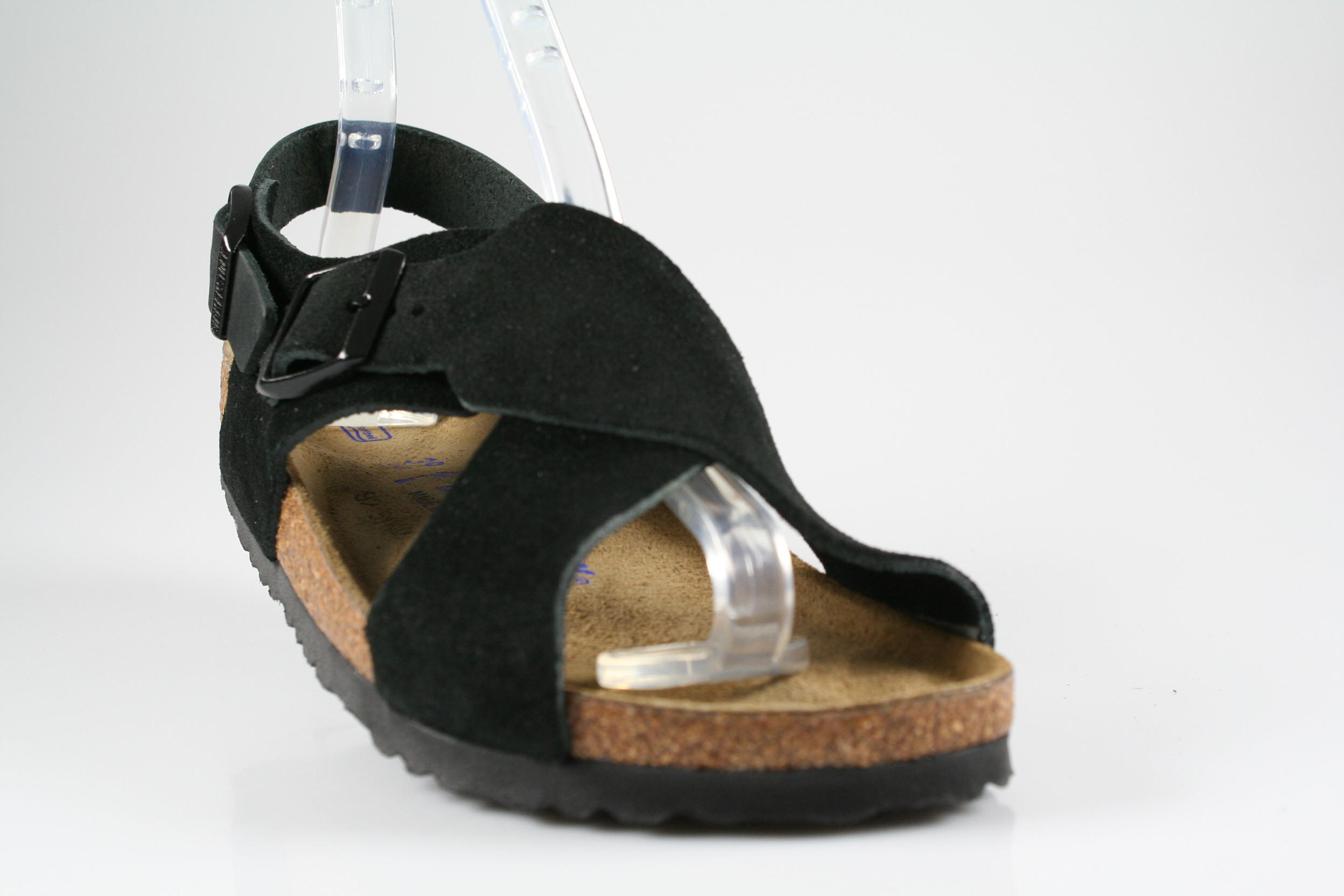 Typ: Sandale/Pantolette; Farbe "black"; Ausstattung:; - Obermaterial: Velourleder, Nubukleder; - Lederdecksohle; - leichtee Laufsohle; - gepolsterter Schaftrand; - Riemchen zur Weitenregulierung