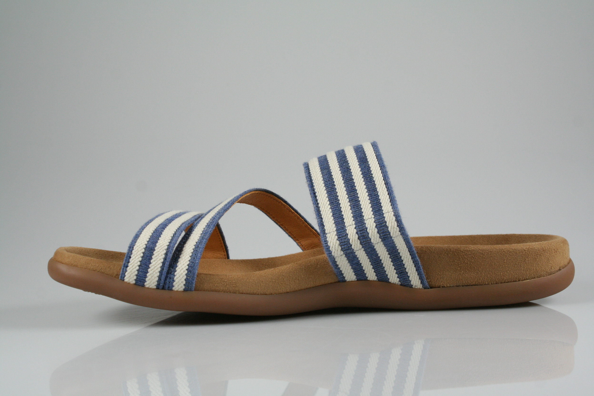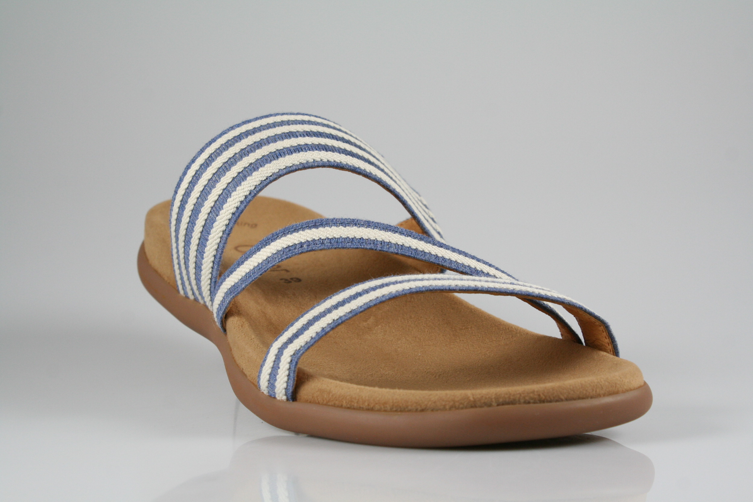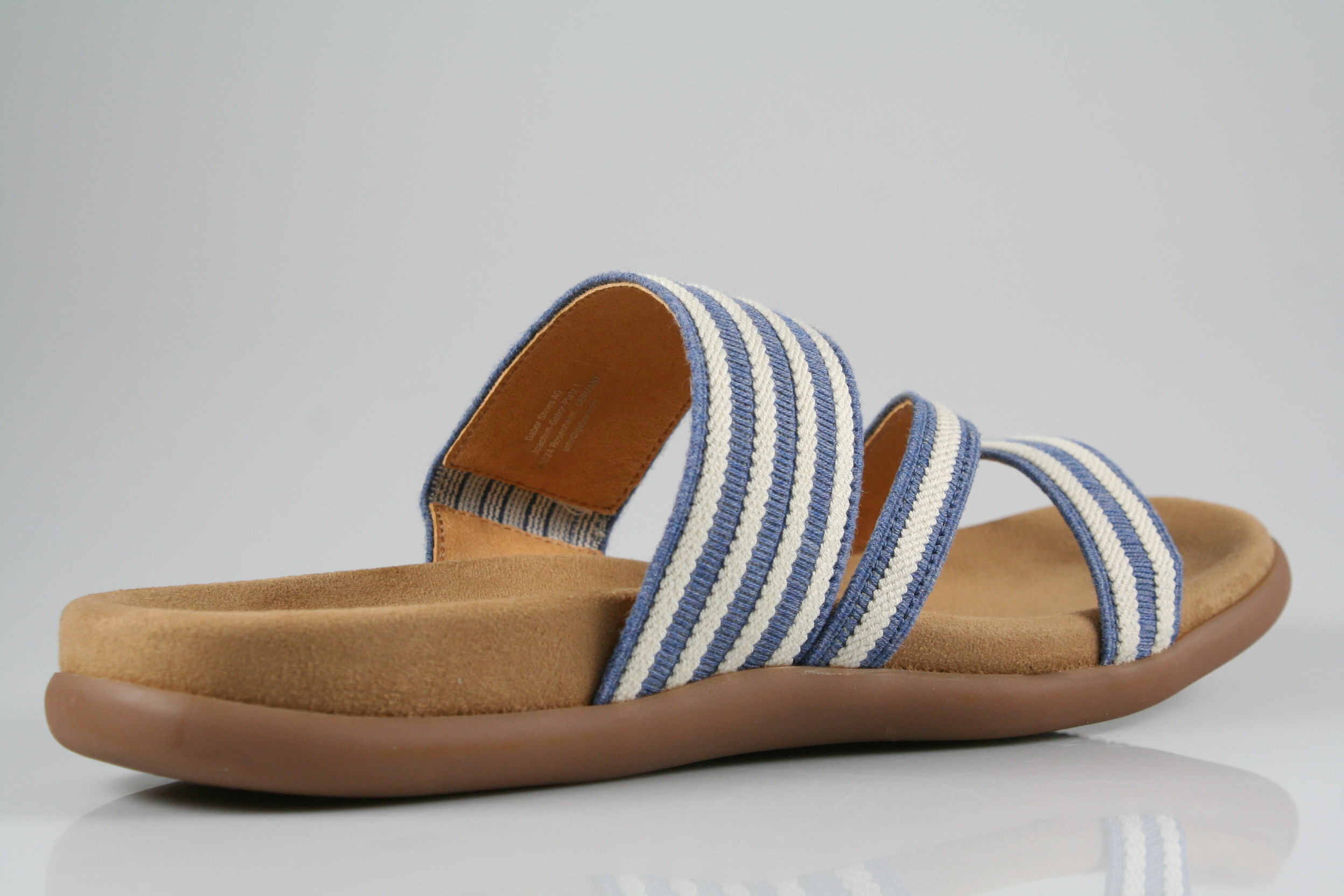 Typ: Pantolette; Farbe "jeans/panna"; Ausstattung:; - dehnbares Obermaterial; - weiches Fußbett; - leichte Laufsohle;
