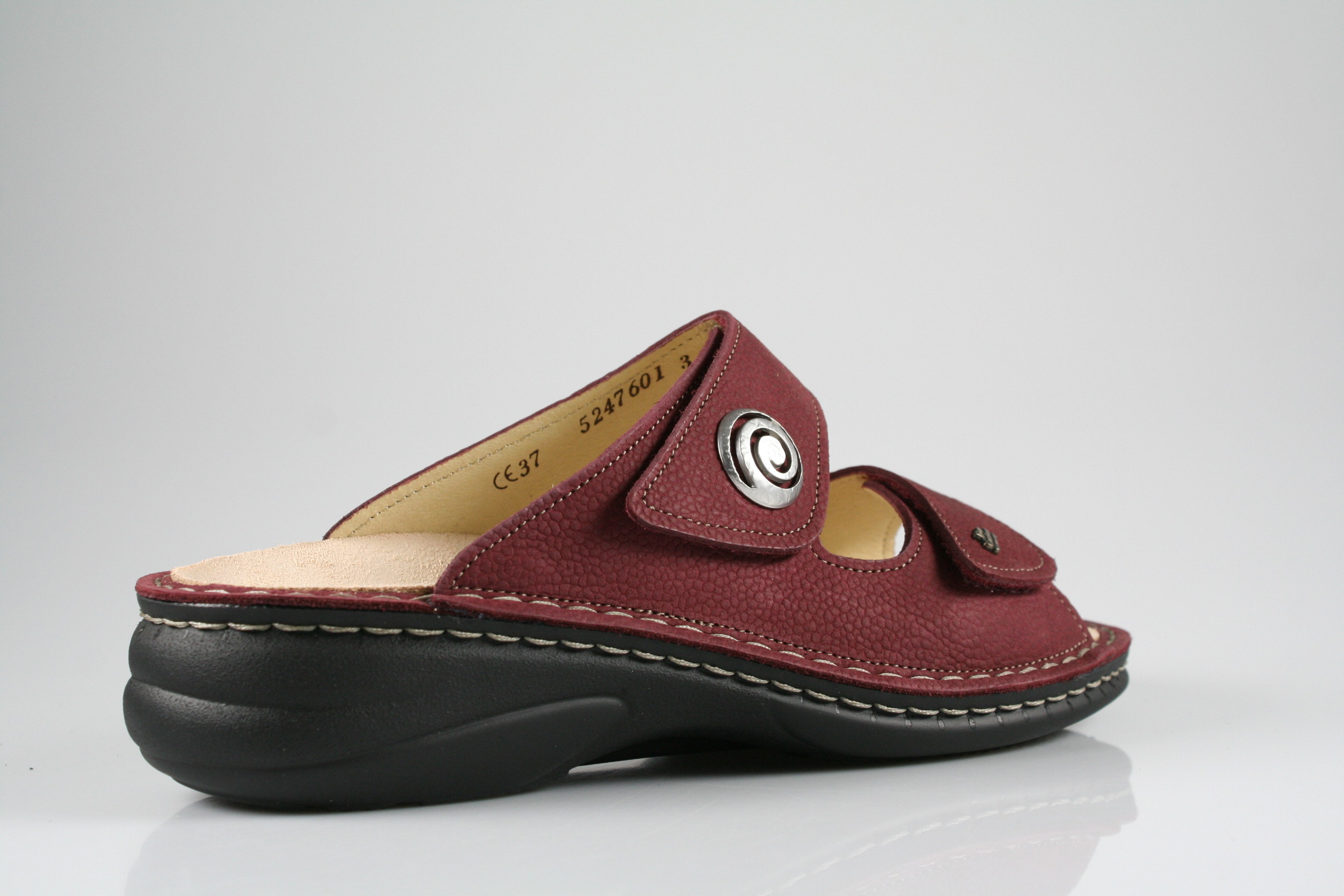 Typ: Pantolette; Farbe "wine"; Ausstattung:; - Obermaterial: Leder; - herausnehmbares Fußbett ; - flexible Laufsohle; - Klettverschluss zur Weitenregulierung;