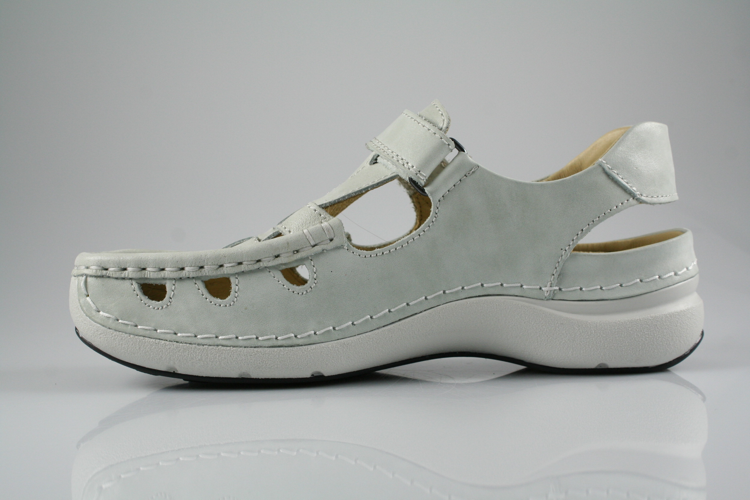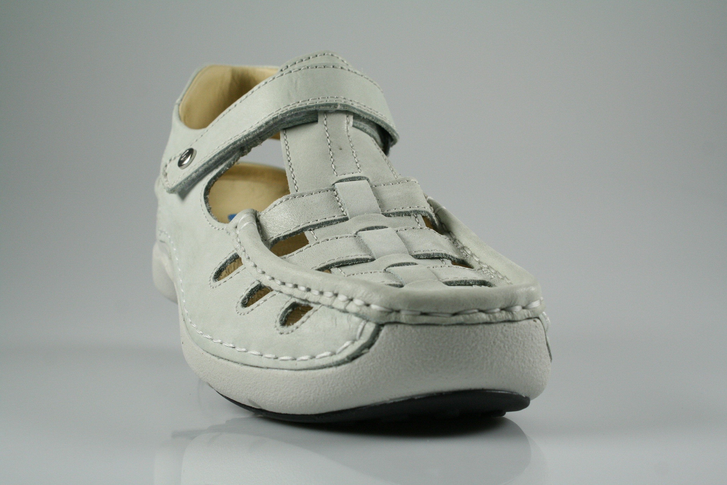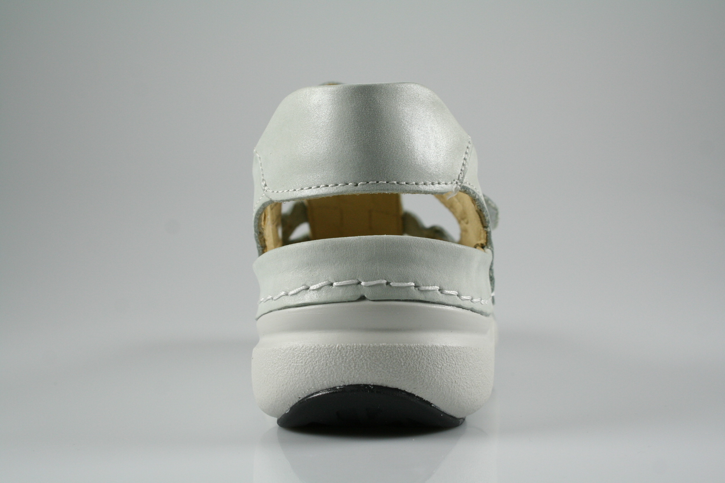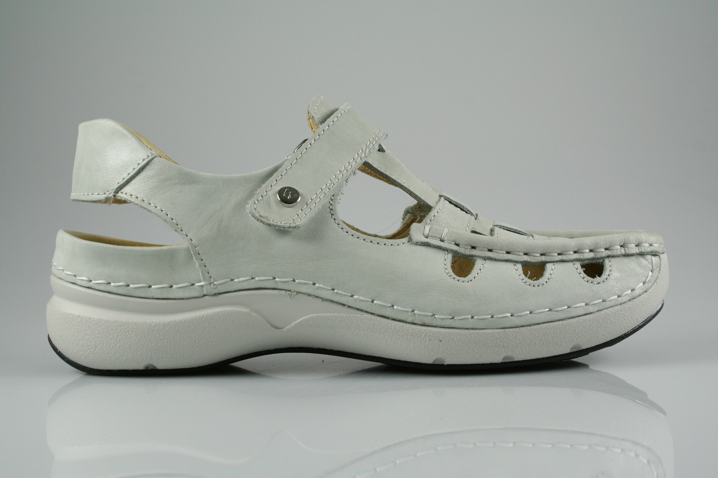 Typ: Sandale; Farbe "offwhite"; Ausstattung:; - Obermaterial: Leder; - herausnehmbares Fußbett; - leichte Laufsohle; - gepolsterter Schaftrand; - Klettverschluss zur Weitenregulierung