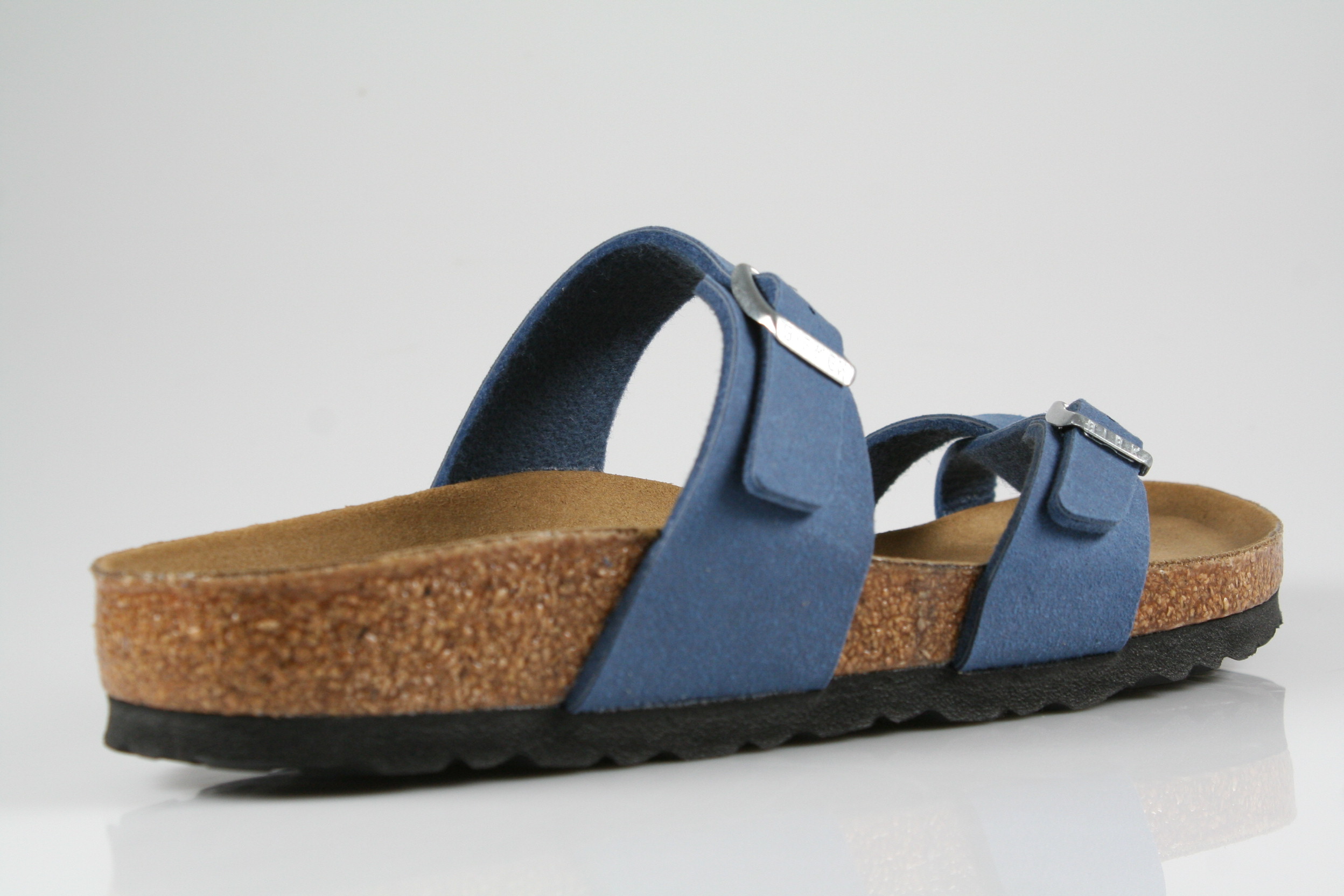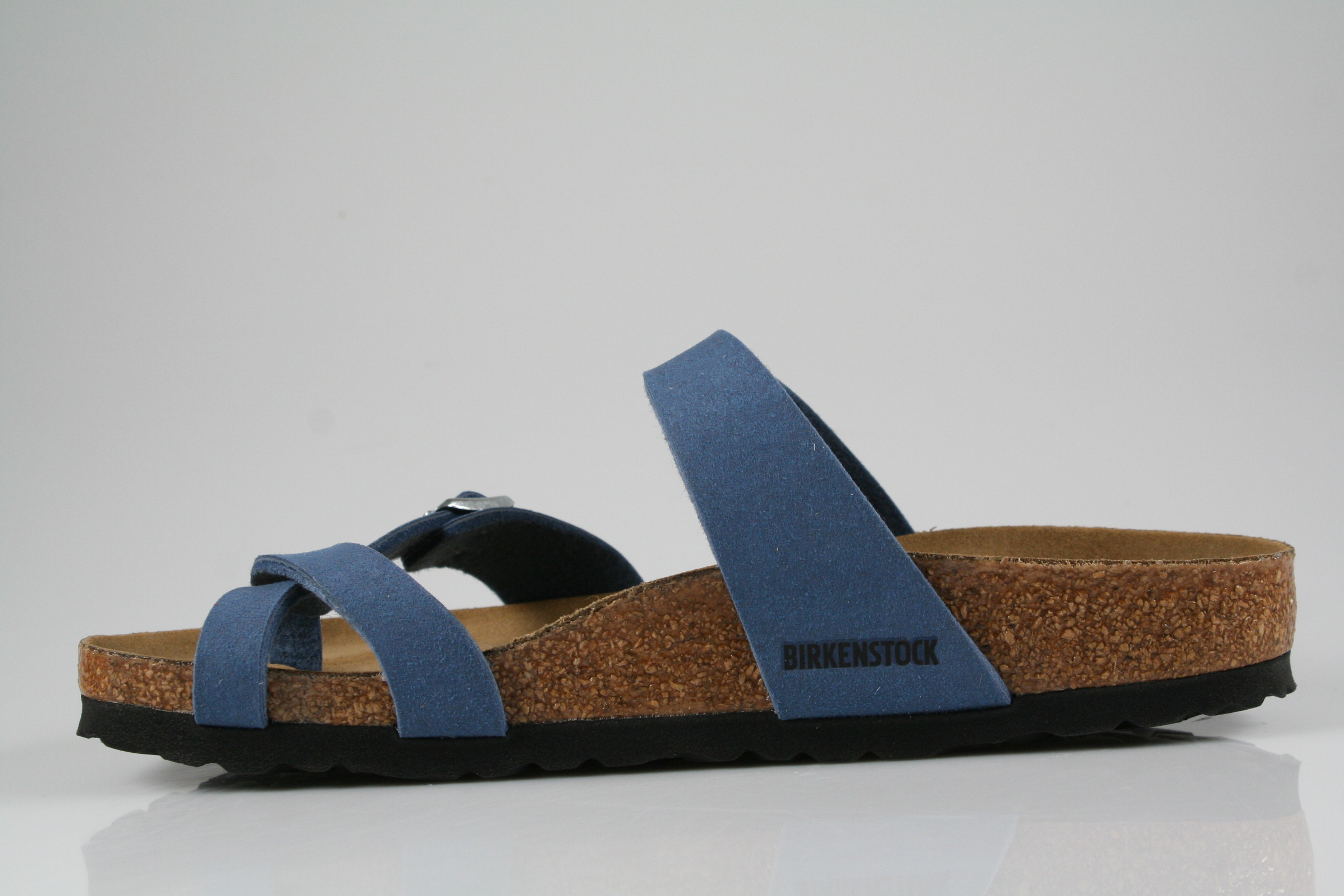 Typ: Pantolette; Farbe: "elemental blue"; Ausstattung:; - Obermaterial Synthetic Soft; - Birki Vegan; - Sohle: EVA; - Riemchen mit Schnalle; - Modell "Mayari"; - schmale Weite