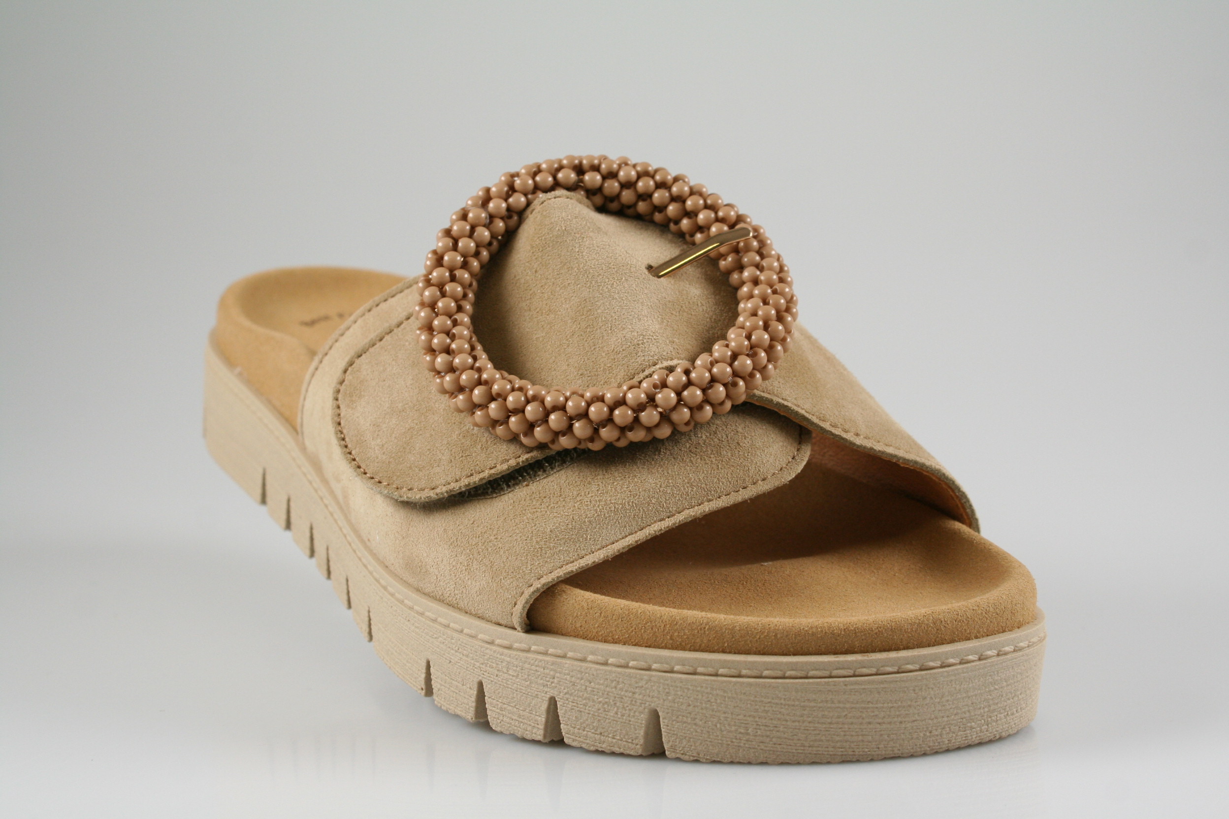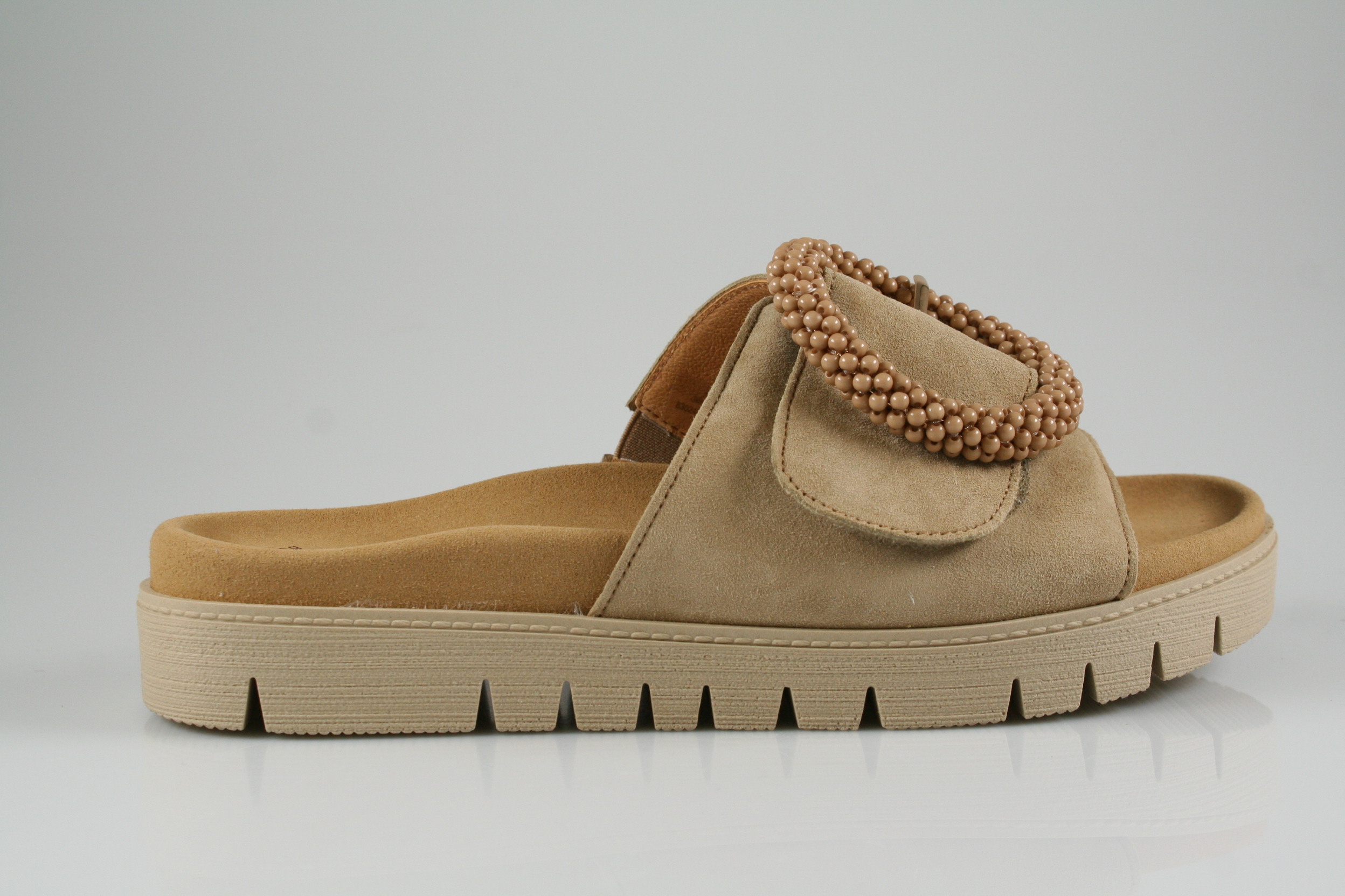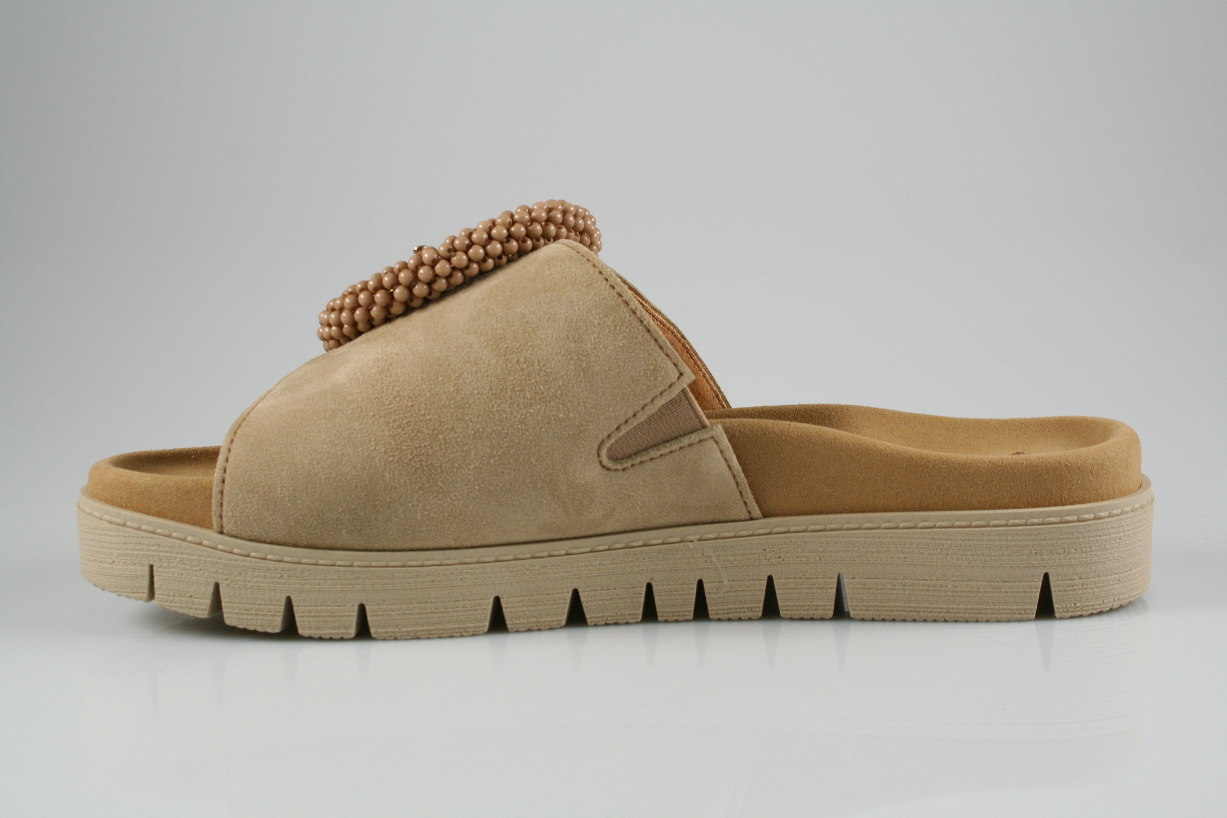 Typ: Pantolette; Farbe "caramel"; Ausstattung:; - Obermaterial: Samtchevreau; - weiches Fußbett; - flexible Laufsohle;
