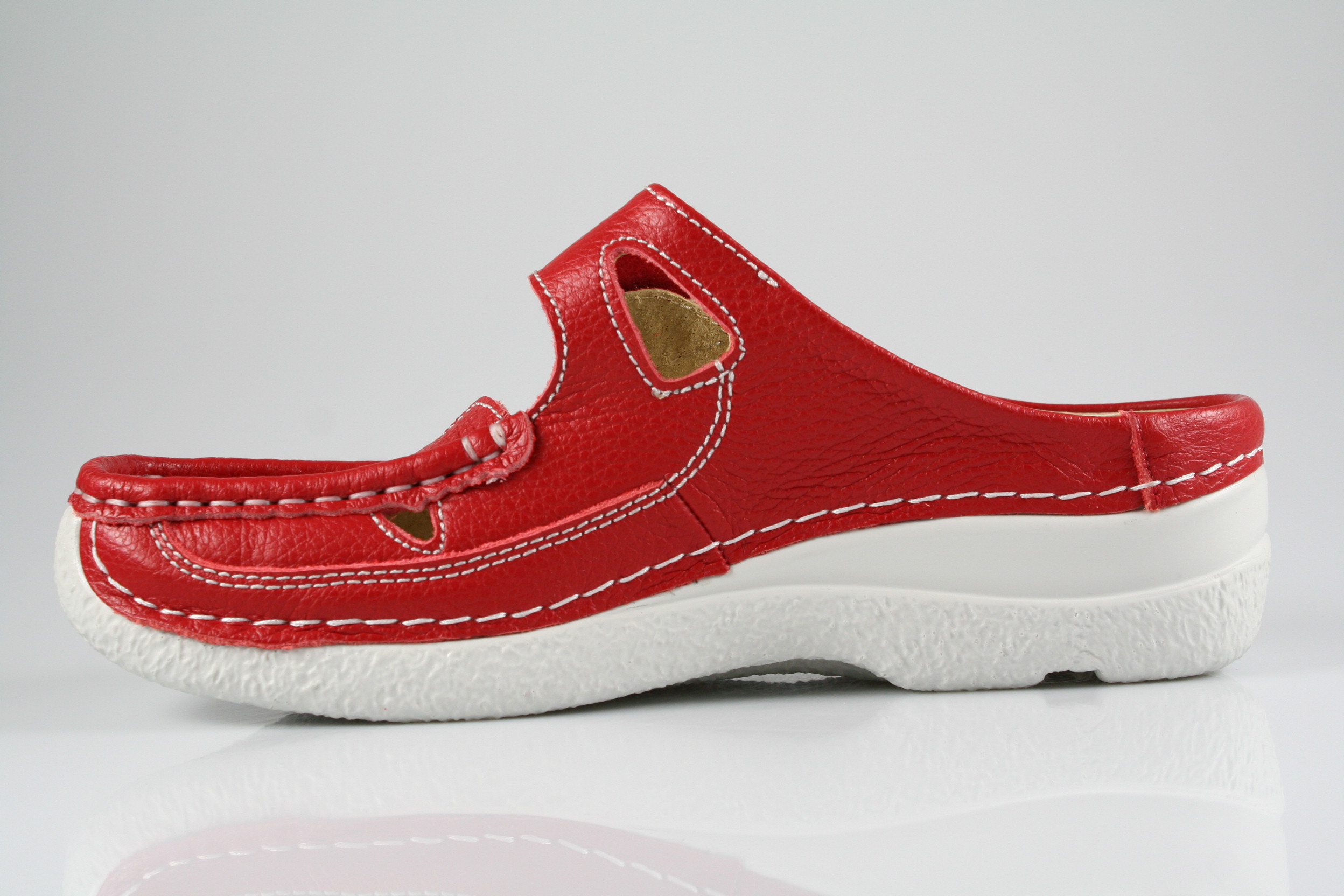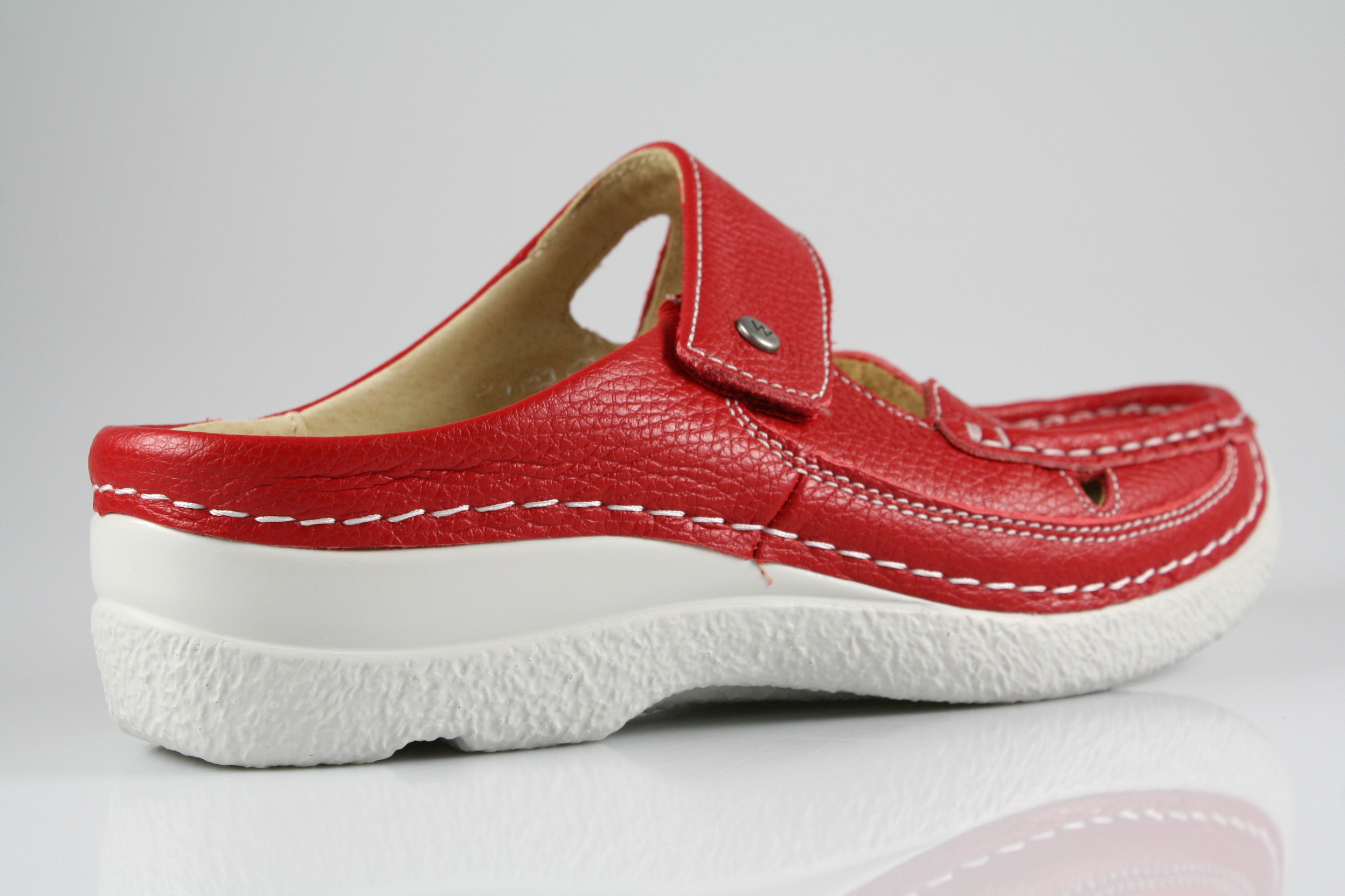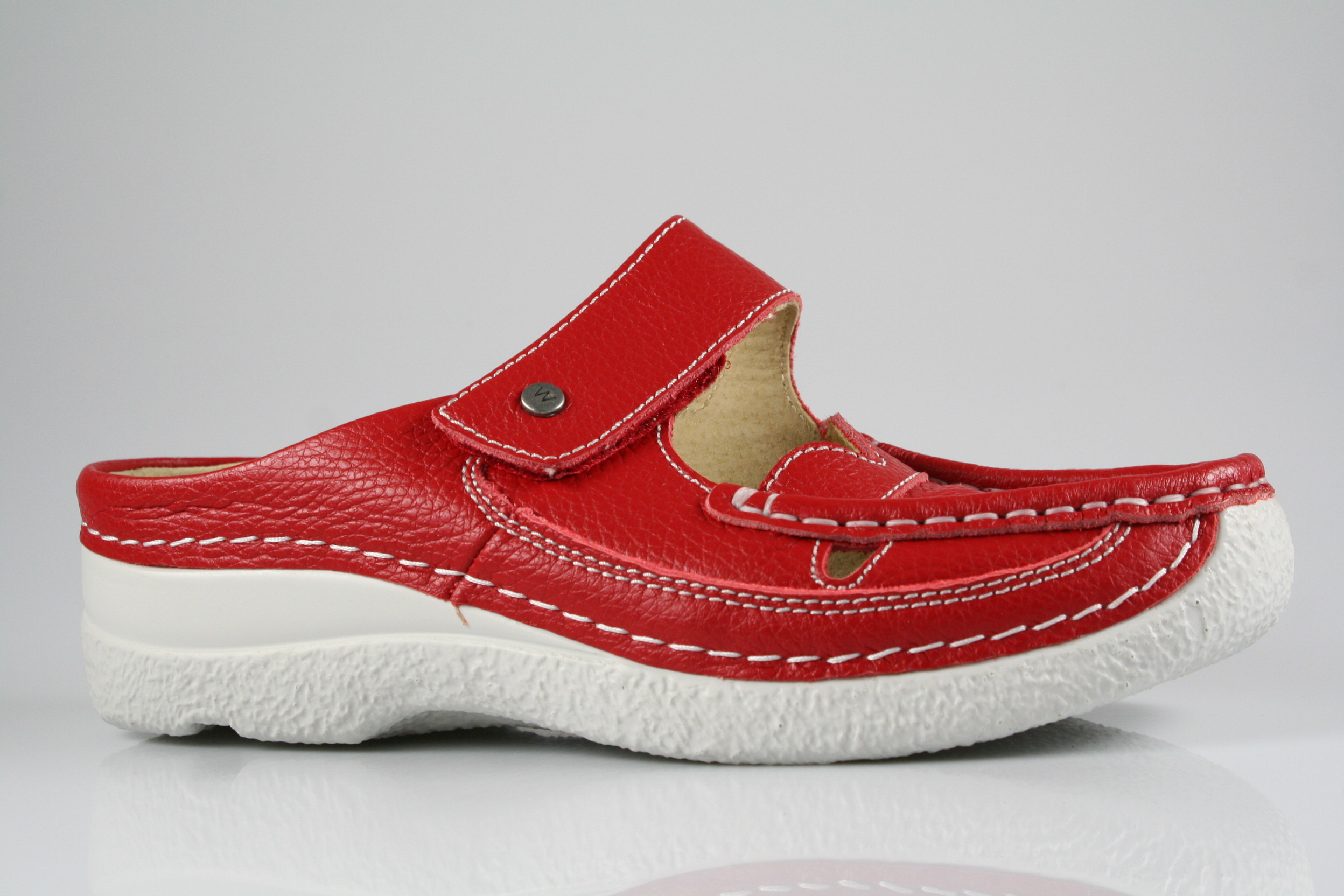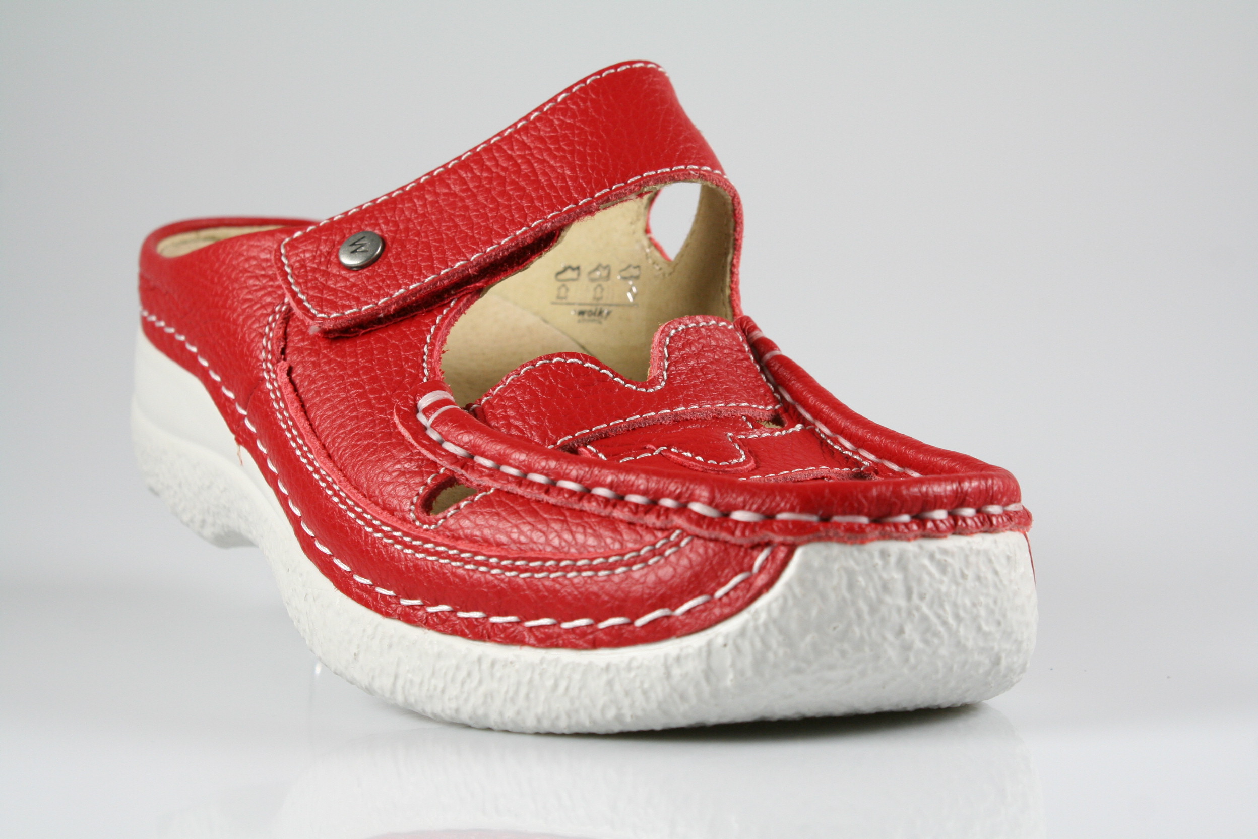 Typ: Pantolette; Farbe: "red summer"; Ausstattung:; - Obermaterial: Leder; - Lederfutter; - weiches, lederbezogenesWechselfußbett; - flexible Laufsohle; - Riemchen mit Klettverschluss