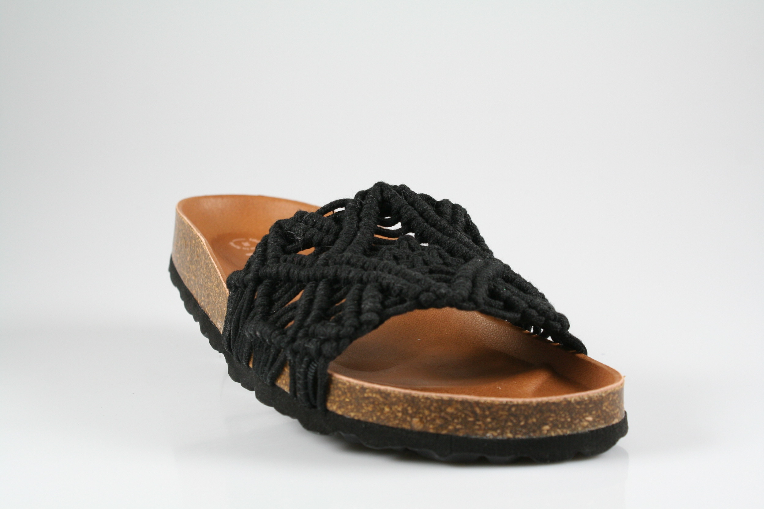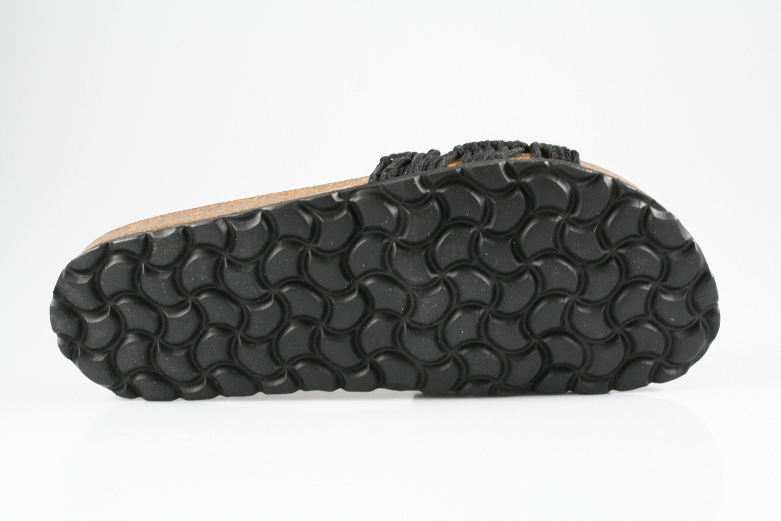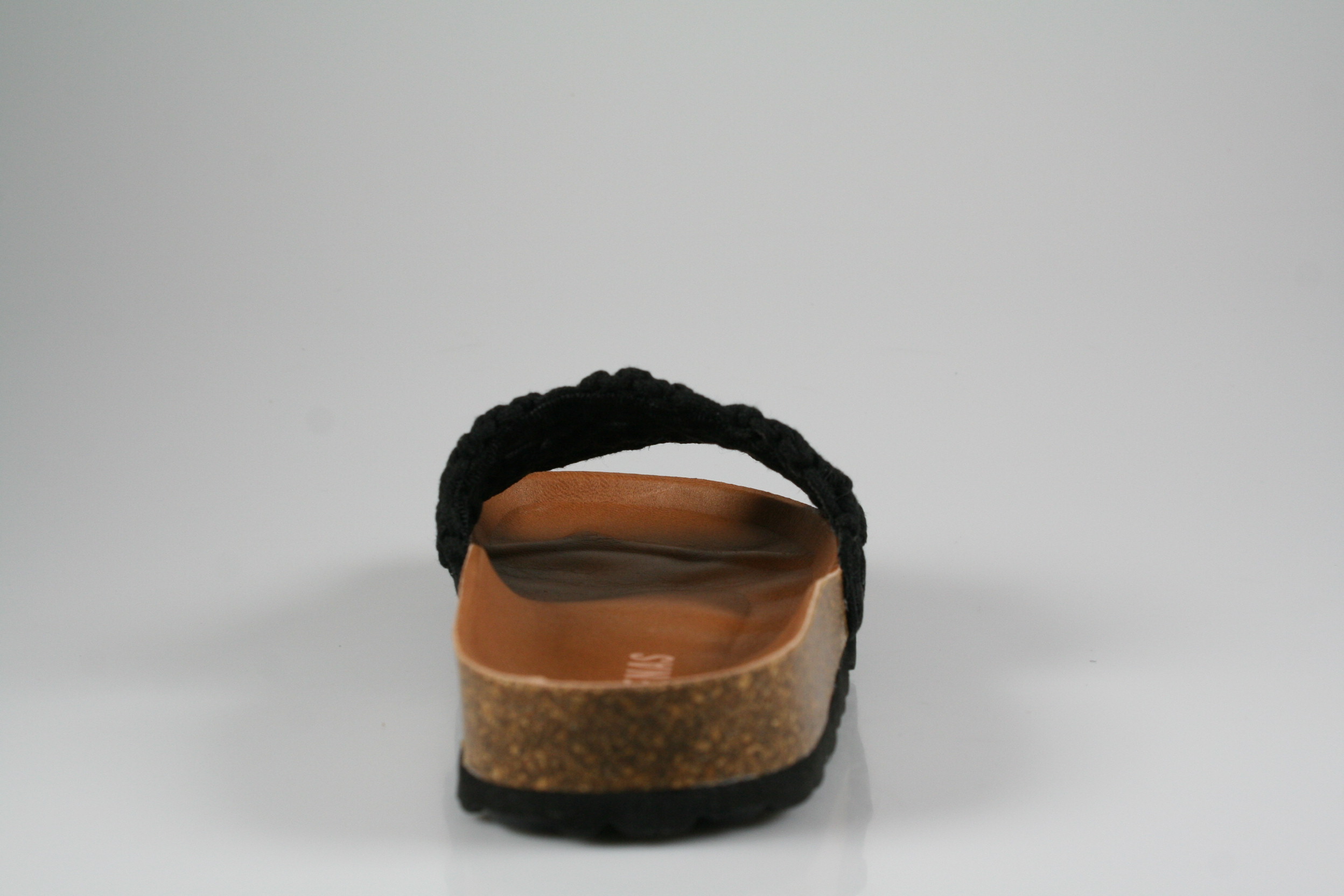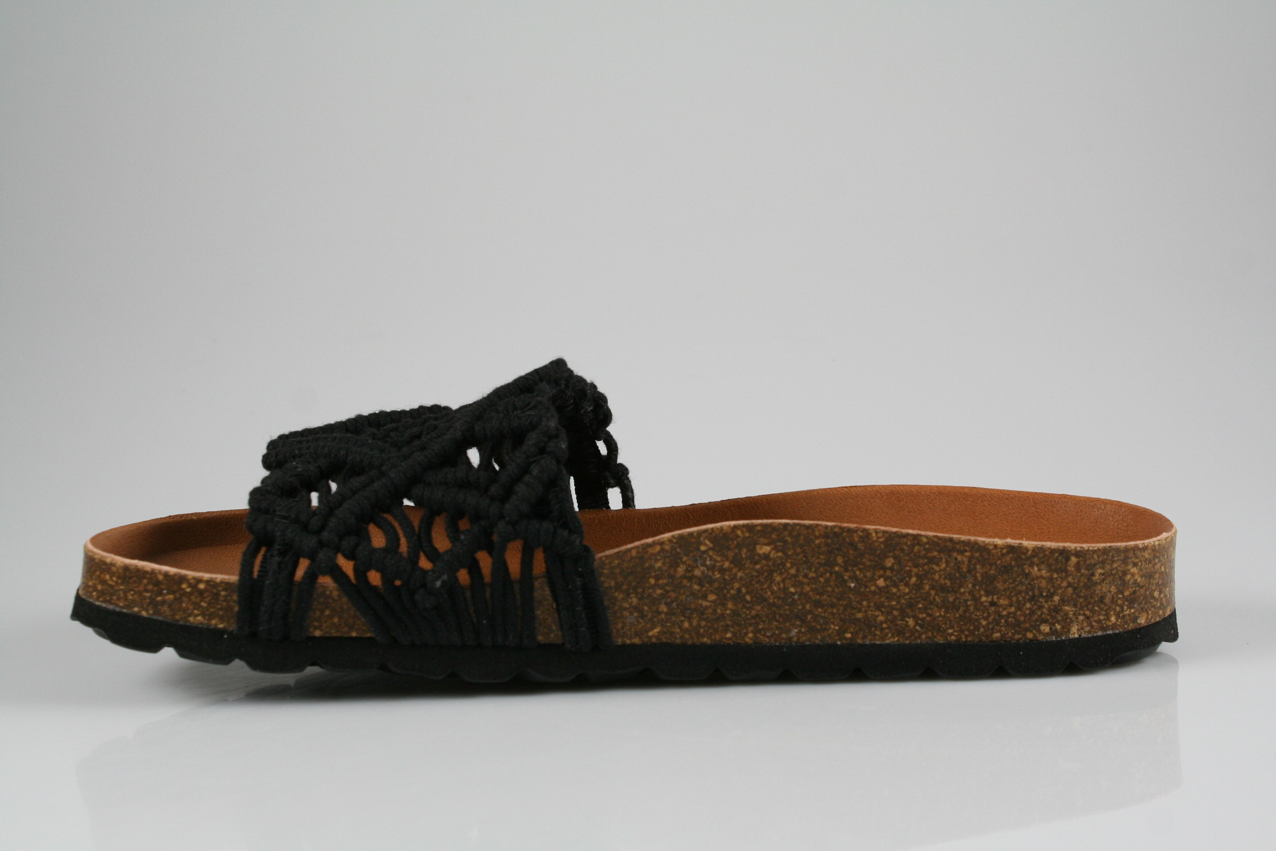 Typ: Pantolette; Farbe: "negro"; Ausstattung:; - Obermaterial: Flecht; - Kork-/Lederfußbett; - leichte Laufsohle;