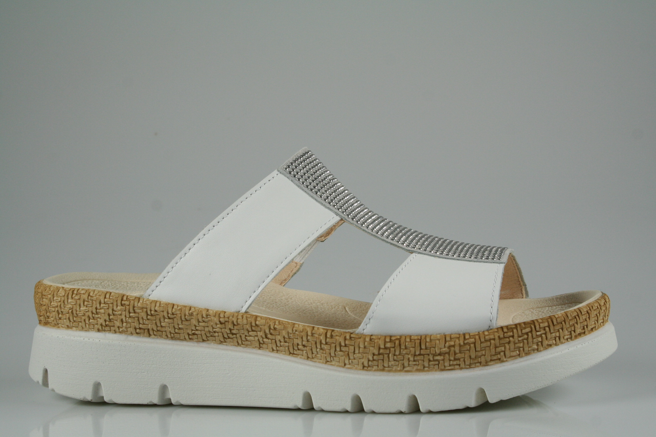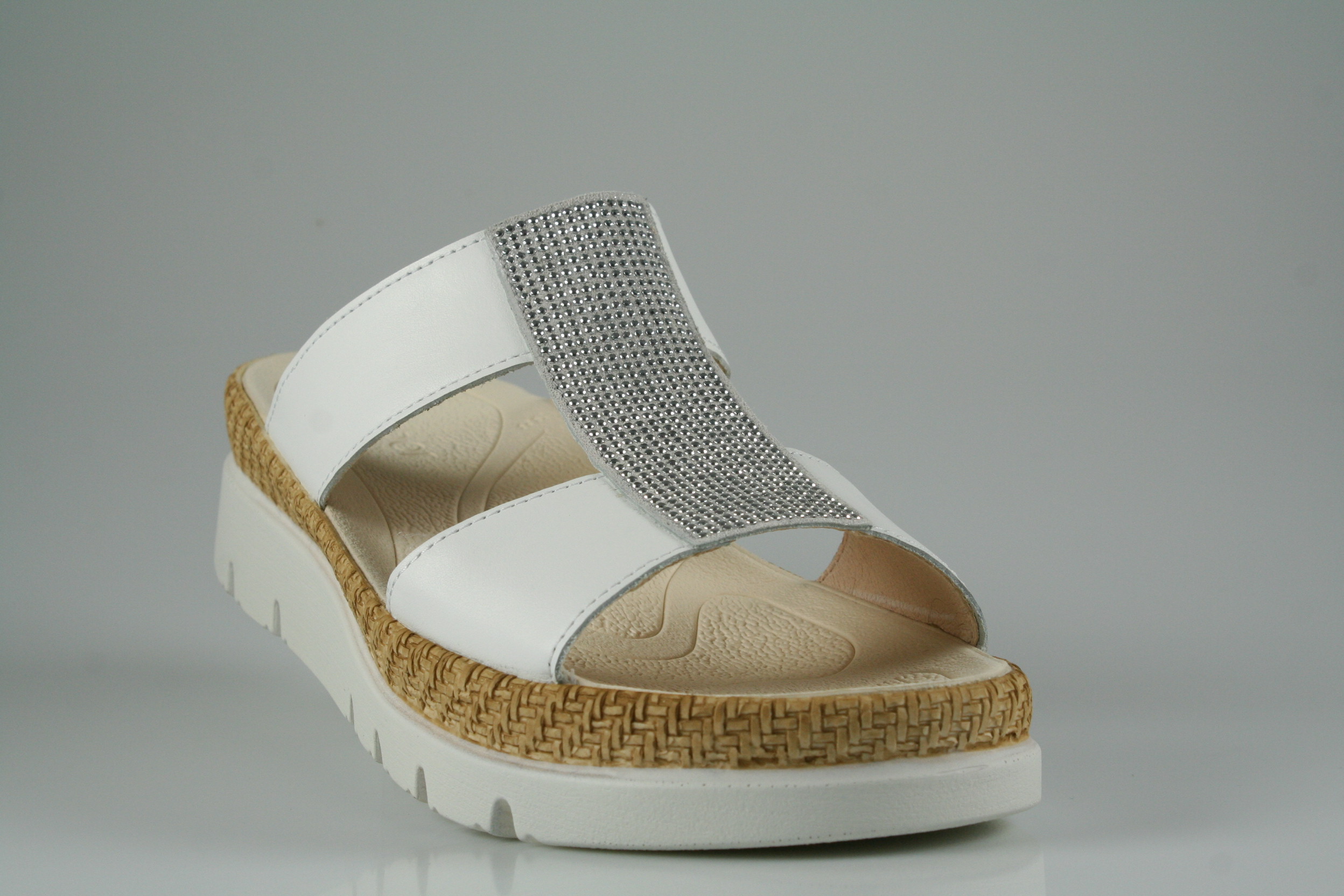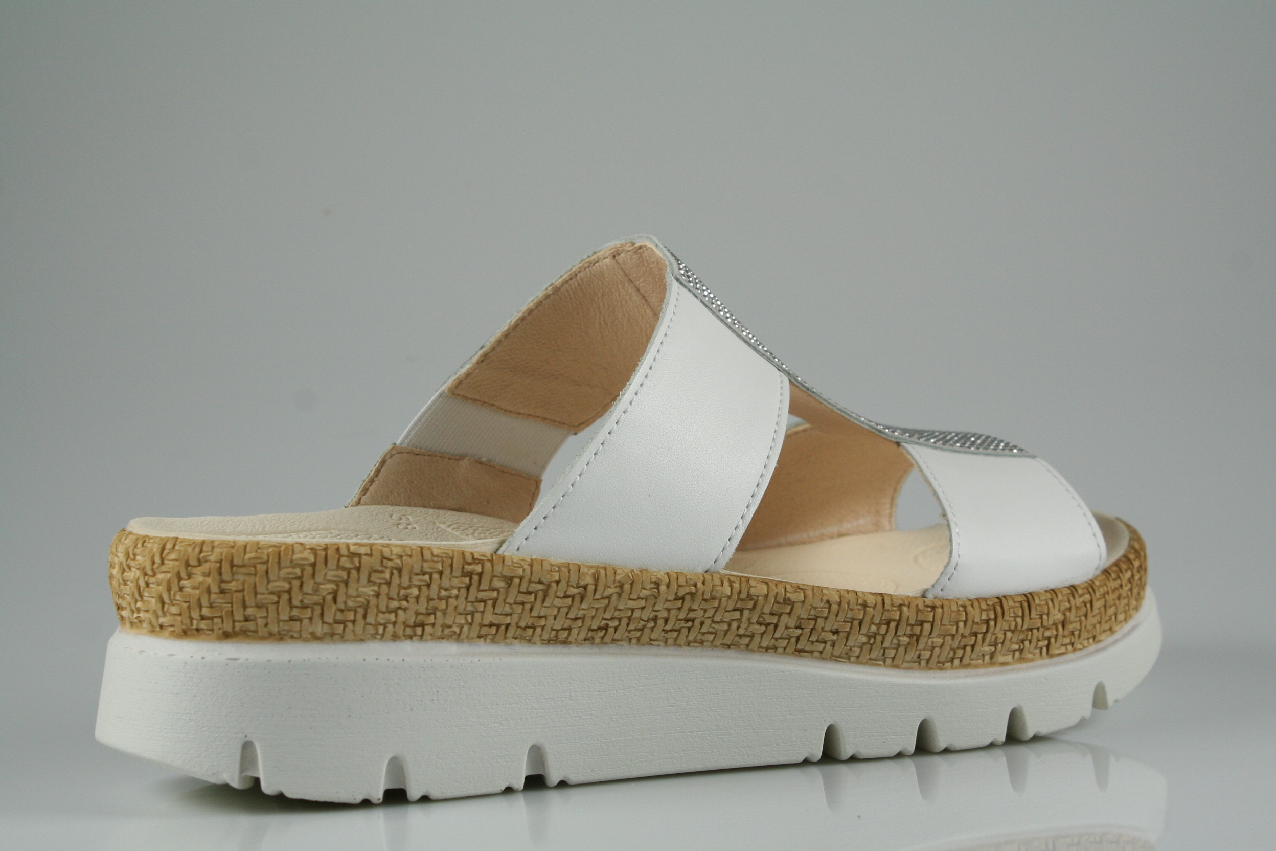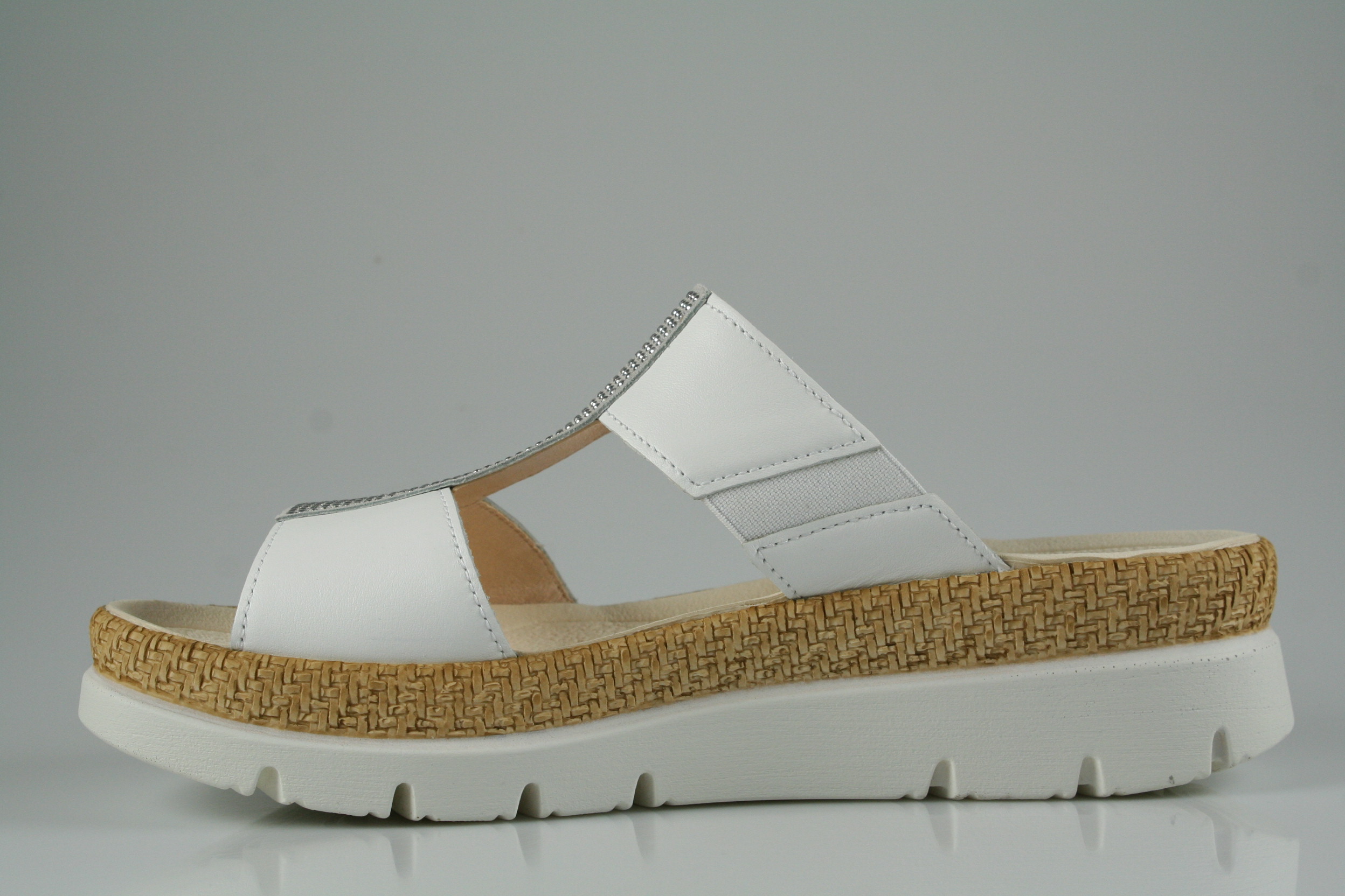 Typ: Pantolette; Farbe "weiß/ice"; Ausstattung:; - Obermaterial: Leder; - weiches Fußbett; - leichte Laufsohle; - dehnbare Riemchen