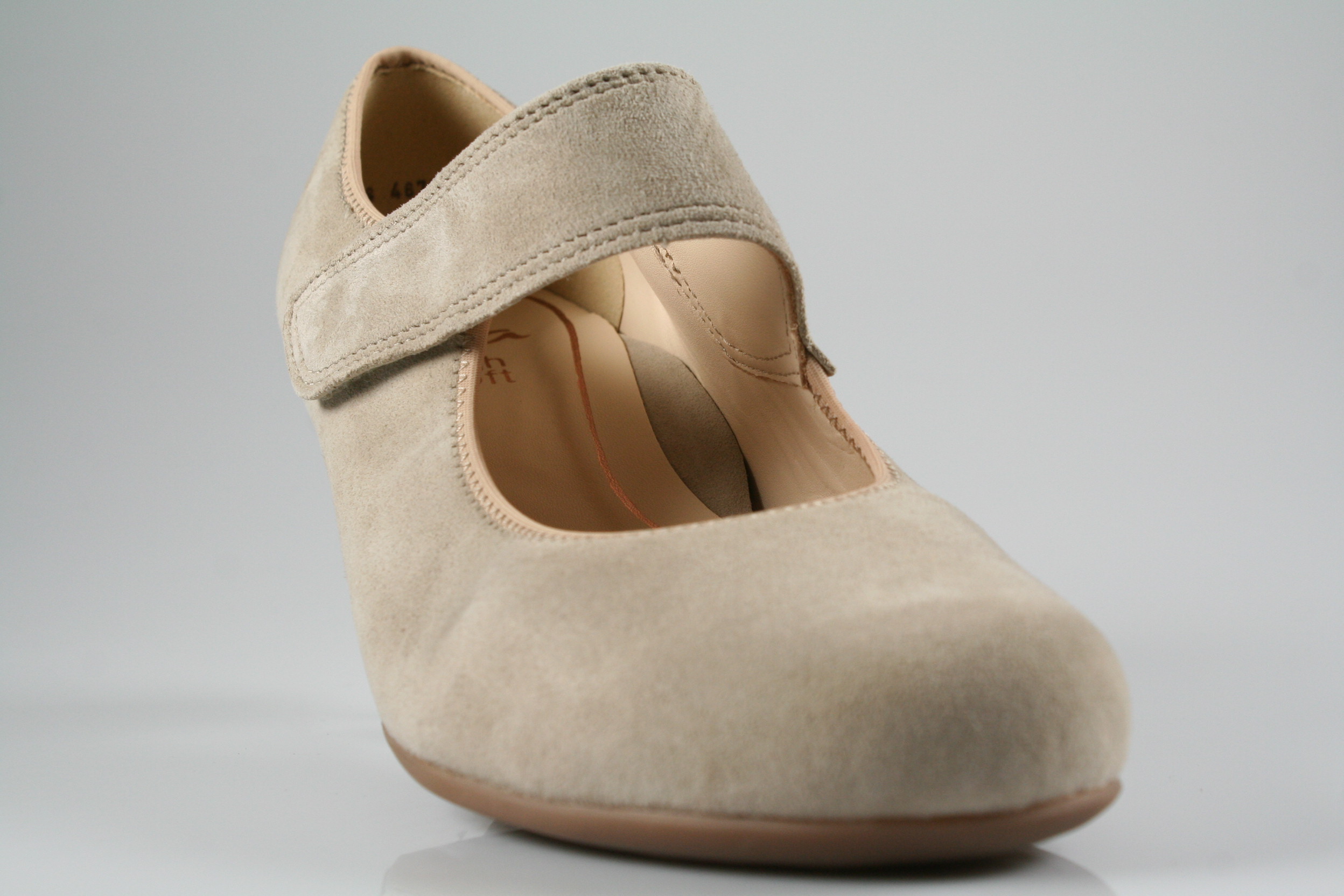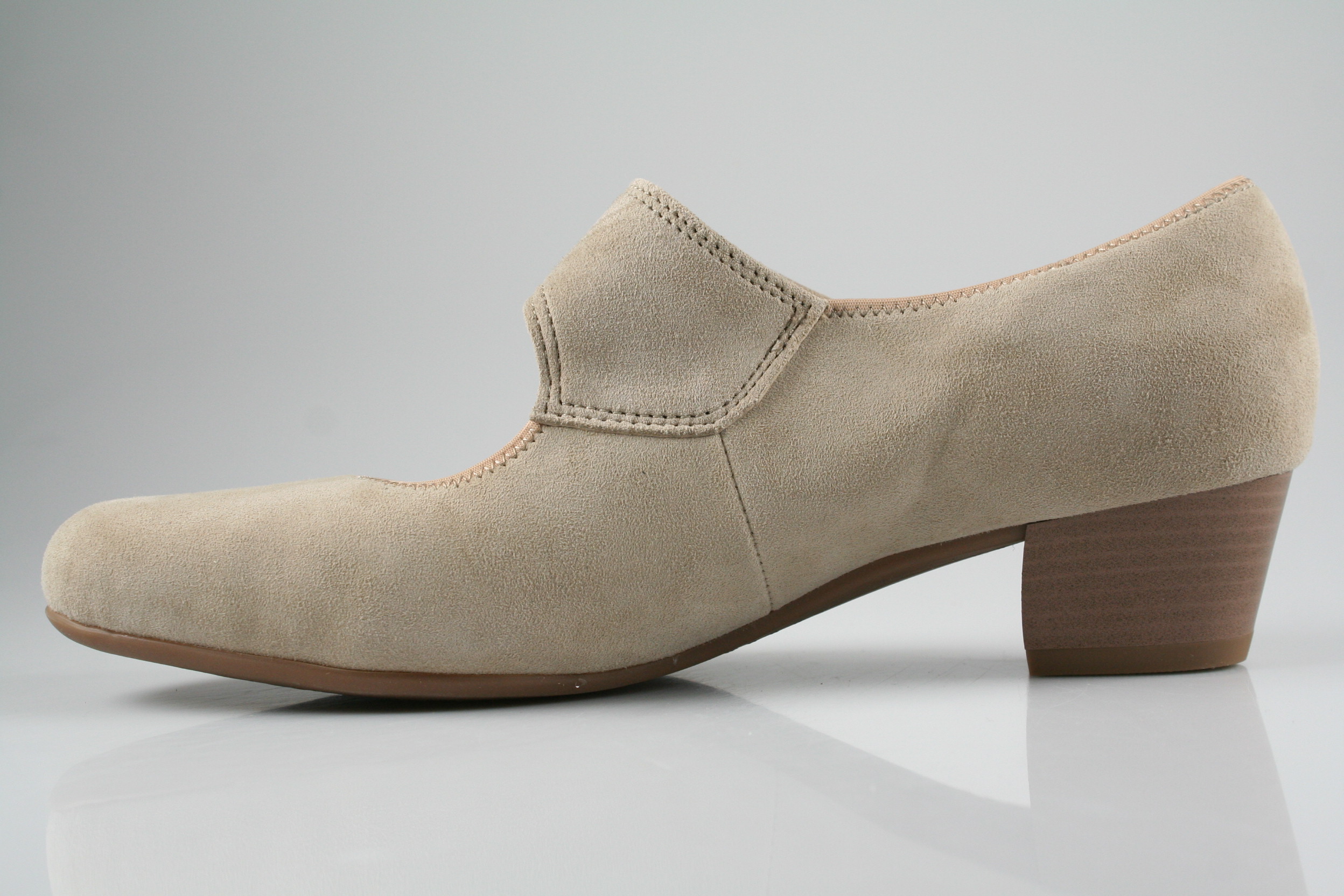 Typ: Pumps; Farbe: "sand"; Ausstattung:; - Obermaterial: Samtchevrro; - atmungsaktives Futter; - flexible Gummisohle; - Absatz 35mm; - Riemchen mit Klettverschluss