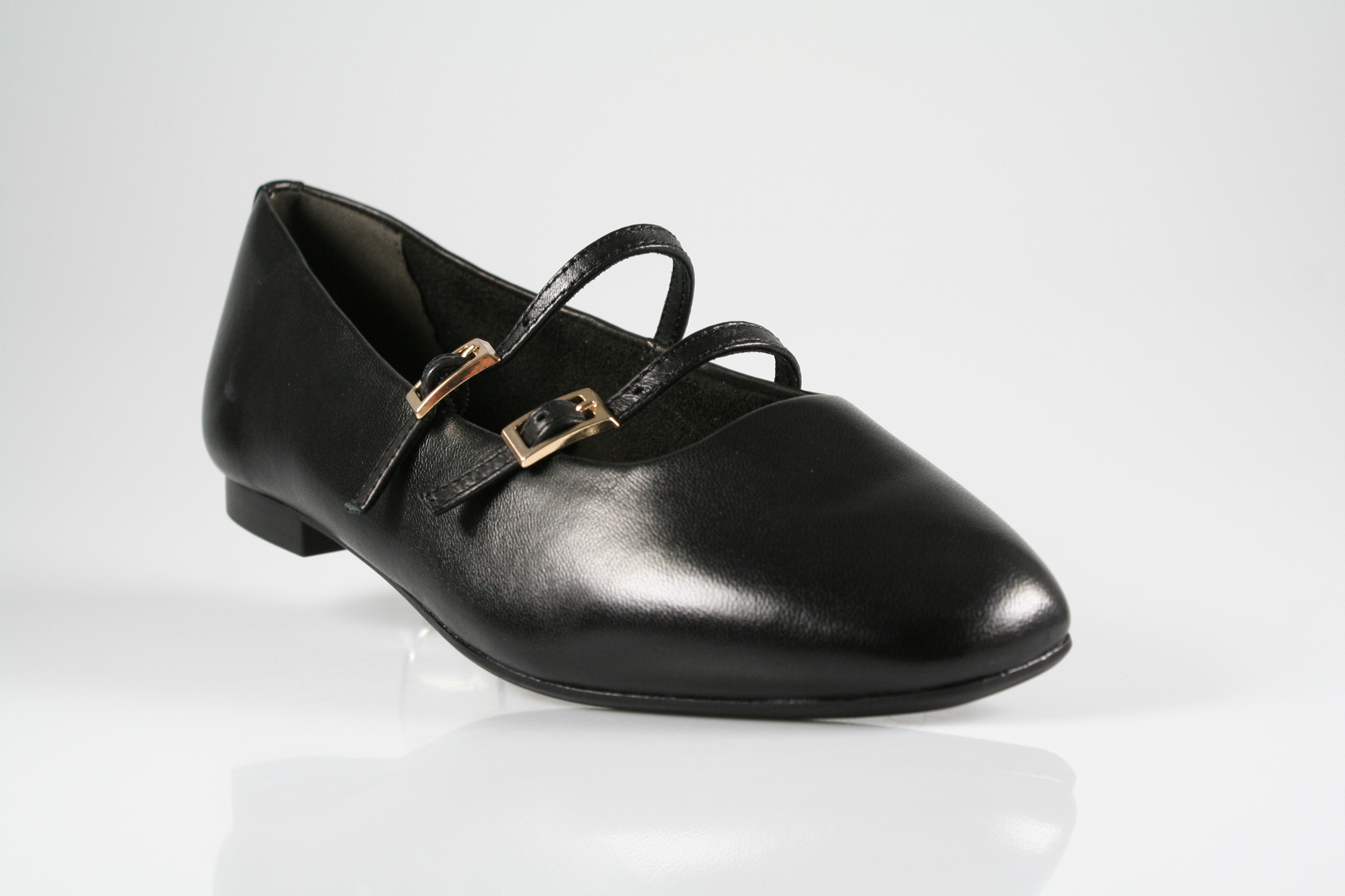 Typ: Ballerina; Farbe: "black"; Ausstattung:; - Obermaterial: Glattleder; - atmungsaktives Futter; - weich gepolsterte "Touch-It"- Decksohle; - flexible Gummisohle; - Riemchen mit elastischen Einsätzen;