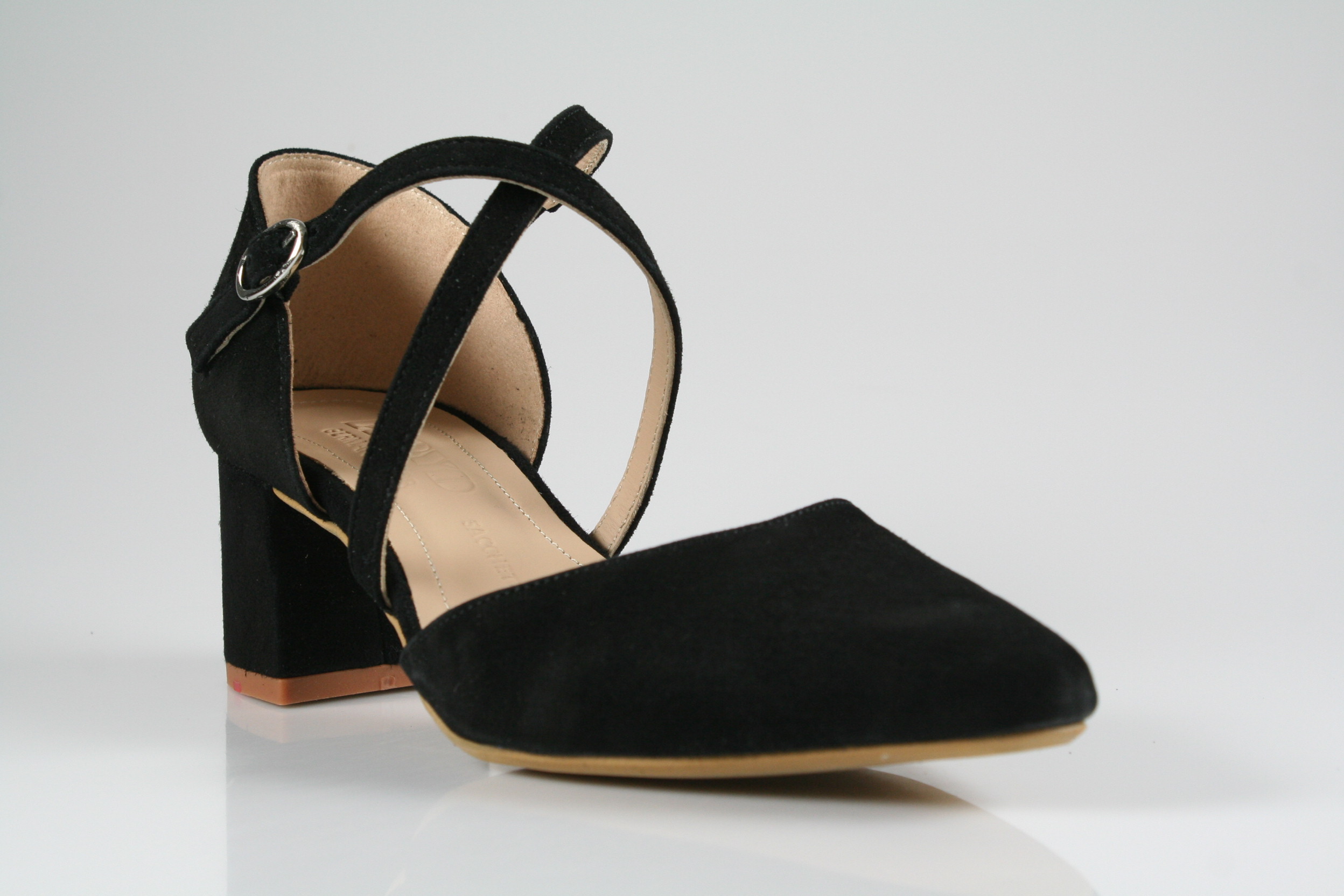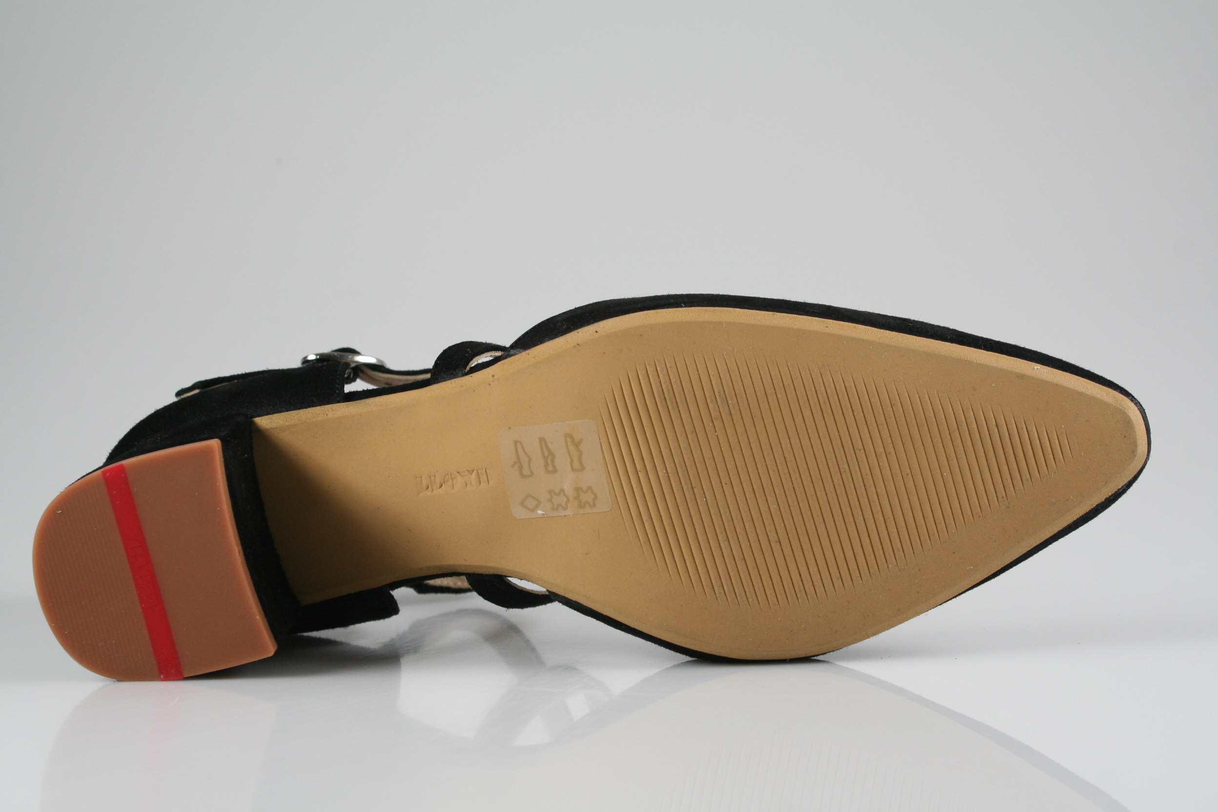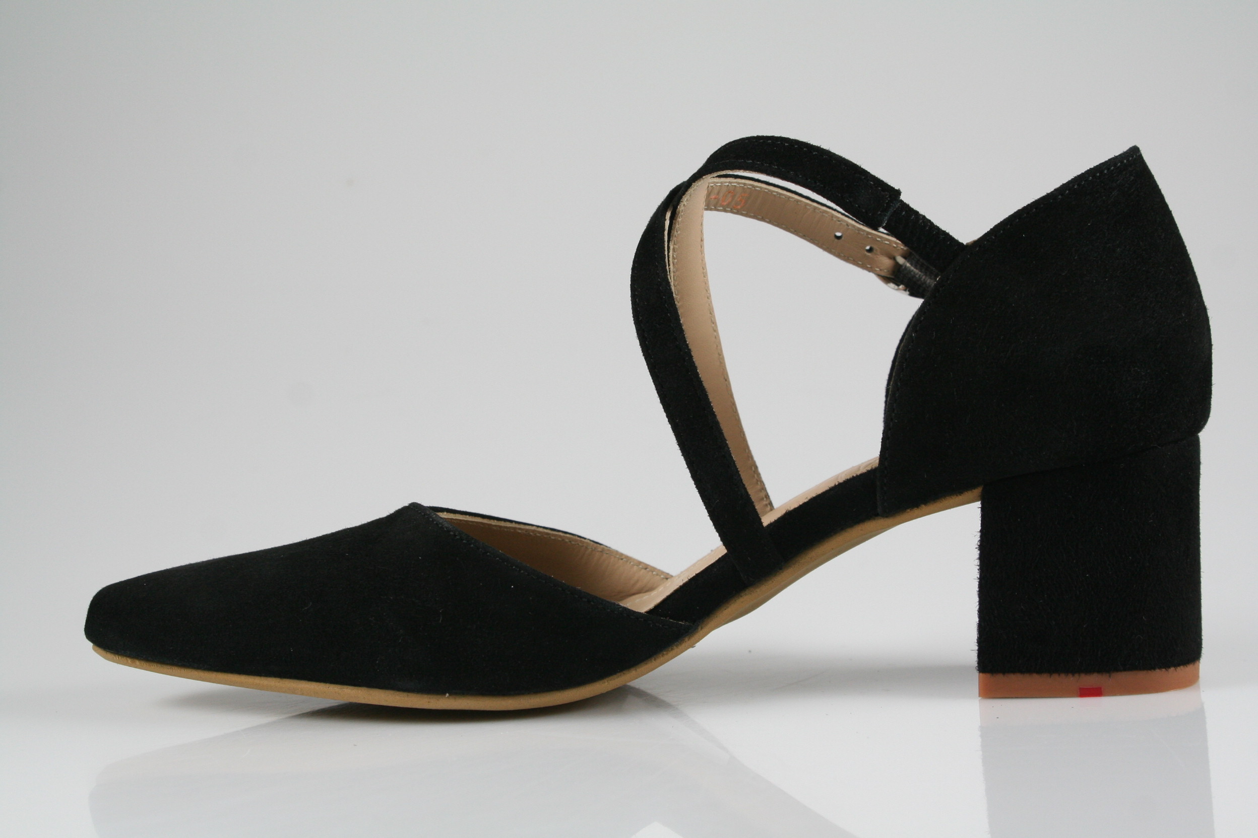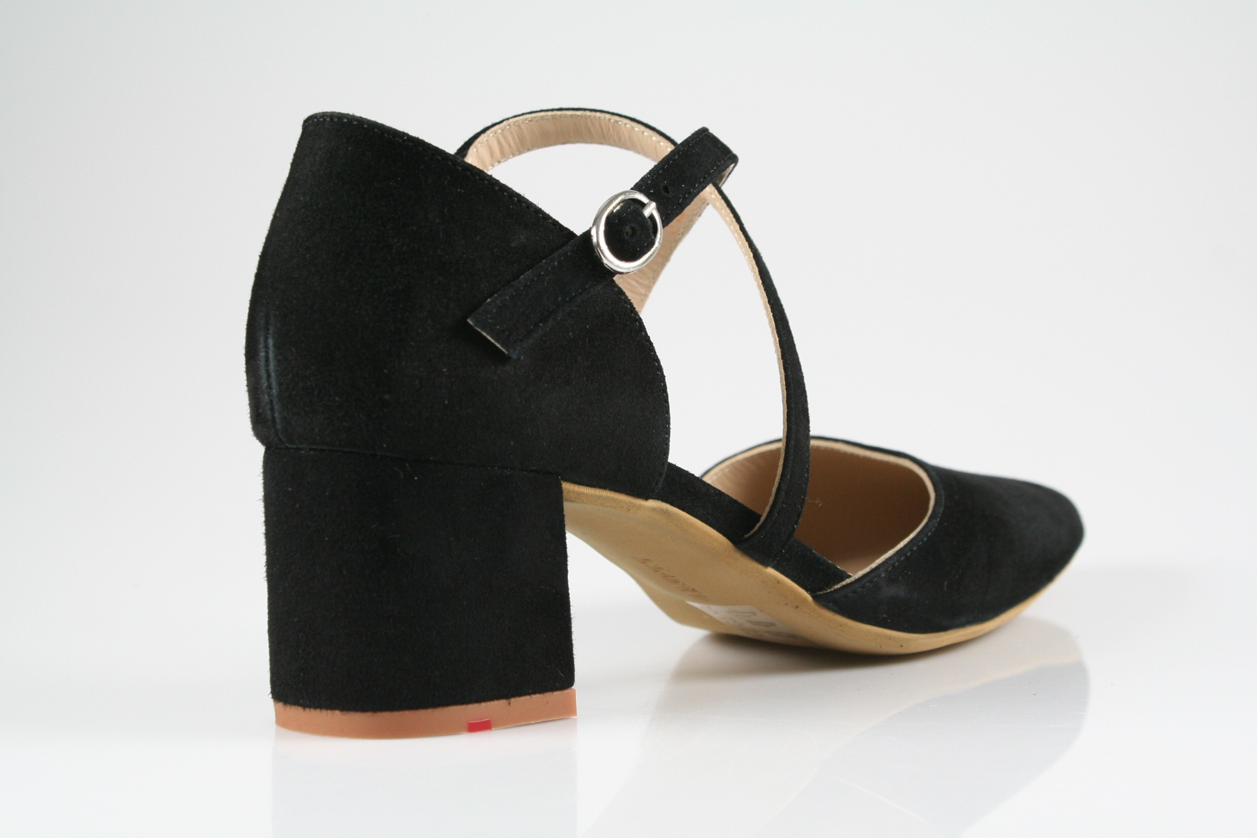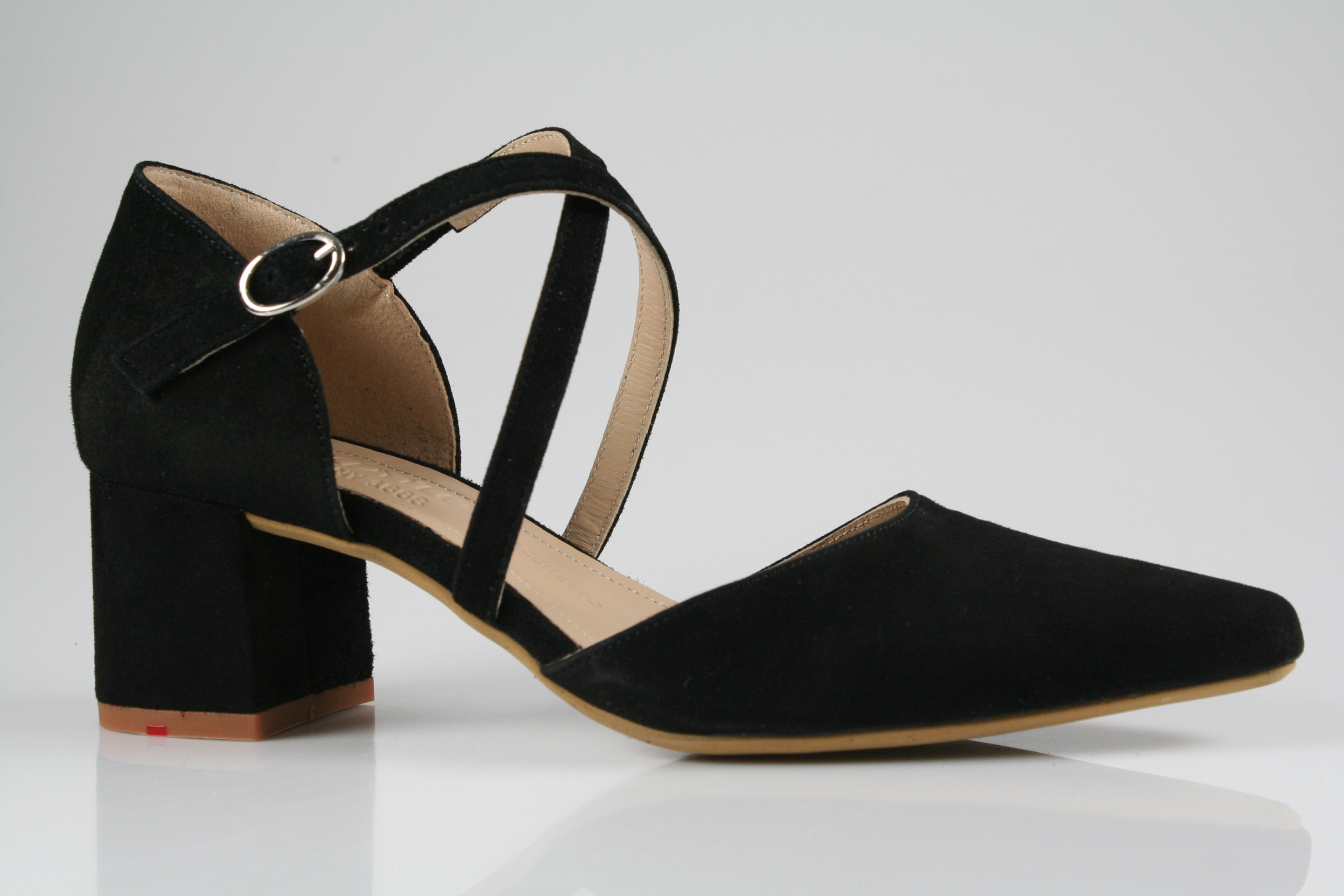 Typ: Pumps; Farbe "black"; Ausstattung:; - Obermaterial: Velourleder; - weiche Decksohle; - leichte Laufsohle; - 50mm Blockabsatz; - Riemchen zur Weitenregulierung;