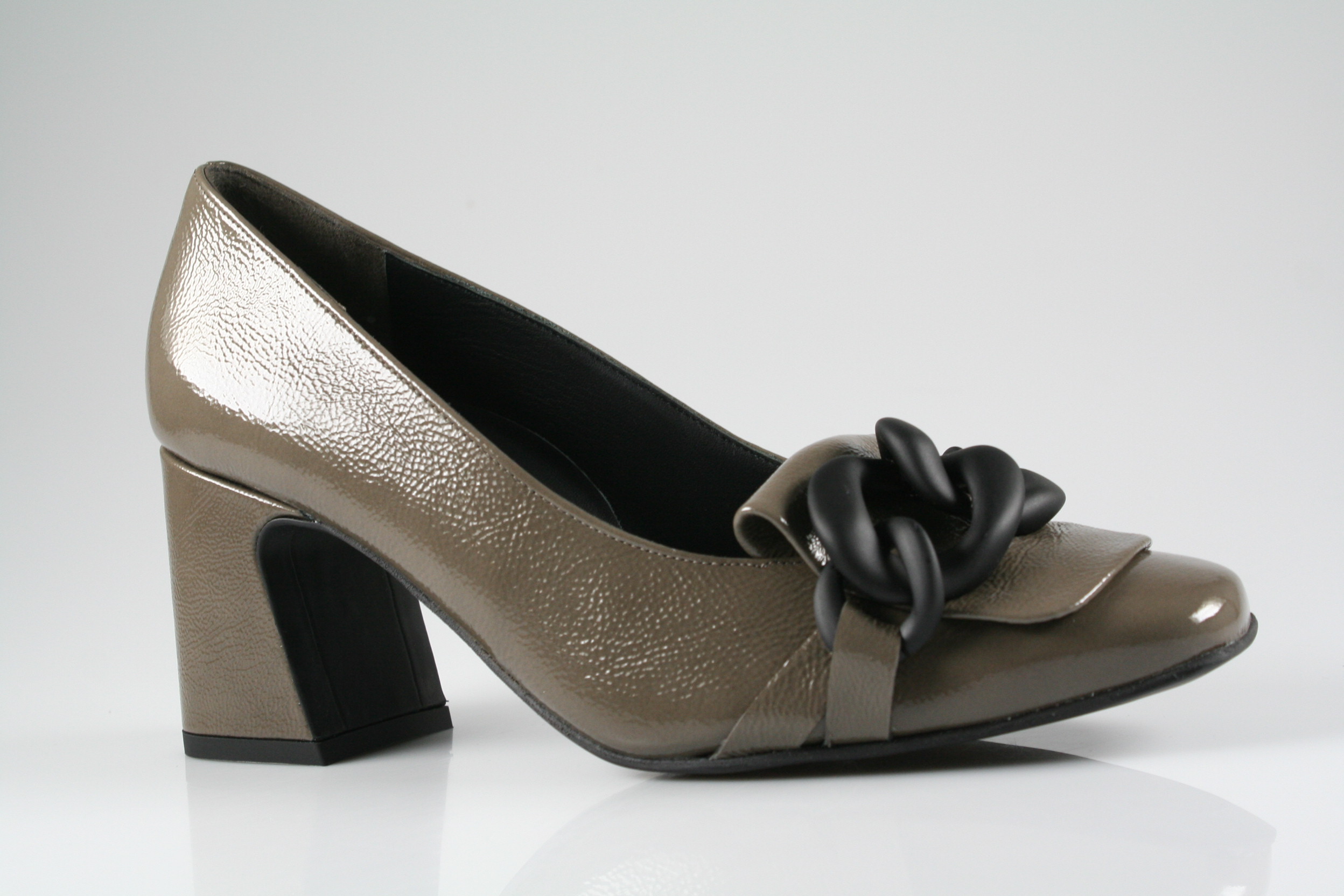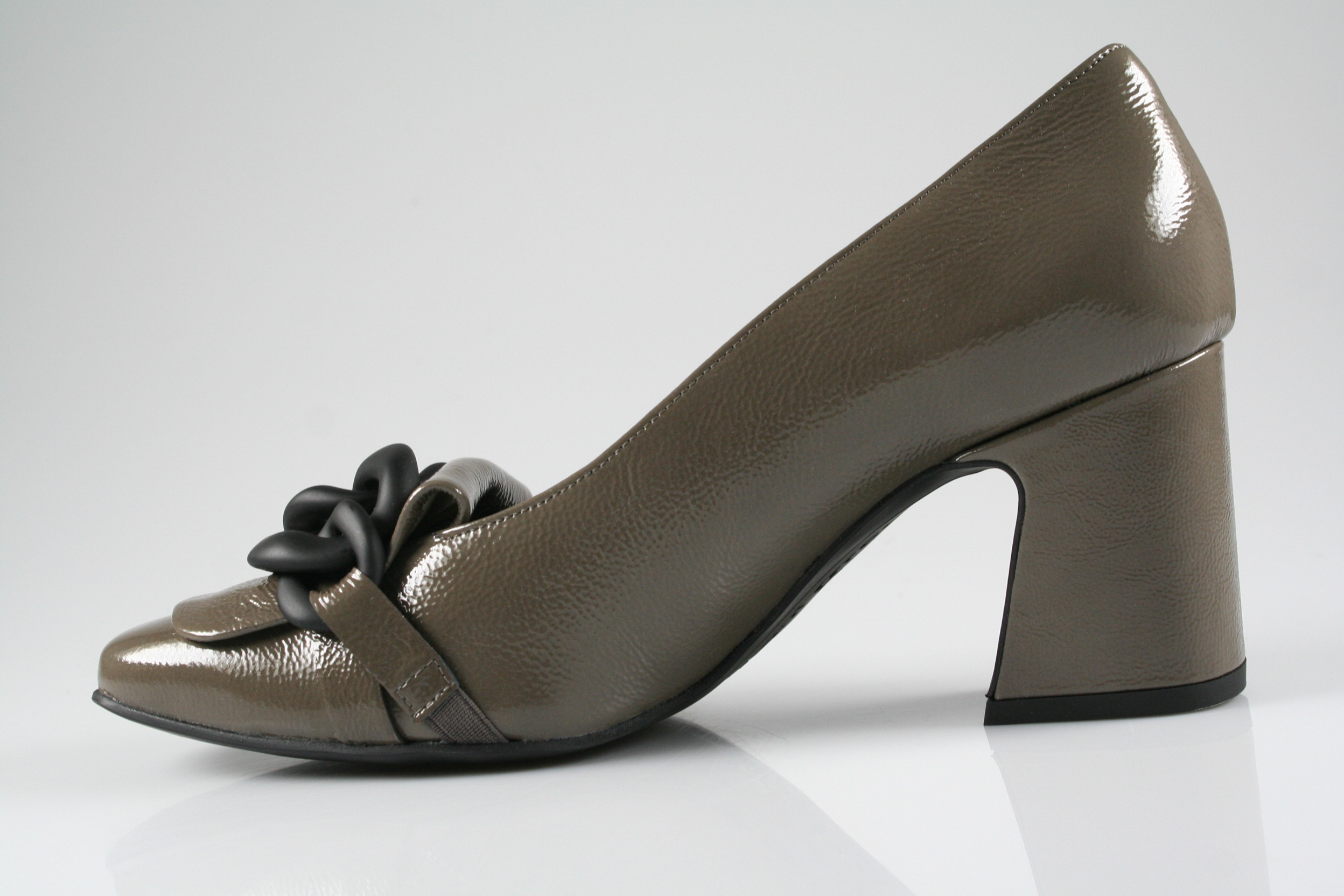 Typ: Pumps; Farbe "fango"; Ausstattung:; - Obermaterial: Knautschlack; - weiche Decksohle; - flexible Laufsohle; - 70mm Blockabsatz;