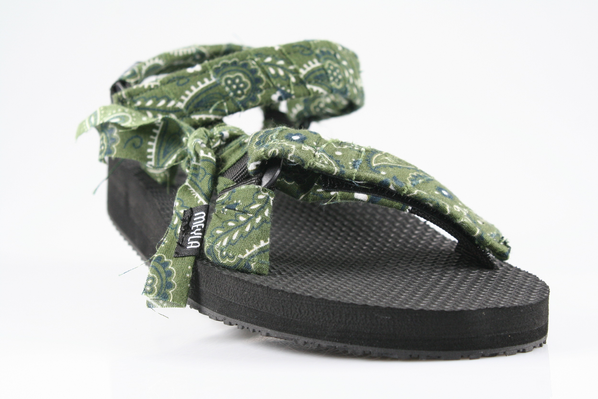 Typ: Sandale; Farbe "forest"; Ausstattung:; - Obermaterial: Synthetik, Bandana-Optik; - weiches Fußbett; - superleichte und flexible Laufsohle; - Klettverschluss zur Weitenregulierung; - Modell "MELIA"