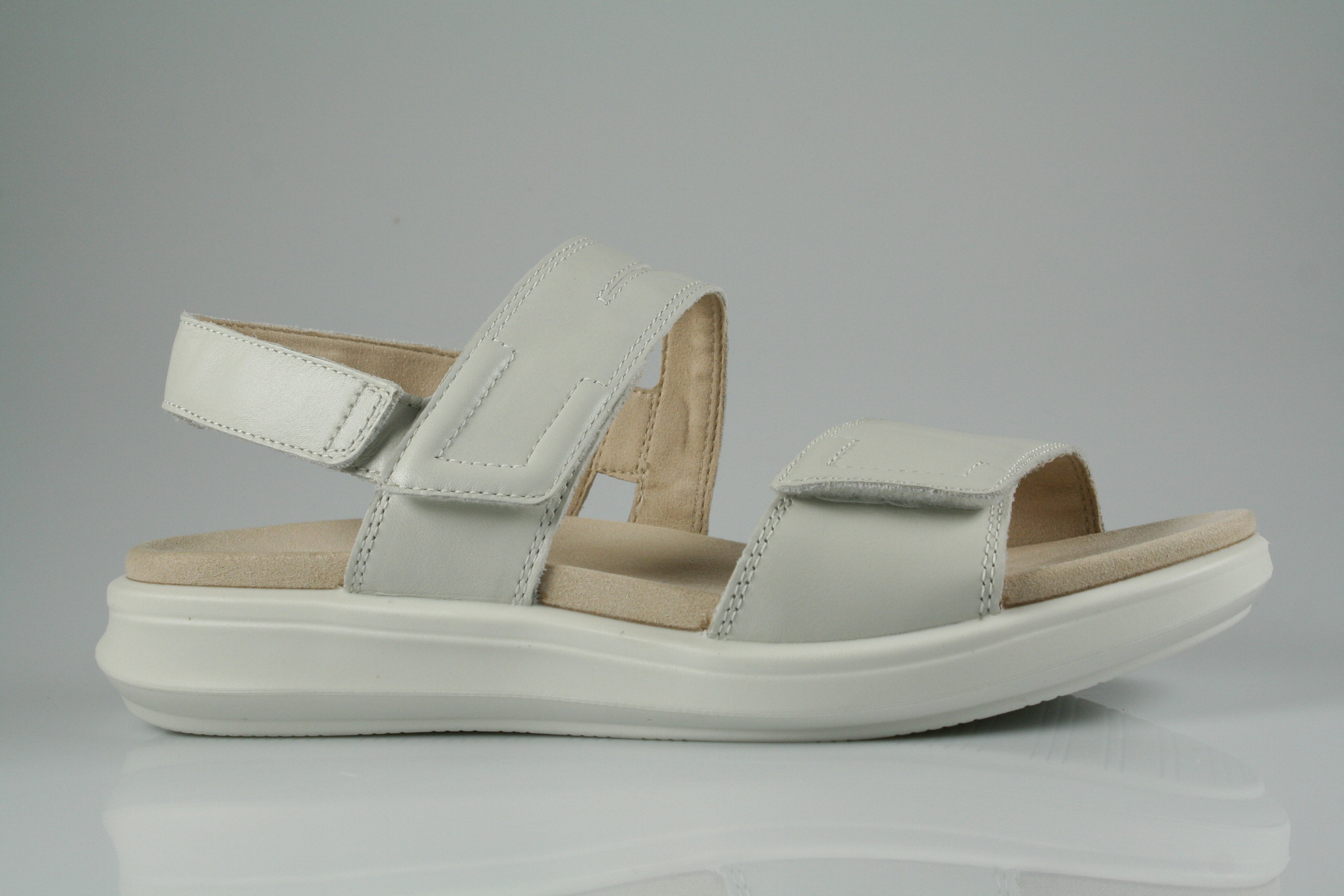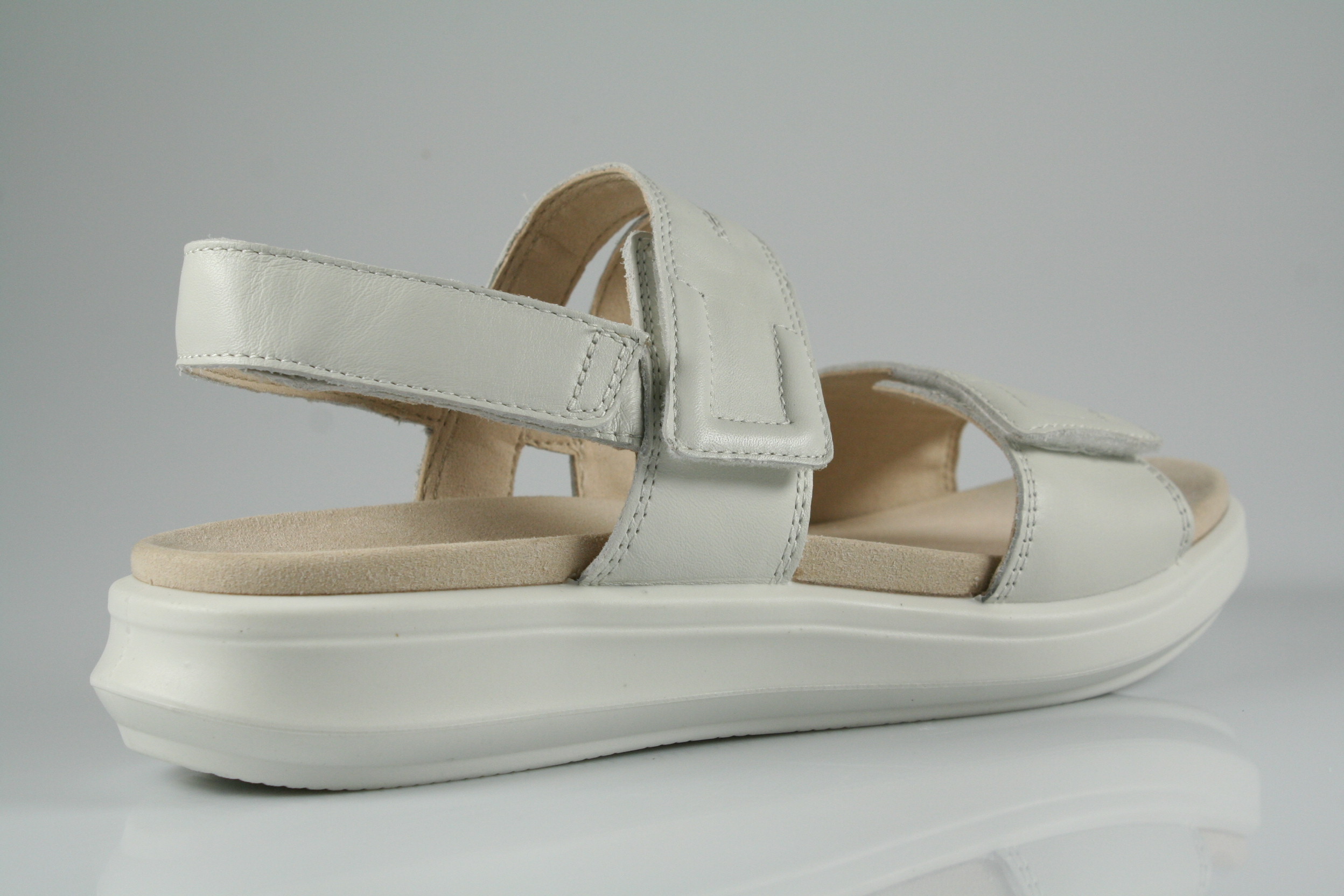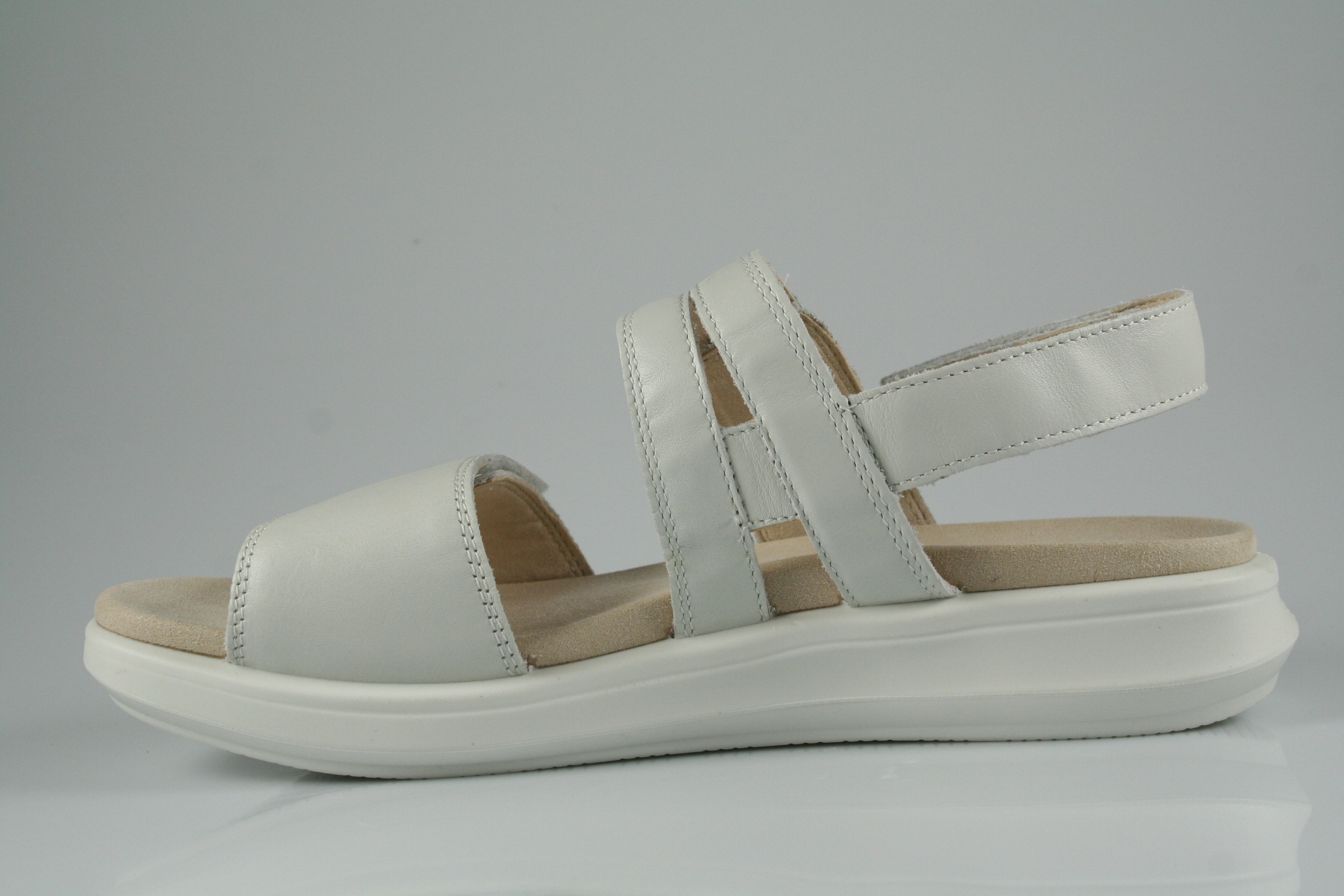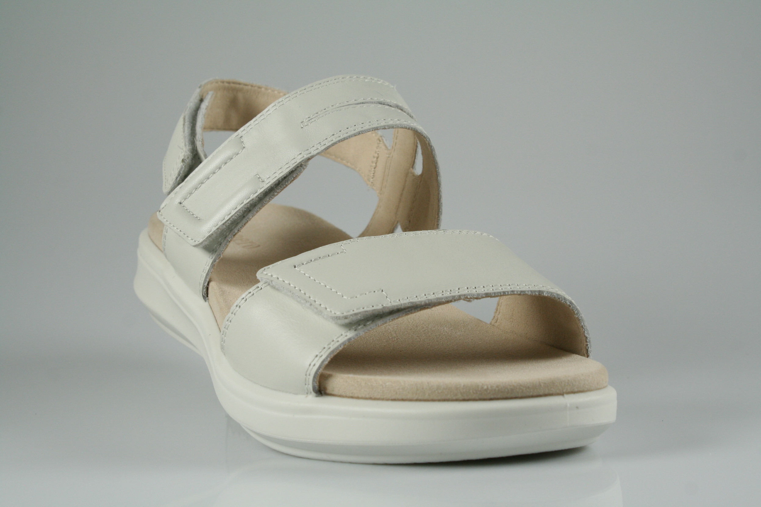 Typ: Sandale; Farbe: "white"; Ausstattung:; - Obermaterial: Nappaleder; - weich gepolstertes Fußbett; - atmungsaktives Futter; - weiche, flexible Gummilaufsohle; - Riemchen mit Klettverschluss