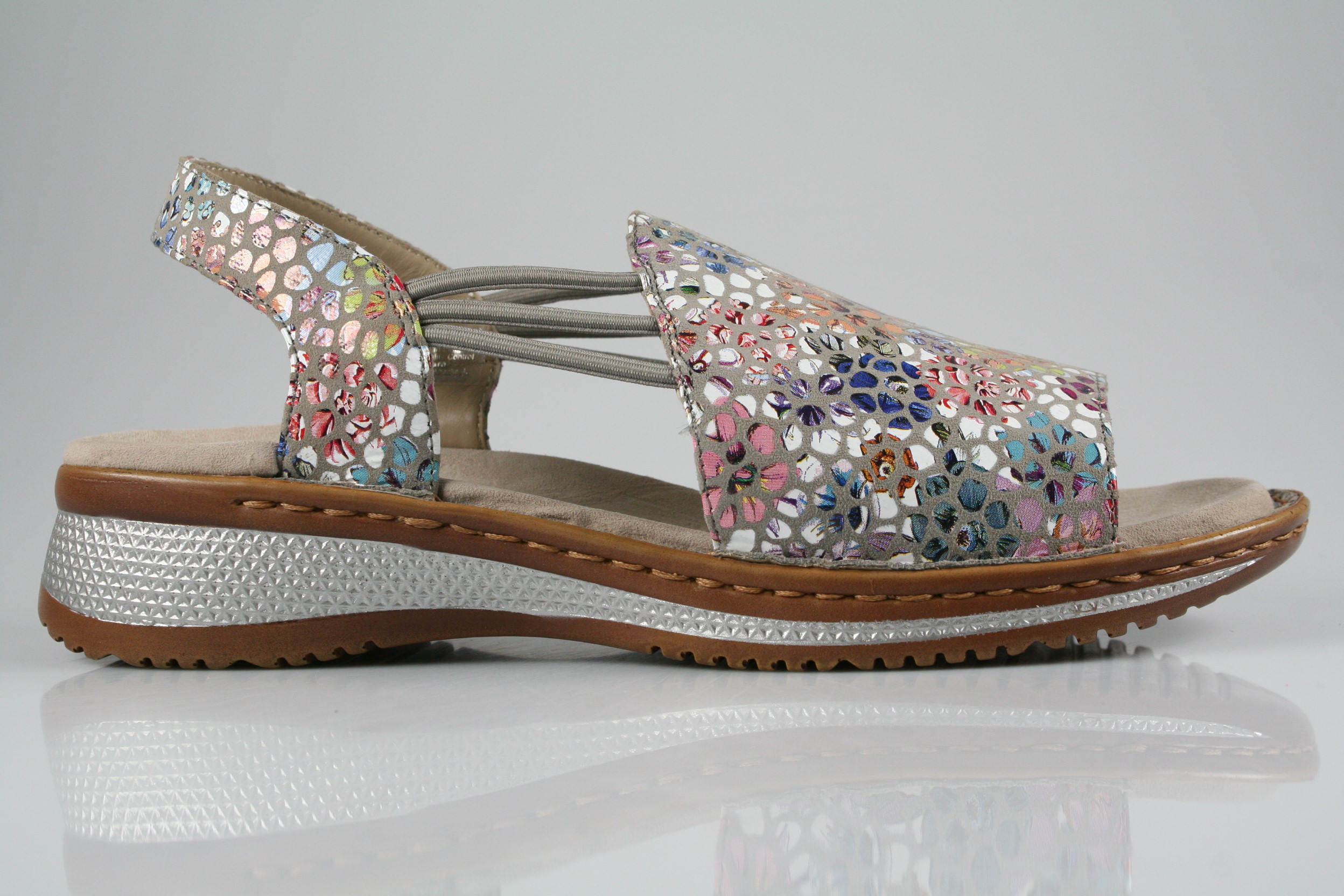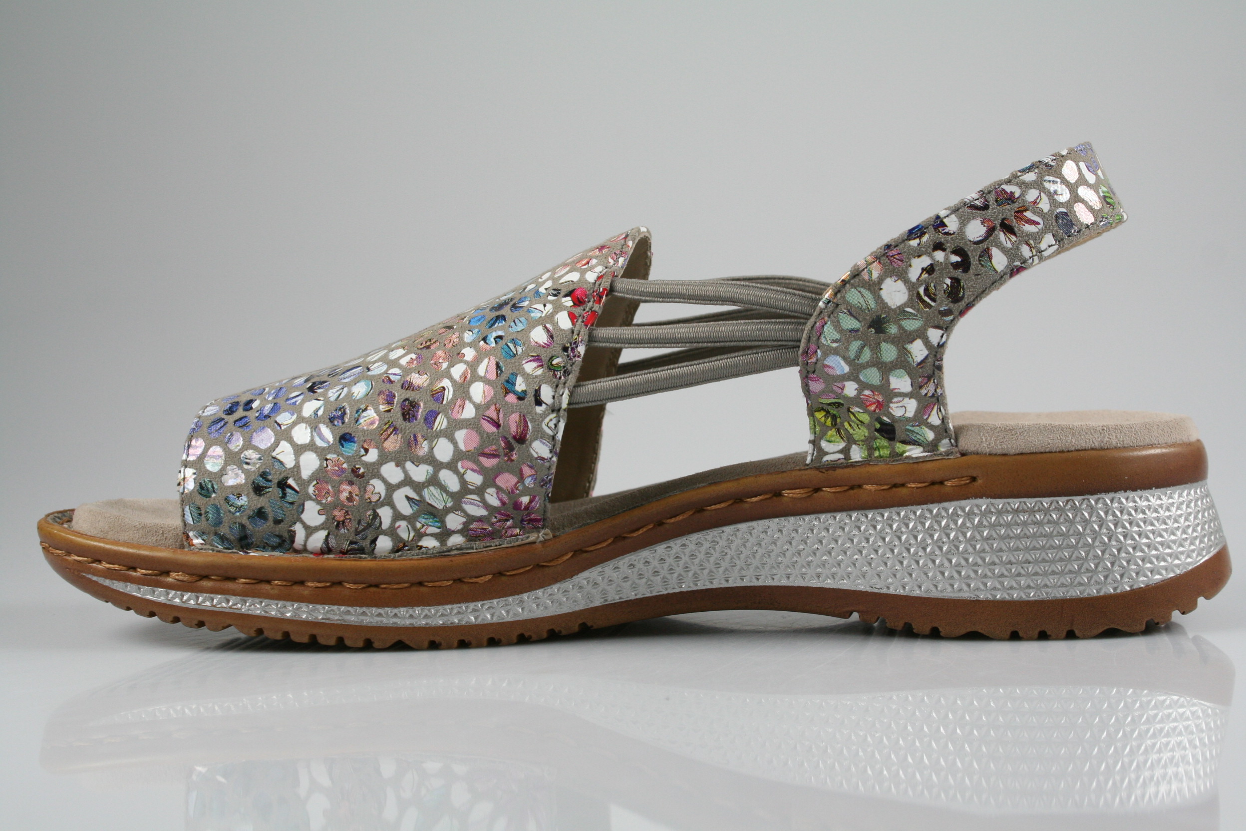 Typ: Sandale; Farbe: "sasso"; Ausstattung:; - Obermaterial: Konfettikid; - weiches Fußbett; - PU-Keilsohle; - Riemchen mit Klettverschluss; - Weite "G";