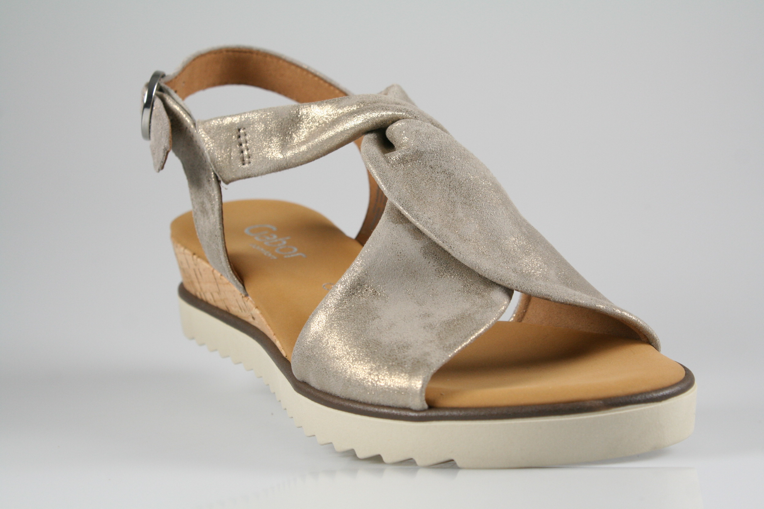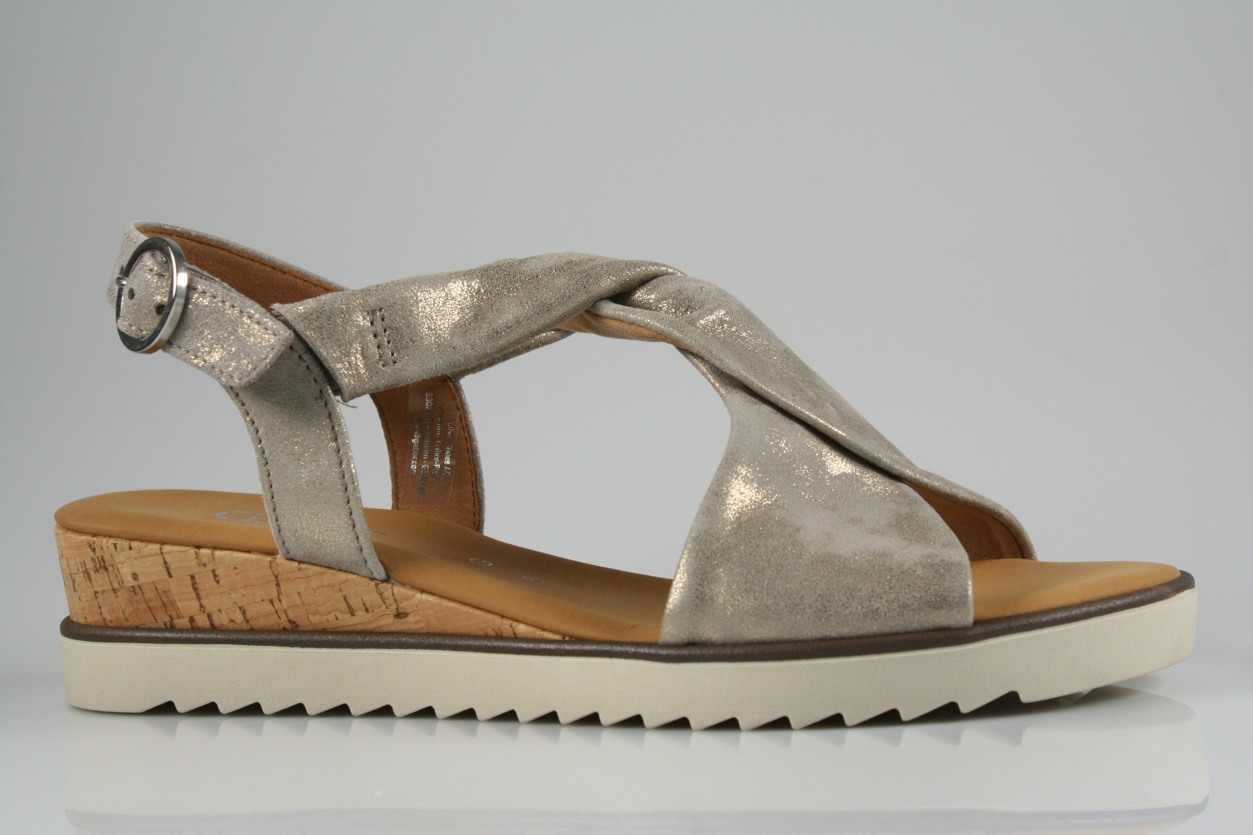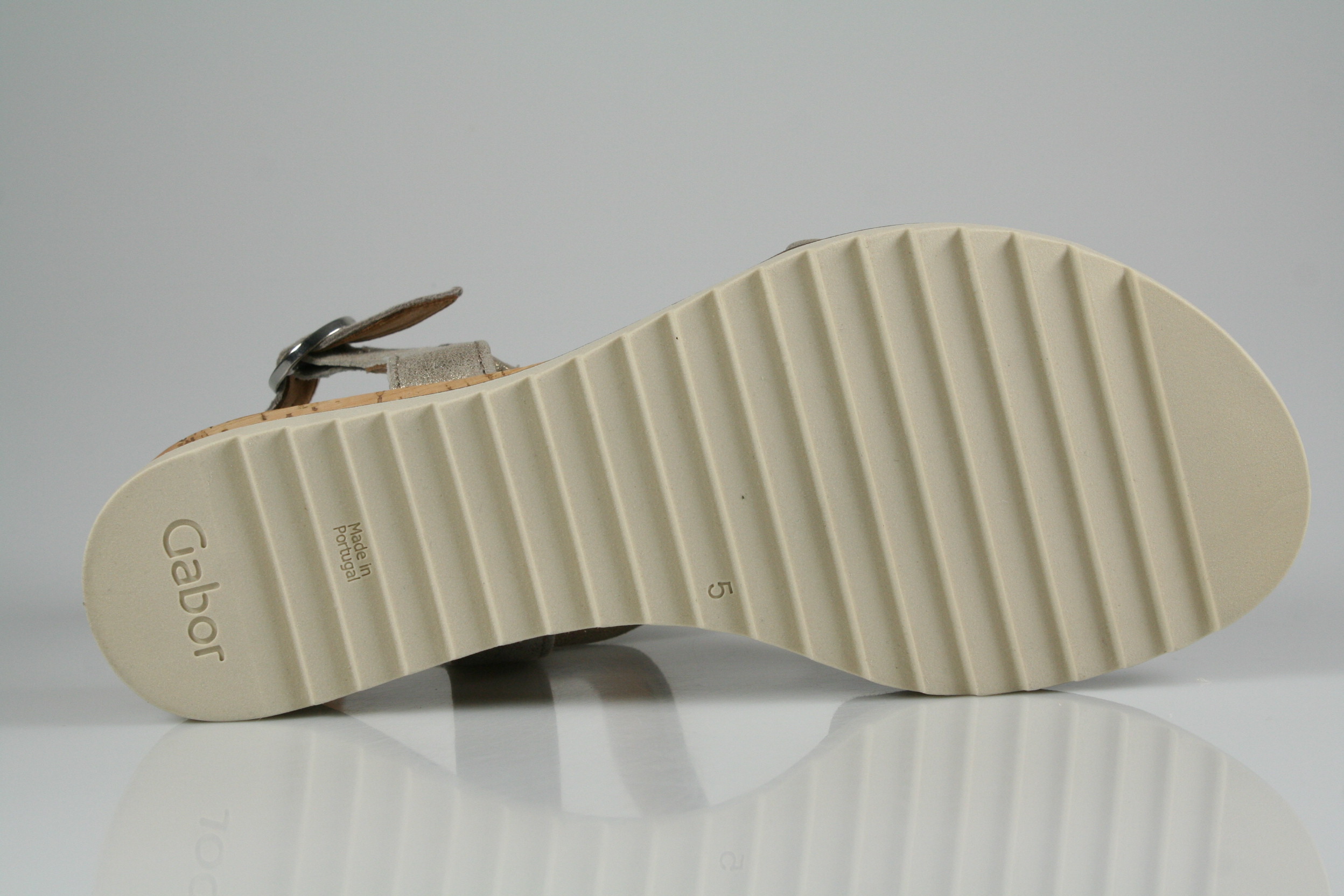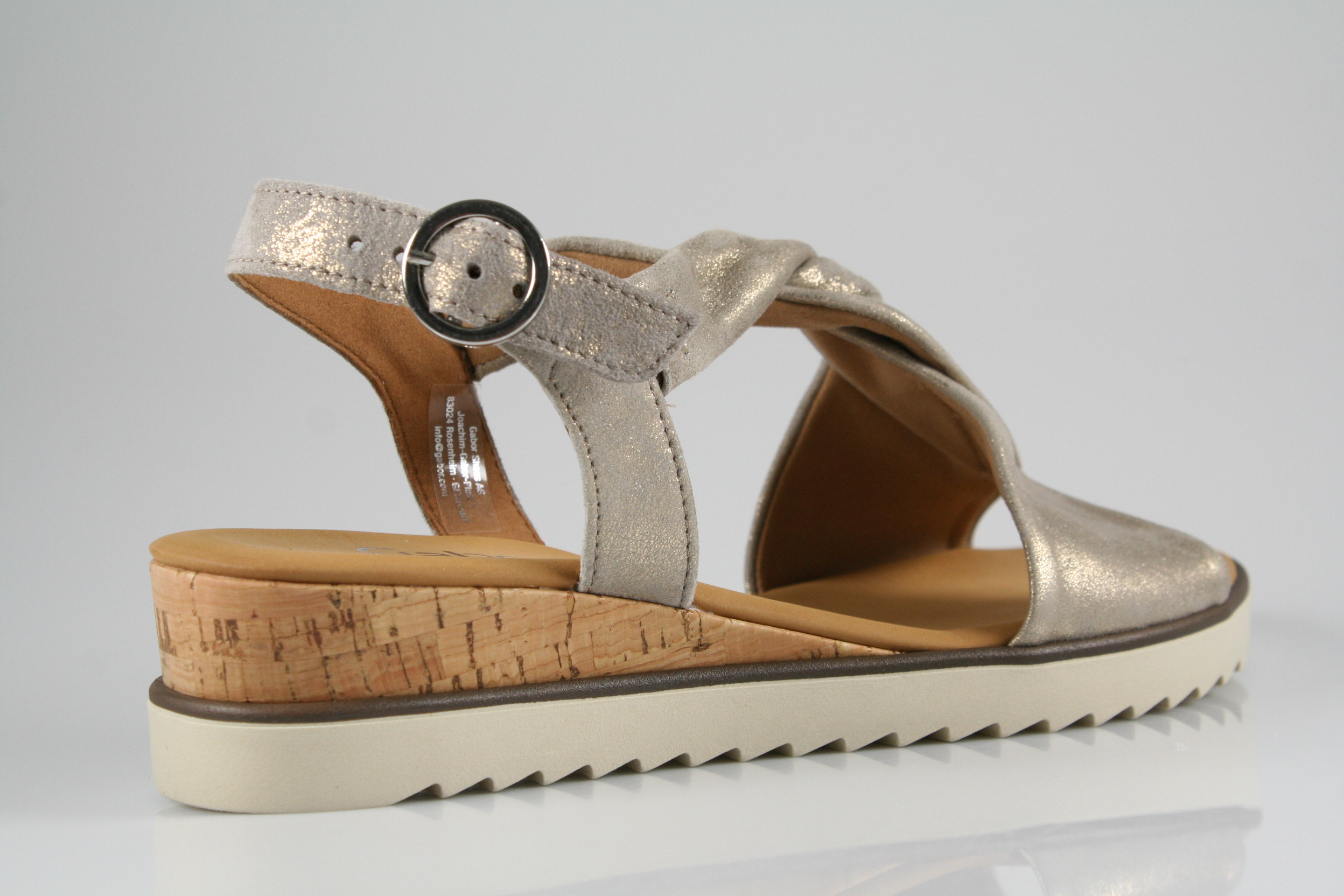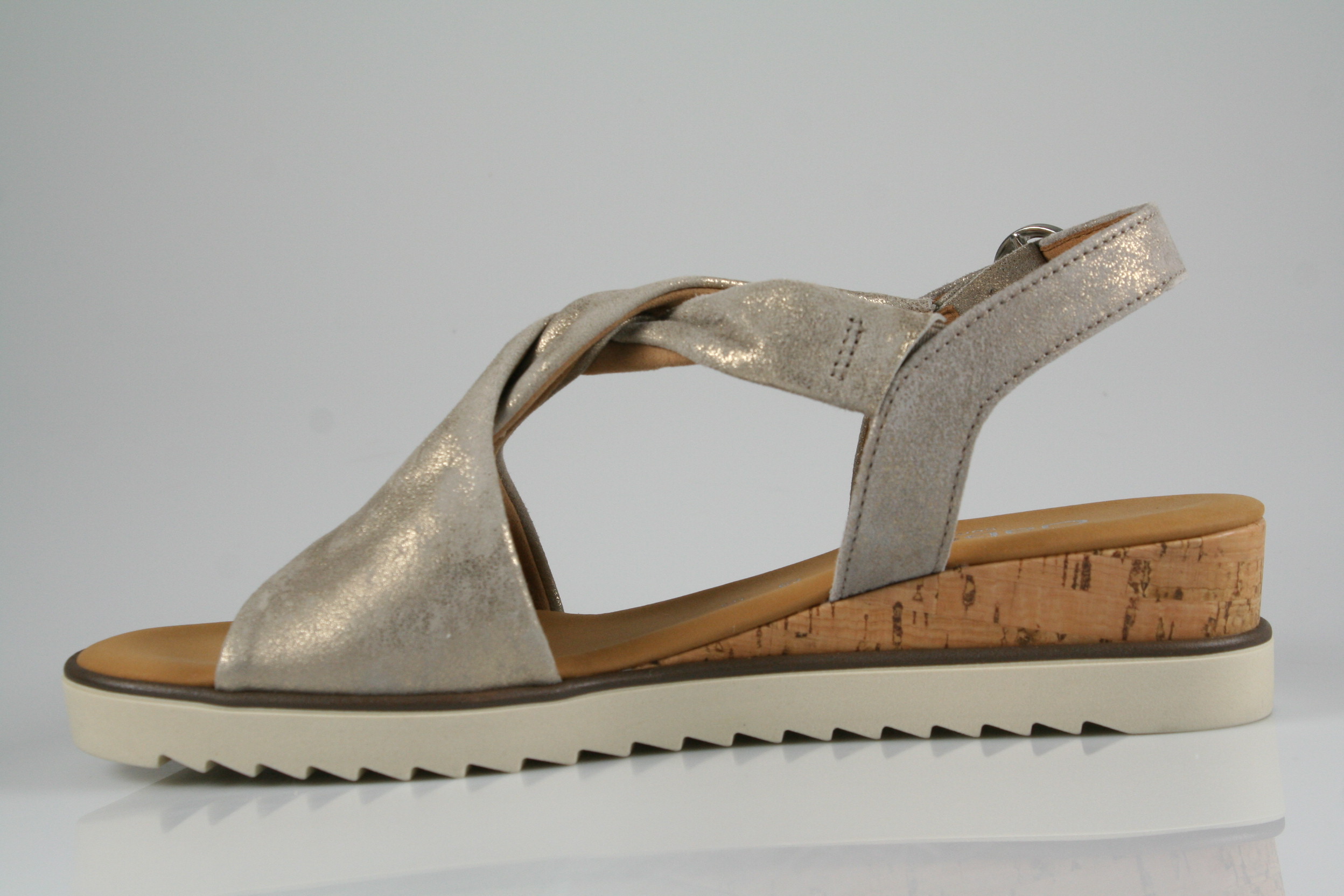Typ: Sandale; Farbe "muschel"; Ausstattung:; - Obermaterial: Leder; - gepolsterte Decksohle; - leichte Laufsohle; - 25mm Keilabsatz; - gepolsterter Schaftrand; - Riemchen zur Weitenregulierung