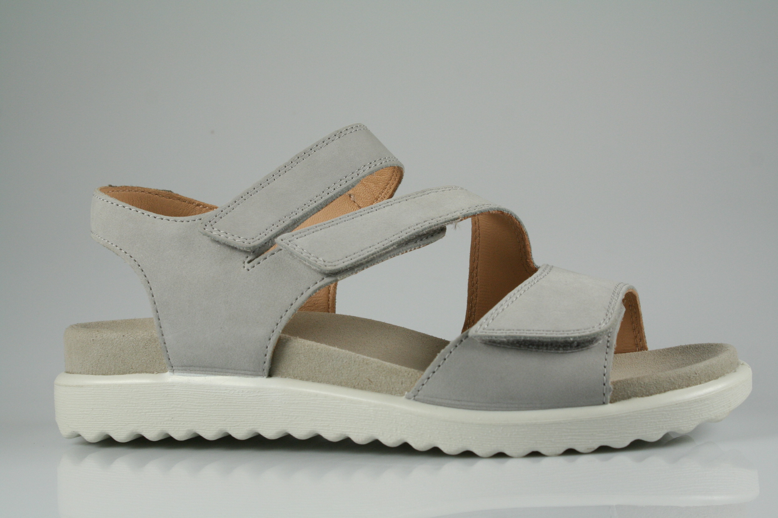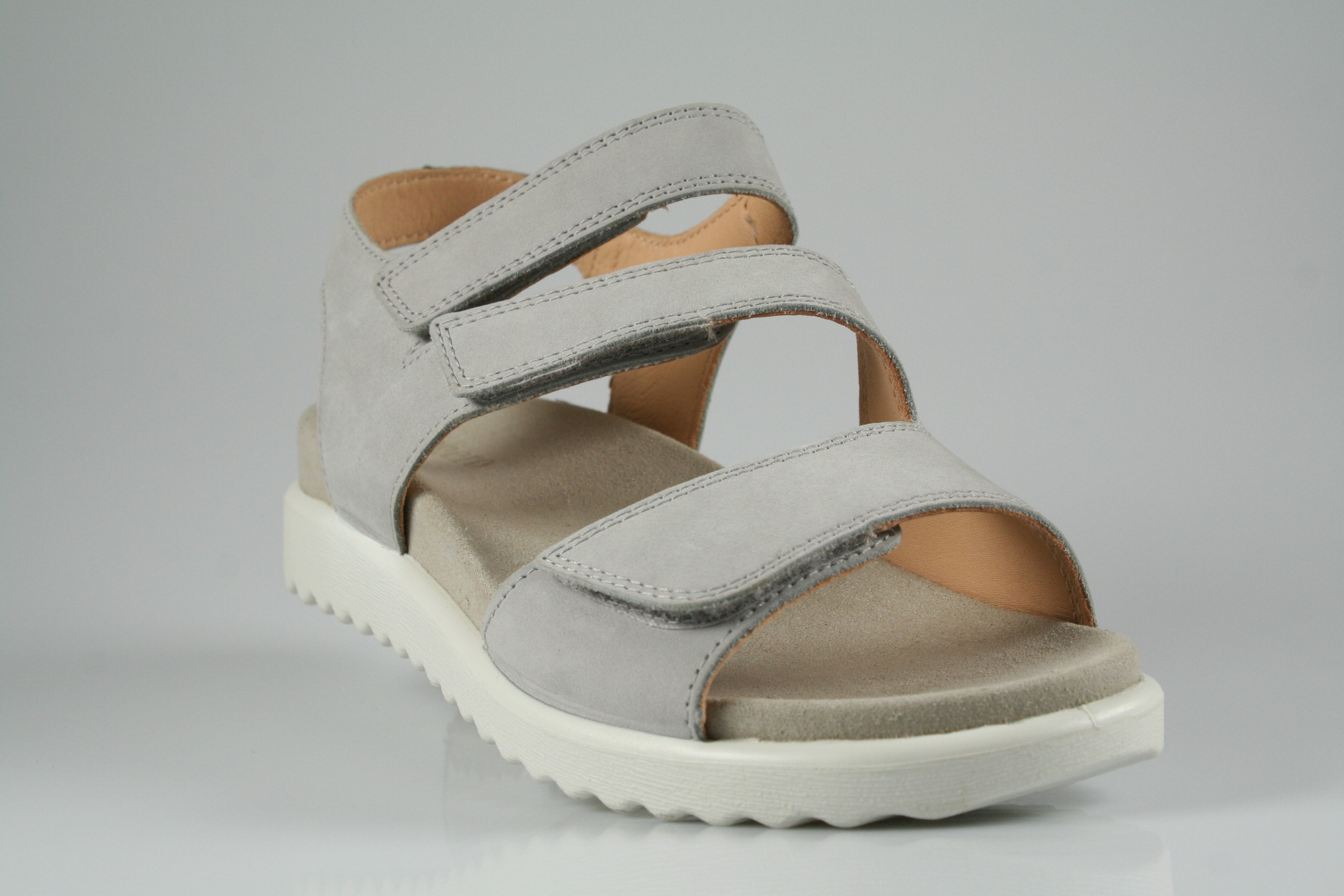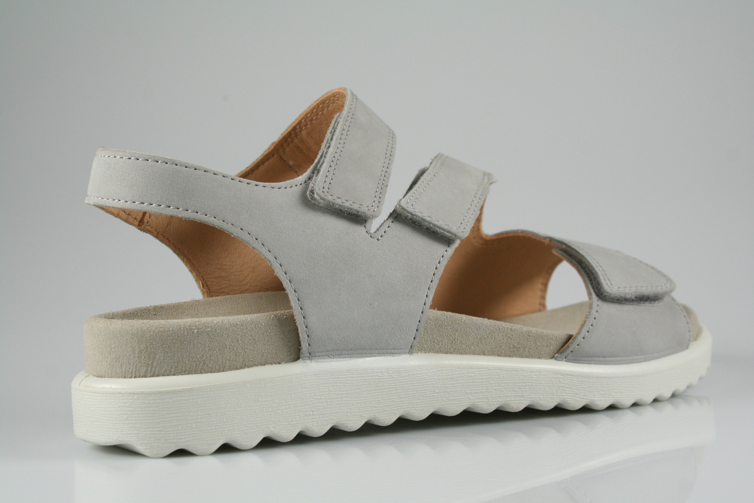 Typ: Sandale; Farbe: "aluminio"; Ausstattung:; - Obermaterial: Nubukleder; - weich gepolstertes Fußbett; - atmungsaktives Futter; - weiche, flexible Gummilaufsohle; - Riemchen mit Klettverschluss