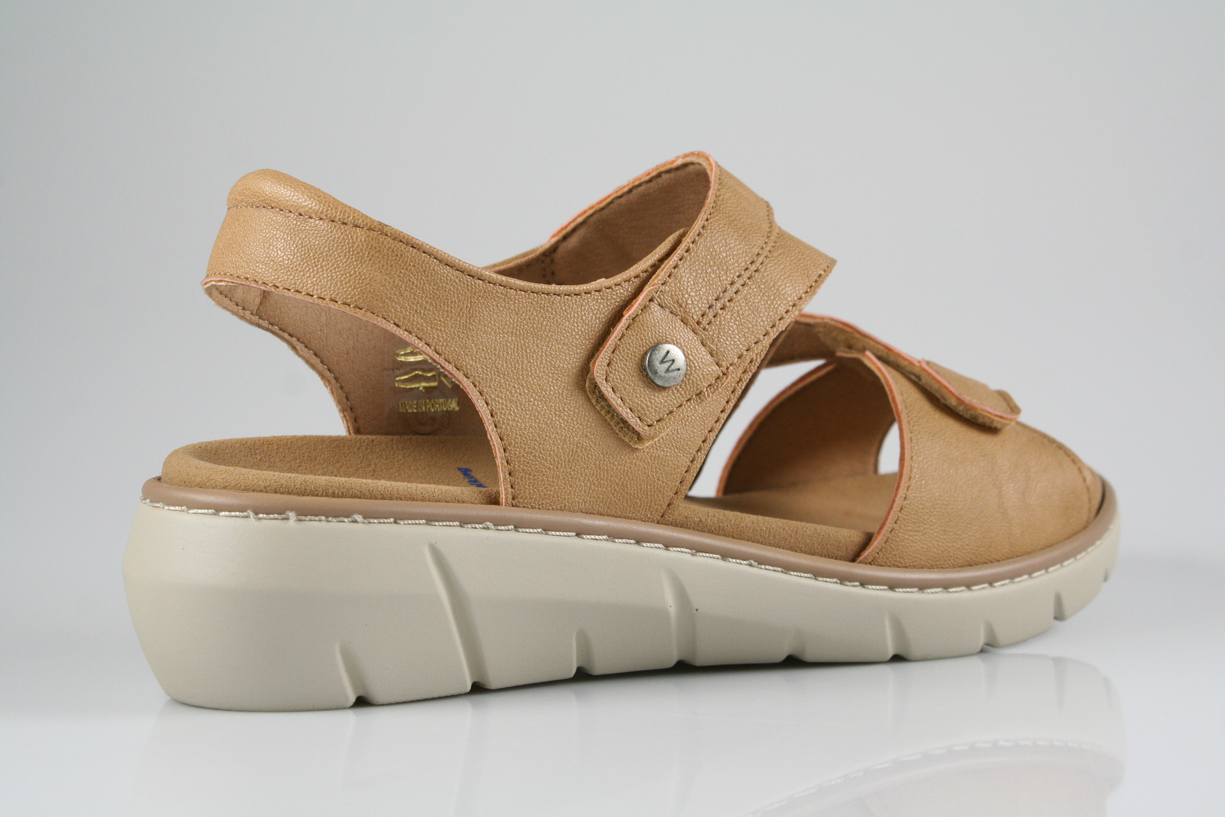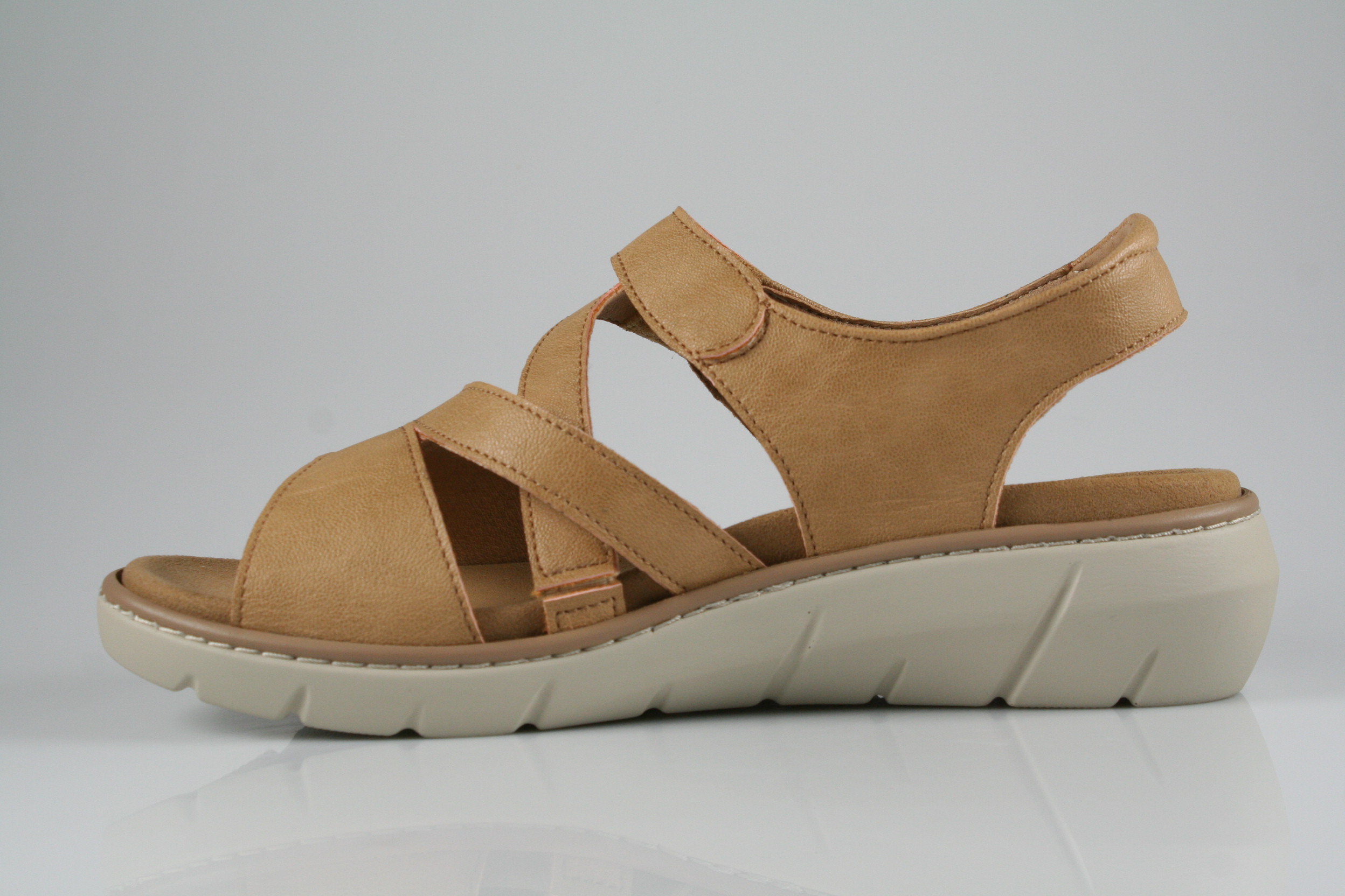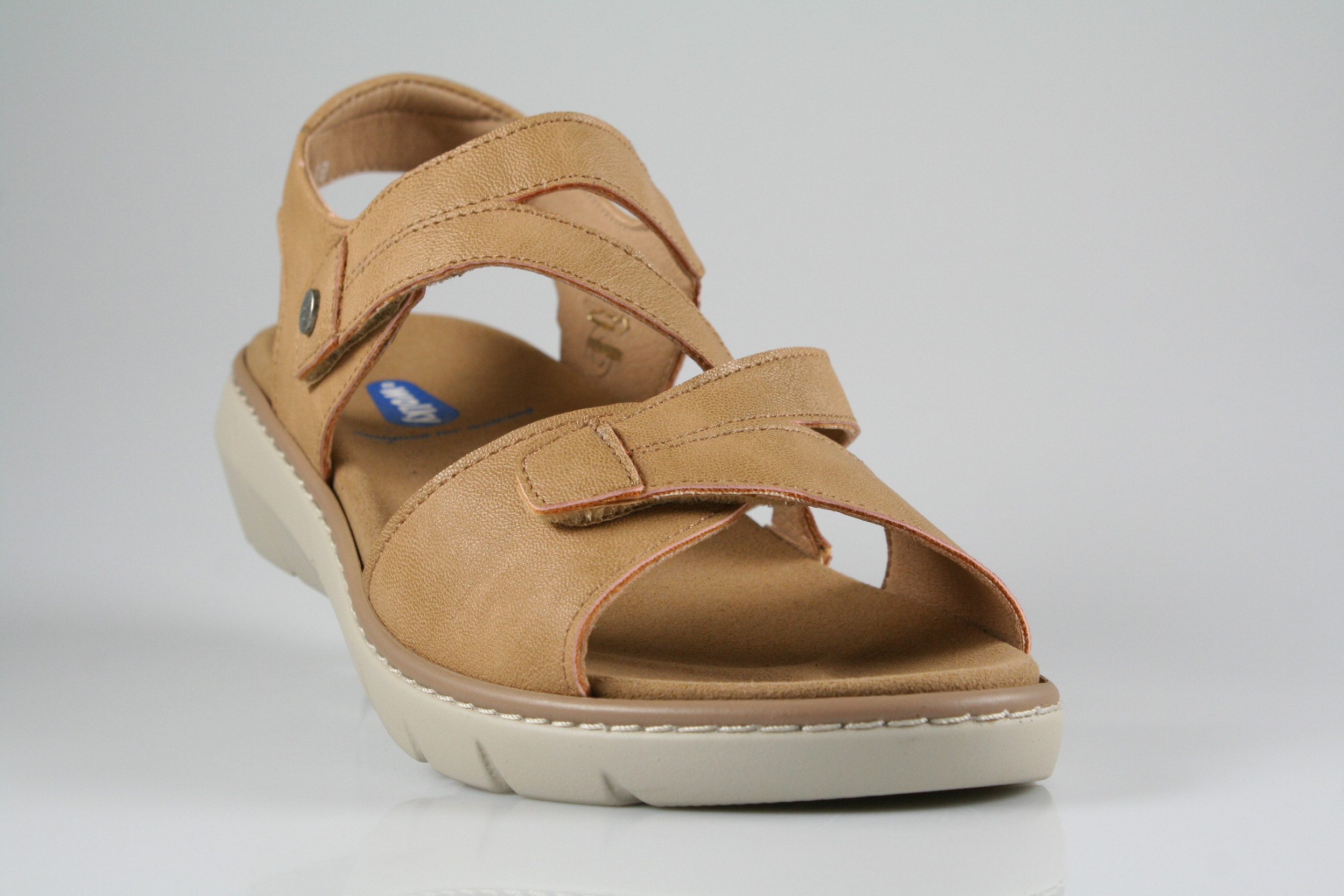 Typ: Sandale; Farbe "beige"; Ausstattung:; - Obermaterial: Leder; - weiches Fußbett; - leichte Laufsohle; - gepolsterter Schaftrand; - Klettverschluss zur Weitenregulierung
