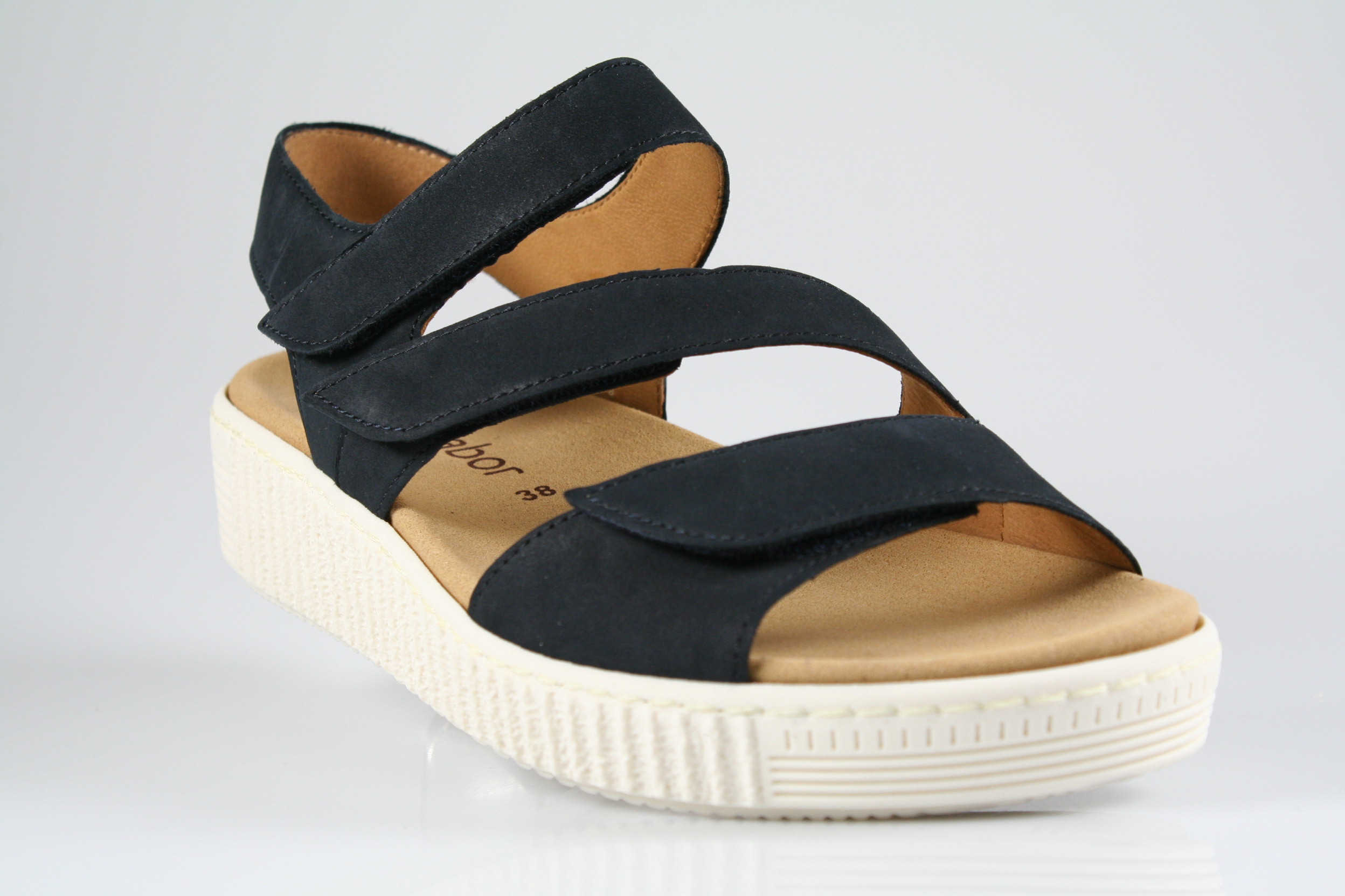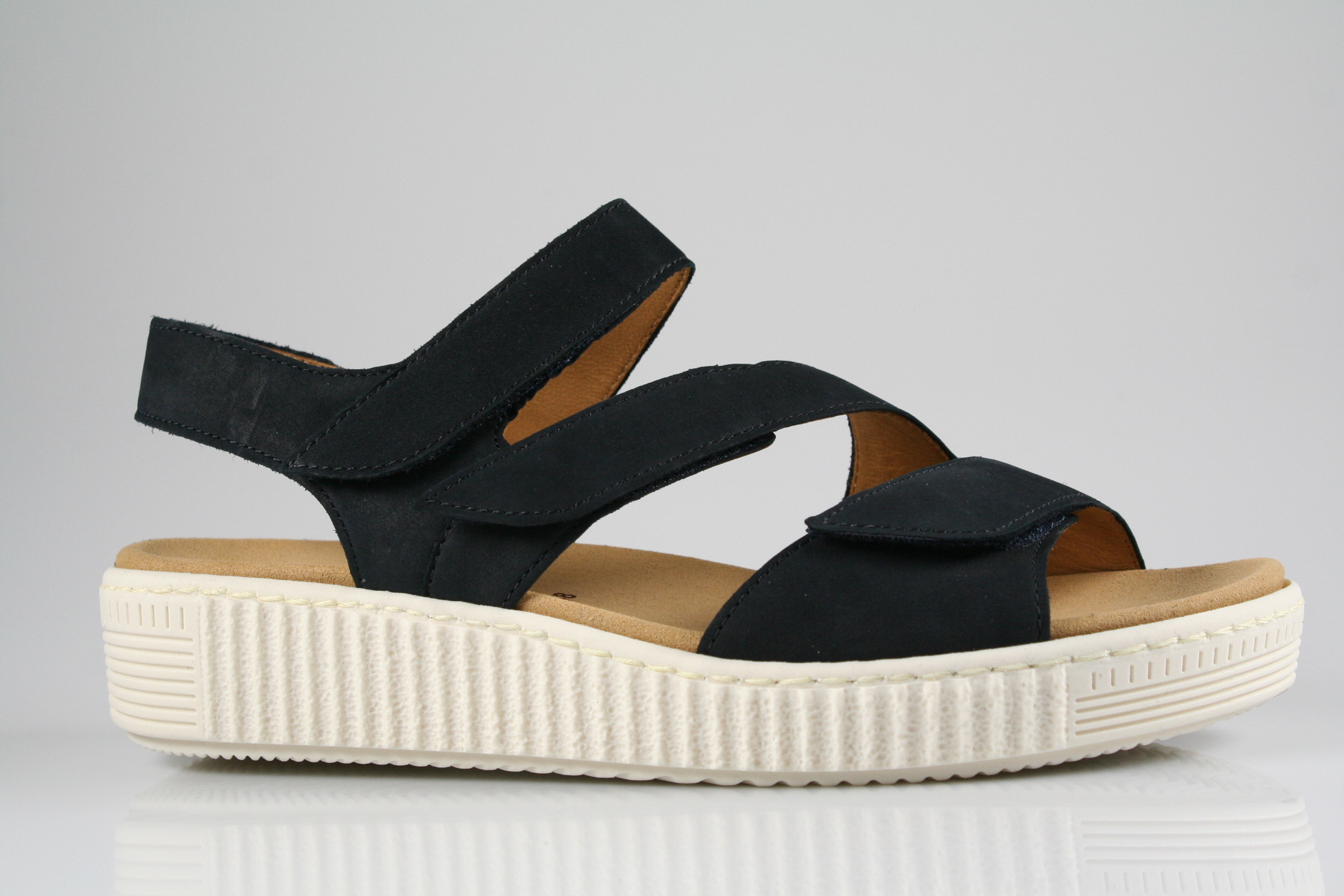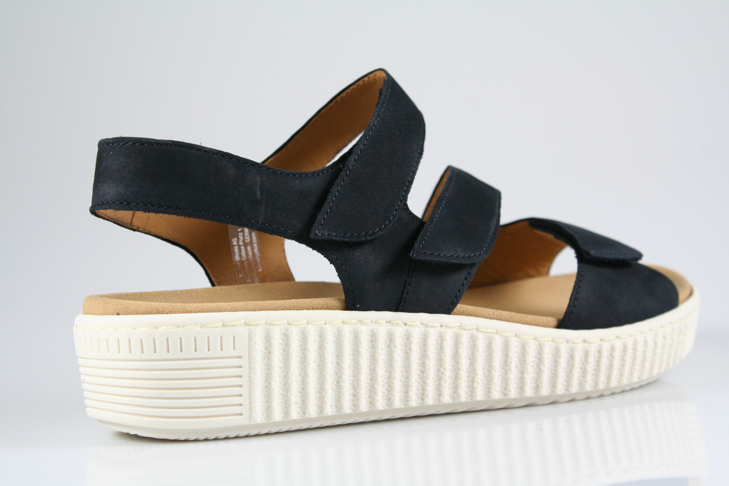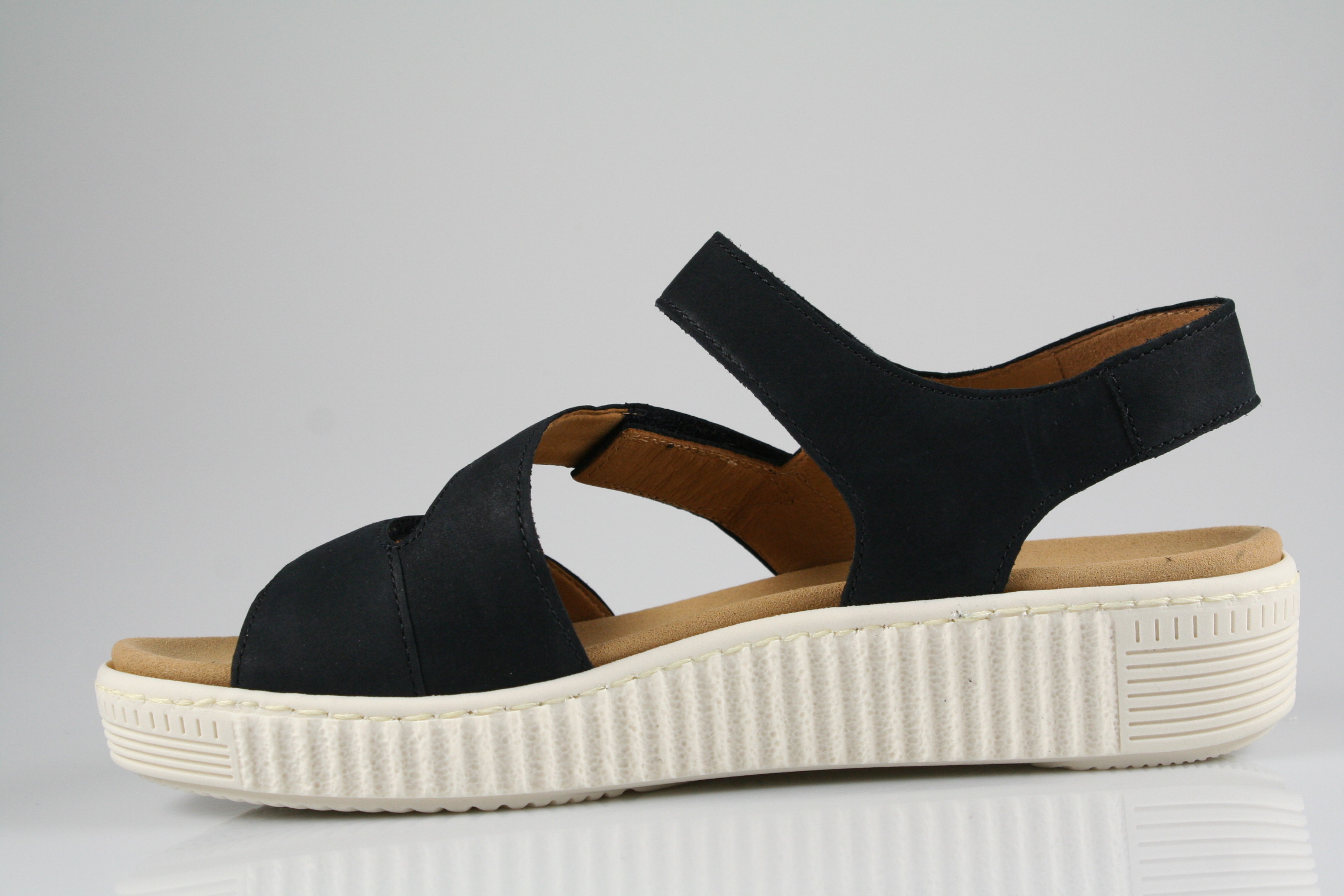 Typ: Sandale; Farbe "nightblue"; Ausstattung:; - Obermaterial: Nubukleder; - gepolsterte Decksohle; - leichte Laufsohle; - 20mm Keilabsatz; - gepolsterter Schaftrand; - Klettverschluss zur Weitenregulierung