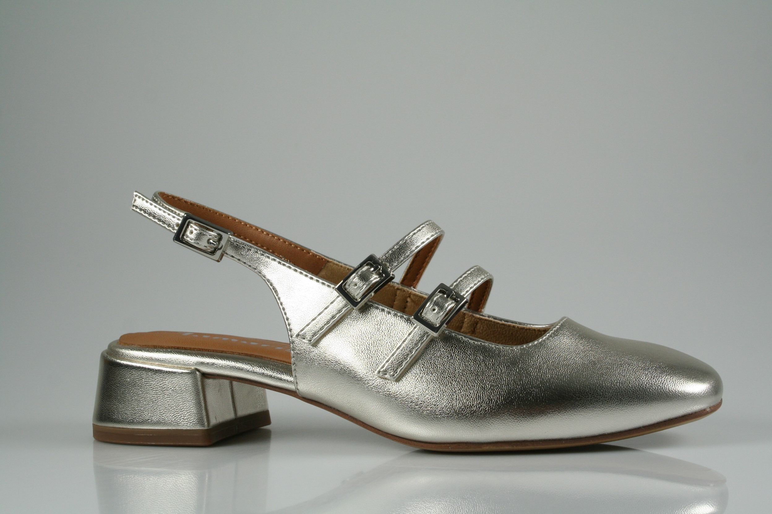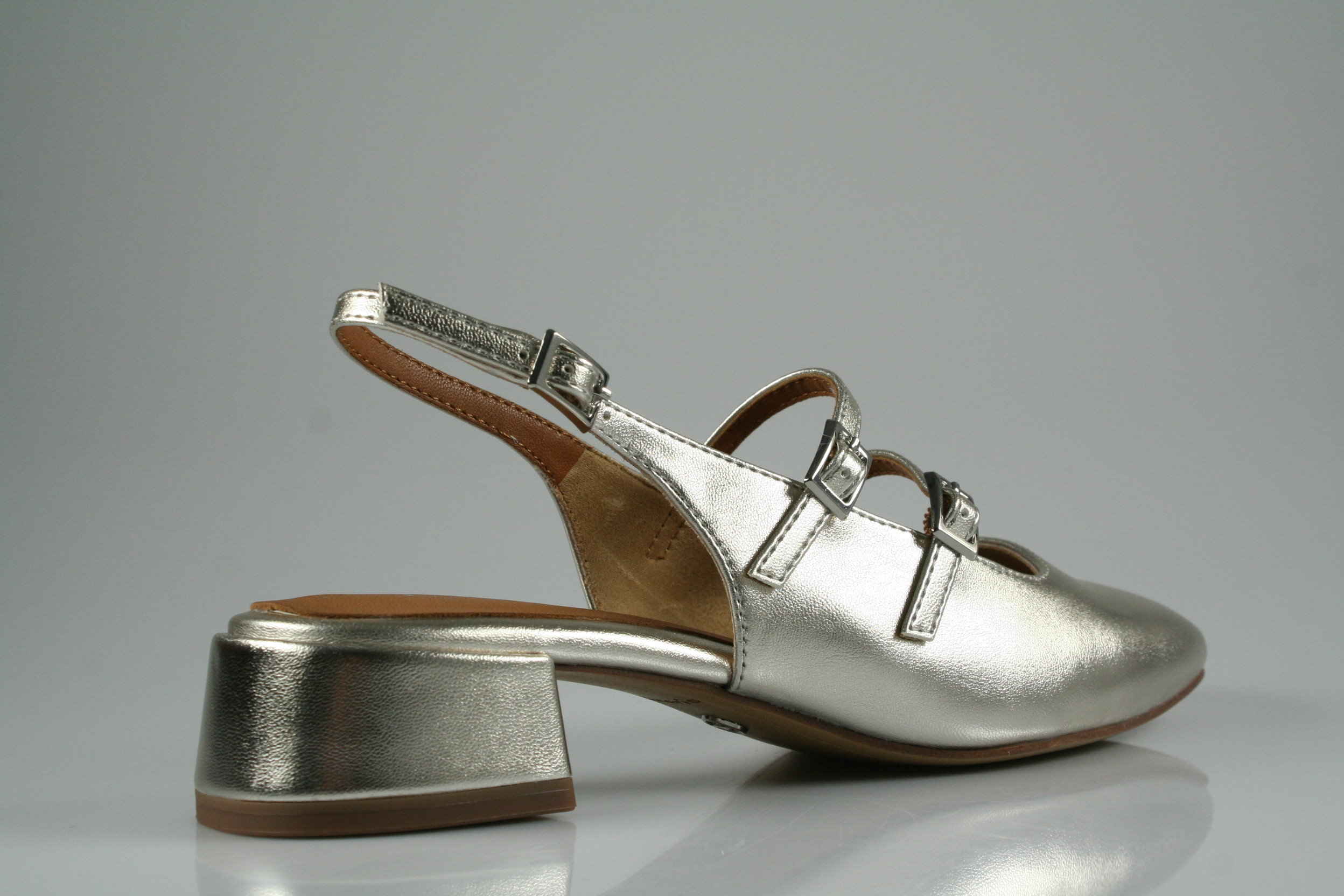 Typ: Slingpumps; Farbe: "platinum"; Ausstattung:; - Obermaterial: Lederimitat; - weiche "Touch-It"-Decksohle; - flexible Laufsohle; - Riemchen mit elastischen Einsätzen;