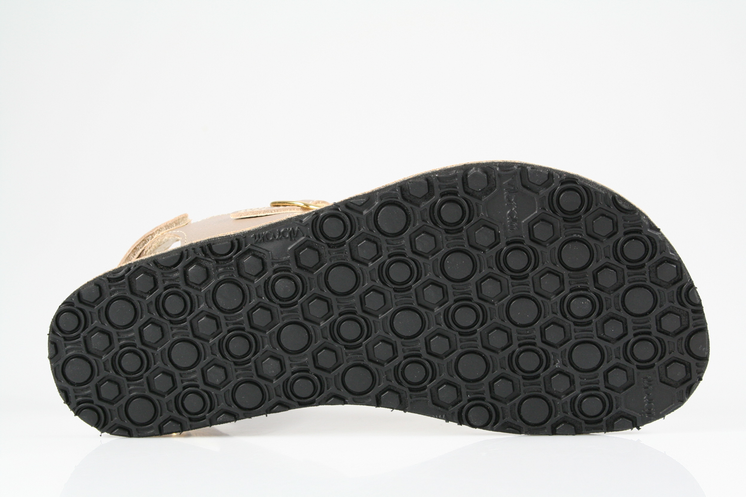 Typ: Sandale; Farbe "champagne"; Ausstattung:; - Obermaterial: Leder; - dünne Laufsohle; - gepolsterter Schaftrand; - Klettverschluss zur Weitenregulierung;