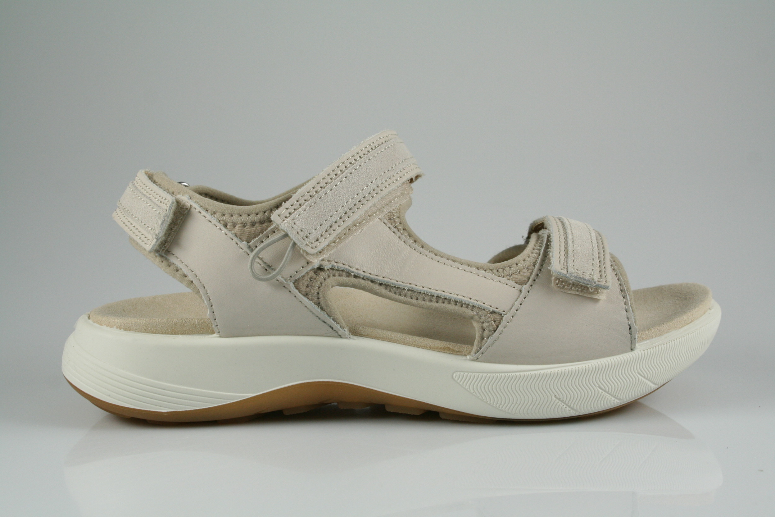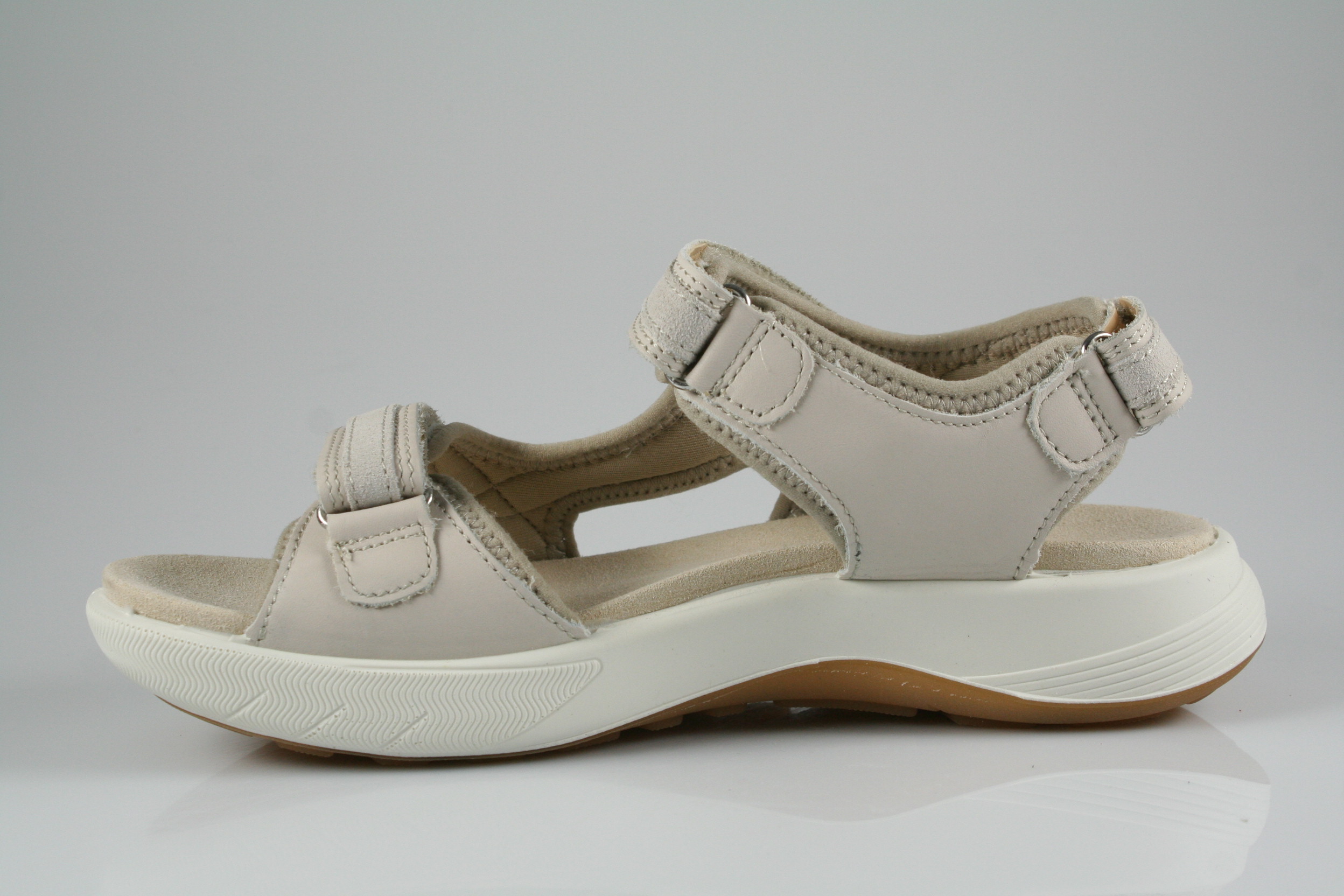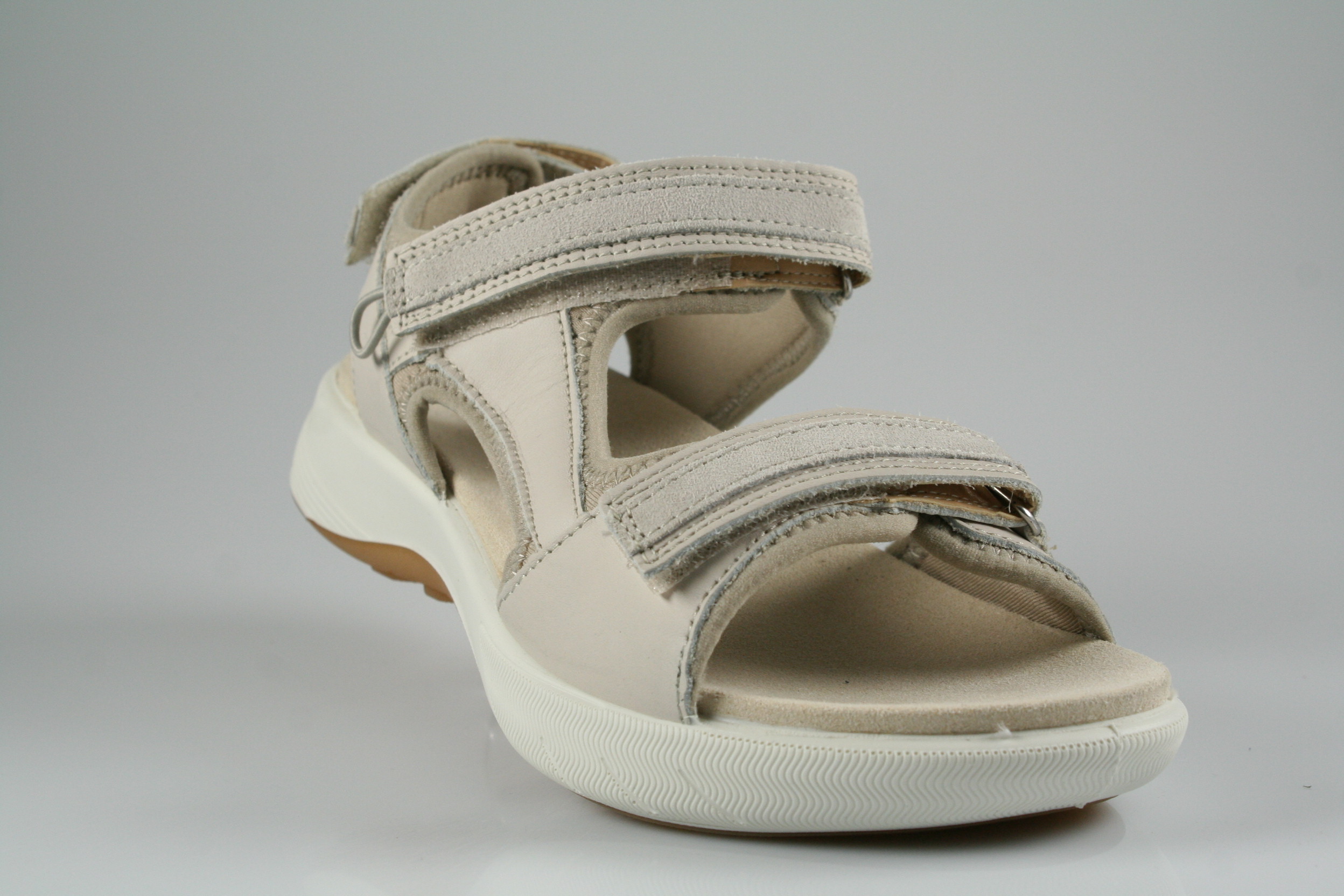Typ: Sandale; Farbe "soft taupe"; Ausstattung:; - Obermaterial: Leder, sonstiges; - weiches Fußbett; - flexible Laufsohle; - gepolsterter Schaftrand; - Klettverschluss zur Weitenregulierung