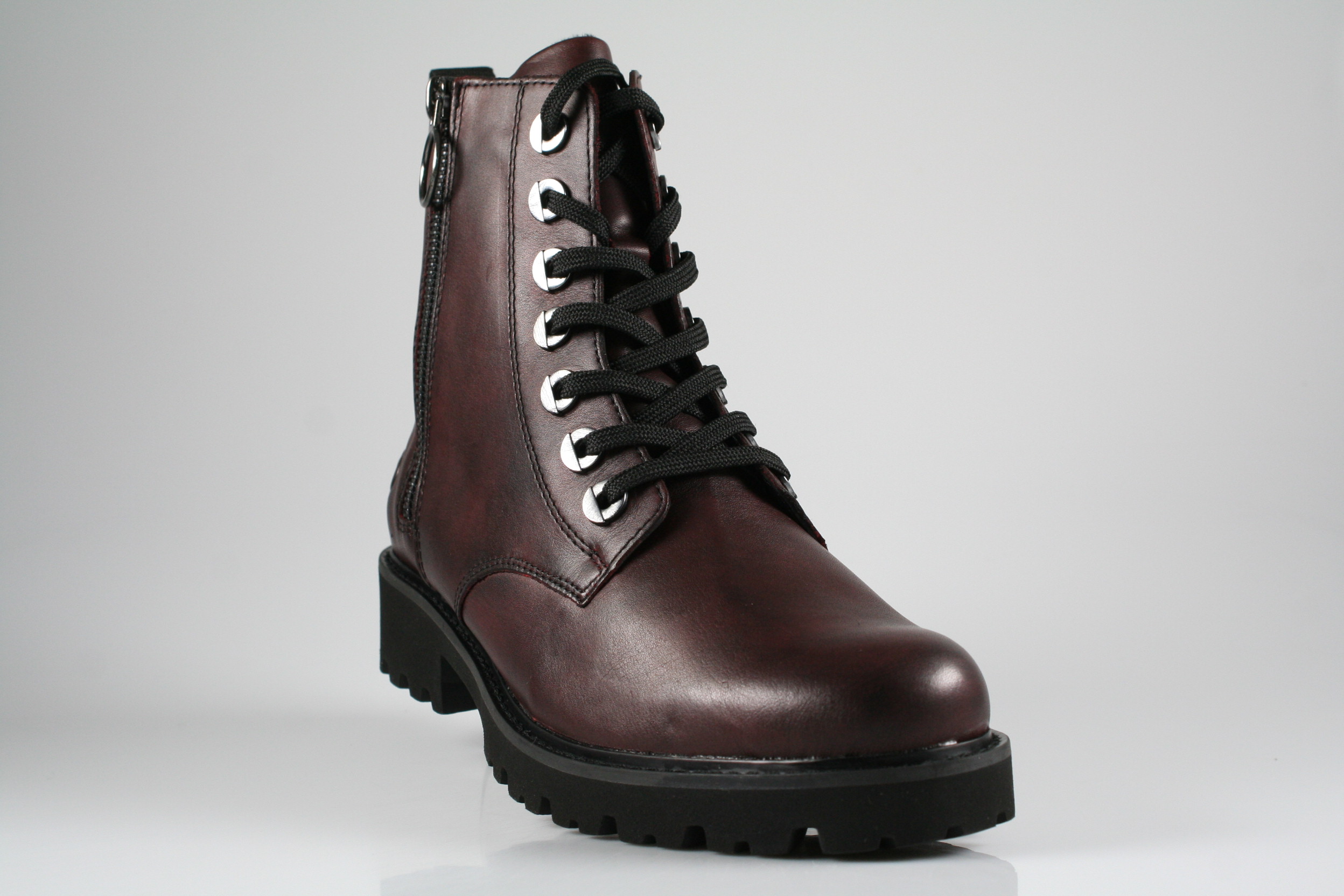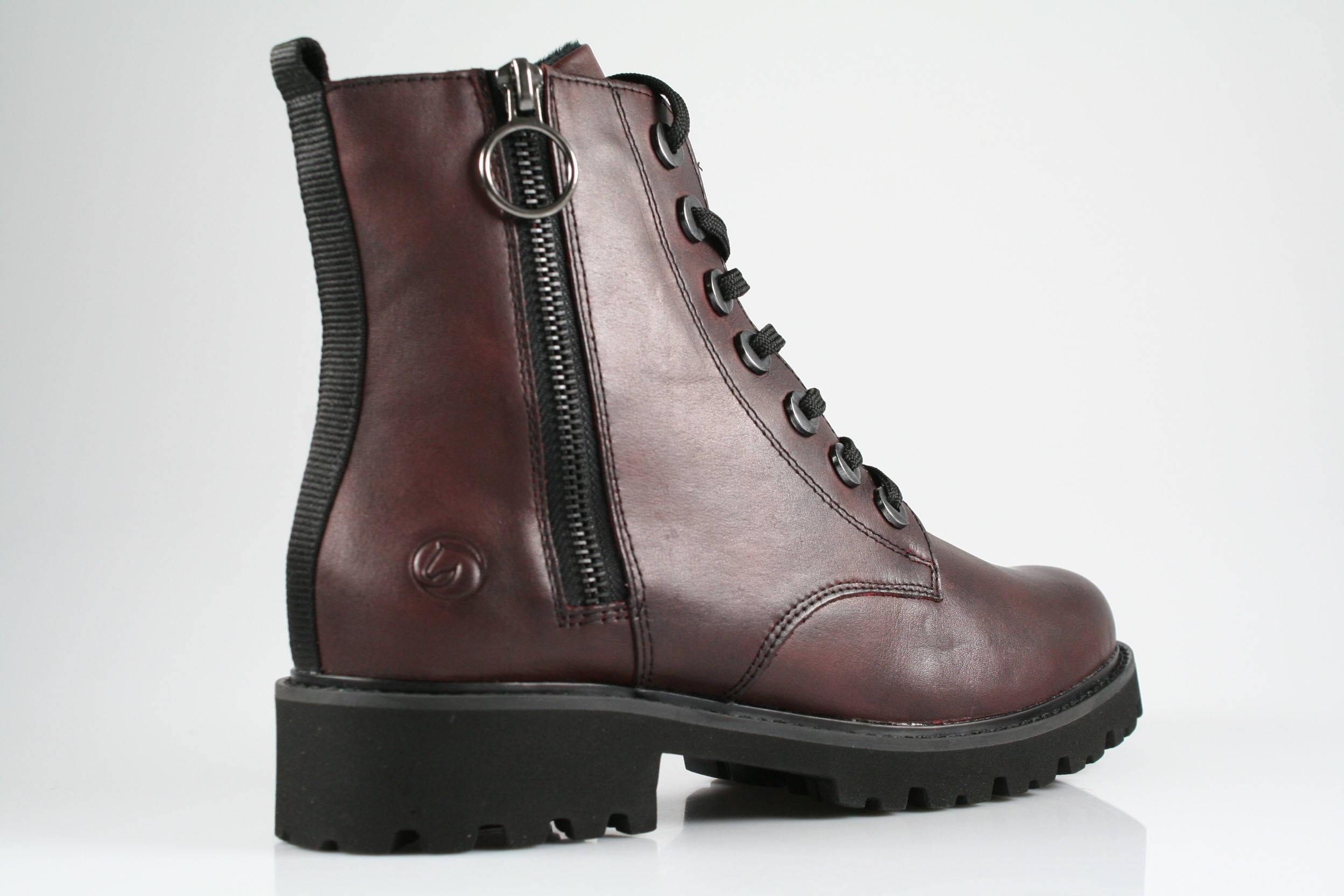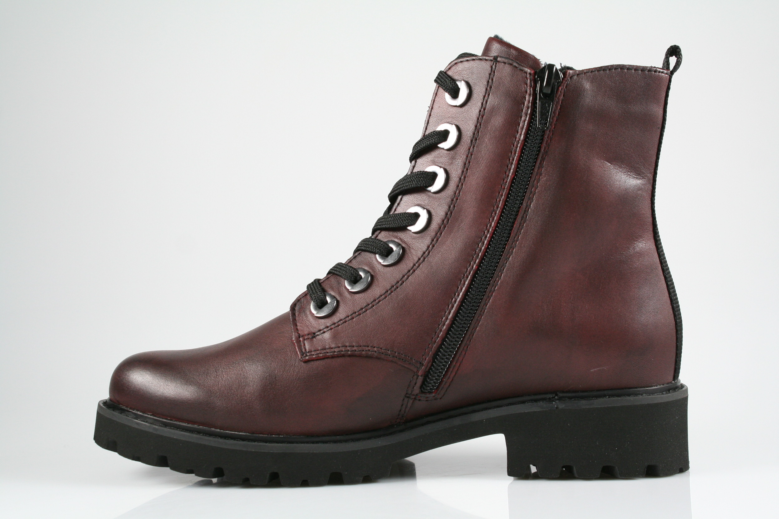 Typ: Boots; Farbe "rot"; Ausstattung:; - Obermaterial: Leder; - Warmfutter; - weiches Fußbett; - leichte Laufsohle; - gepolsterter Schaftrand; - Schnürsenkel und Reißverschluss zur Weitenregulierung;