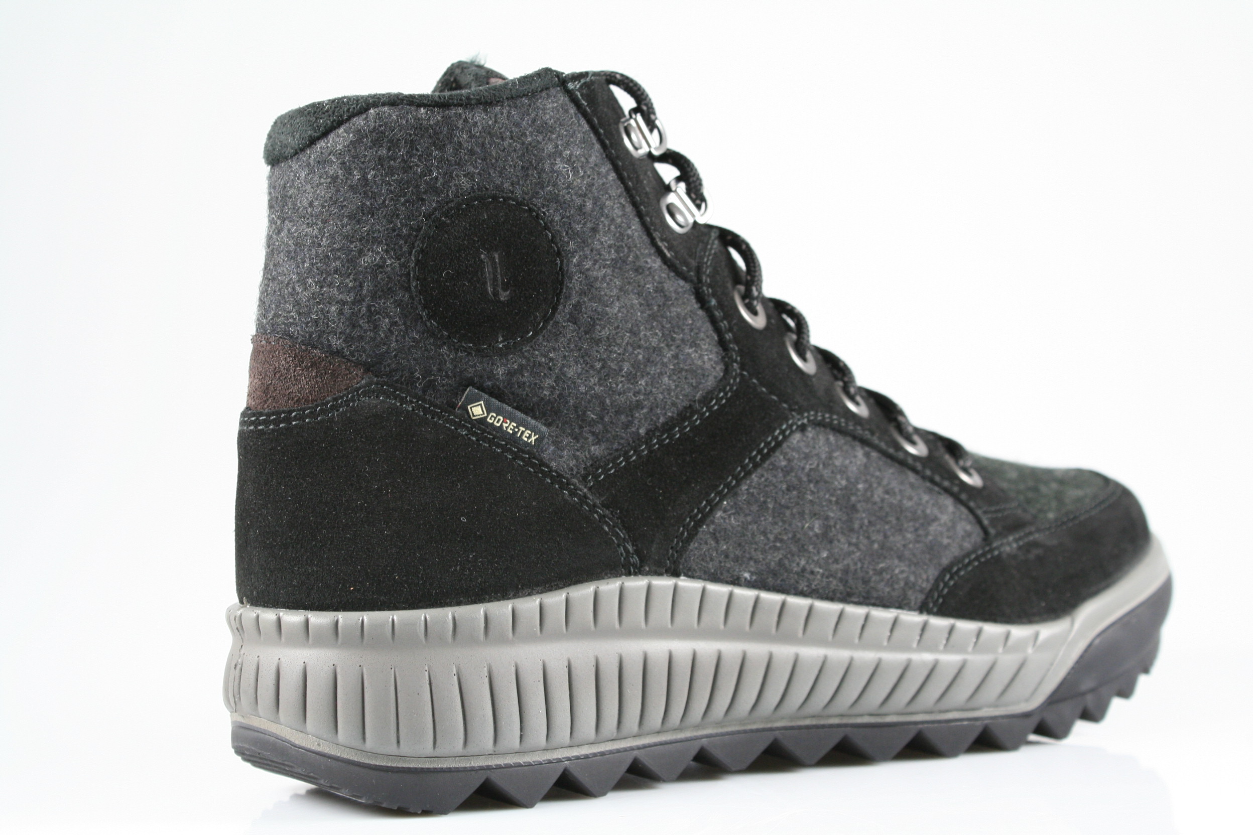 Typ: Boots; Farbe "tirano"; Ausstattung:; - Obermaterial: Velourleder. Loden; - herausnehmbares Fußbett; - flexible Laufsohle; - gepolsterter Schaftrand; - Schnürsenkel und Reißverschluss; - wasserfest durch "GoreTex"-Membrane
