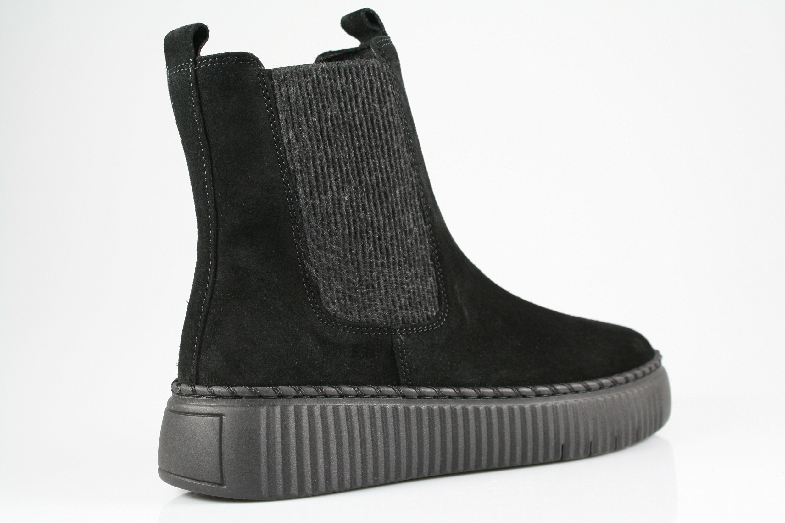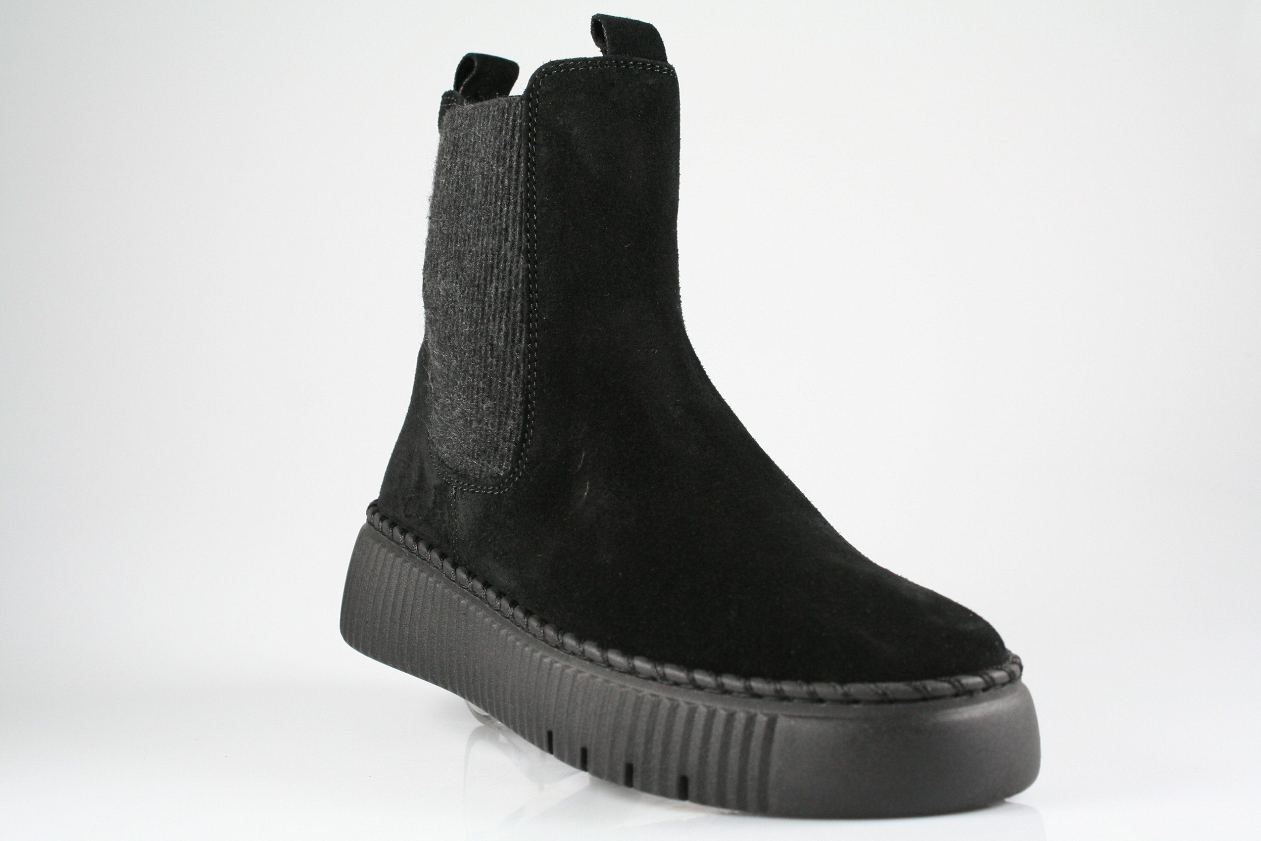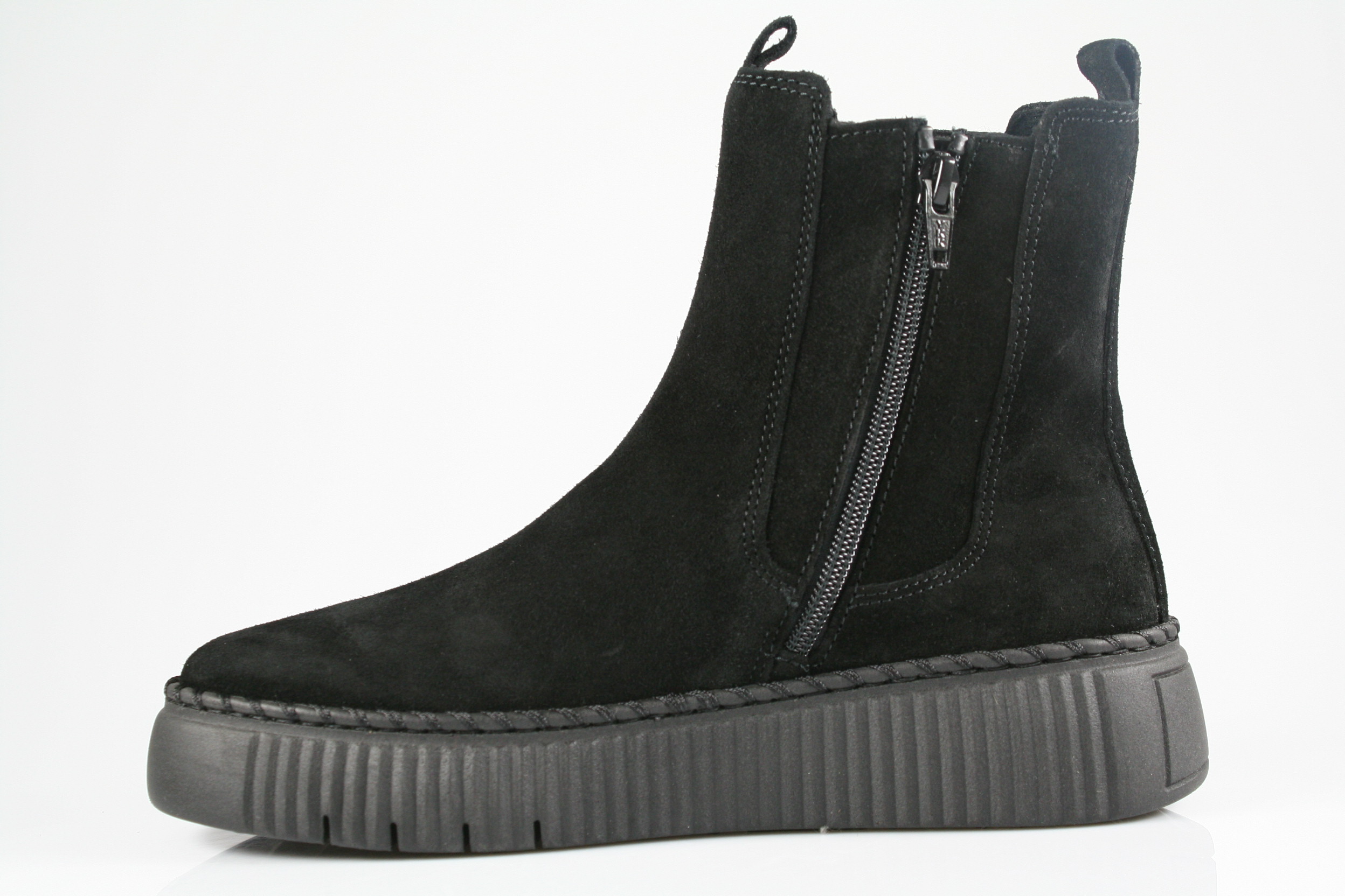 Typ: Boots; Farbe "schwarz"; Ausstattung:; - Obermaterial: Velourleder; - weiches Fußbett; - flexible Laufsohle; - gepolsterter Schaftrand; - Reißverschluss an der Innenseite;