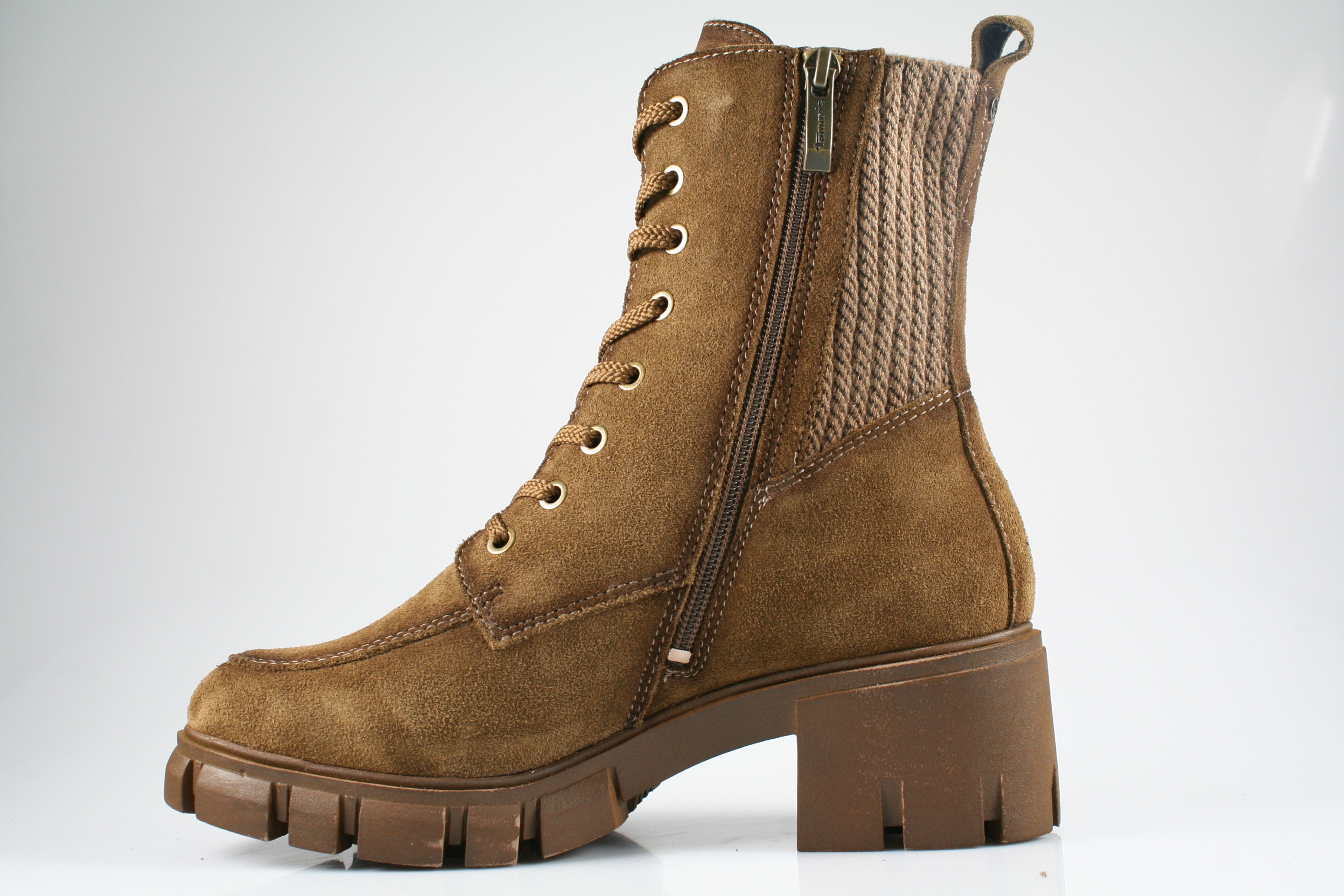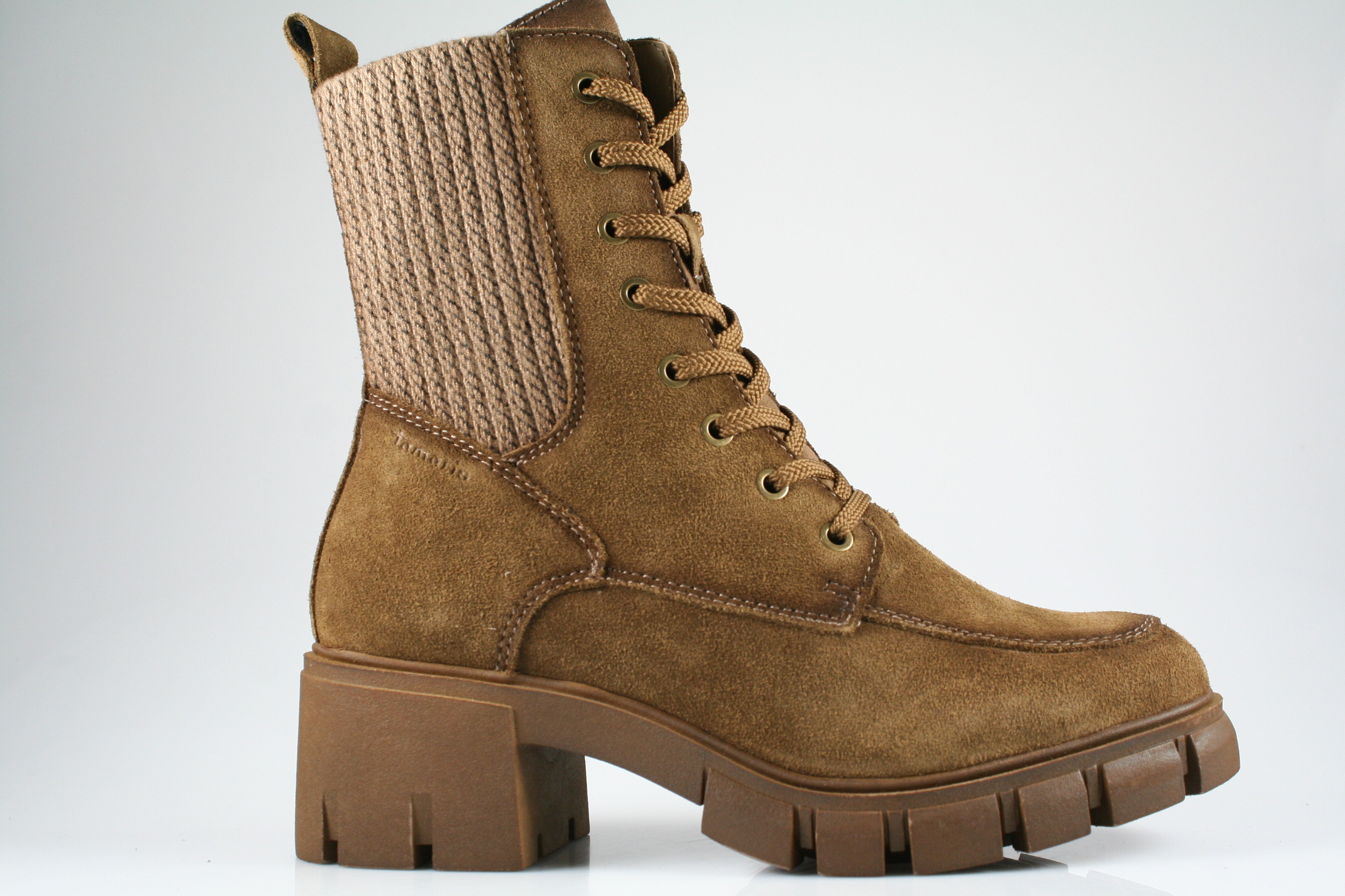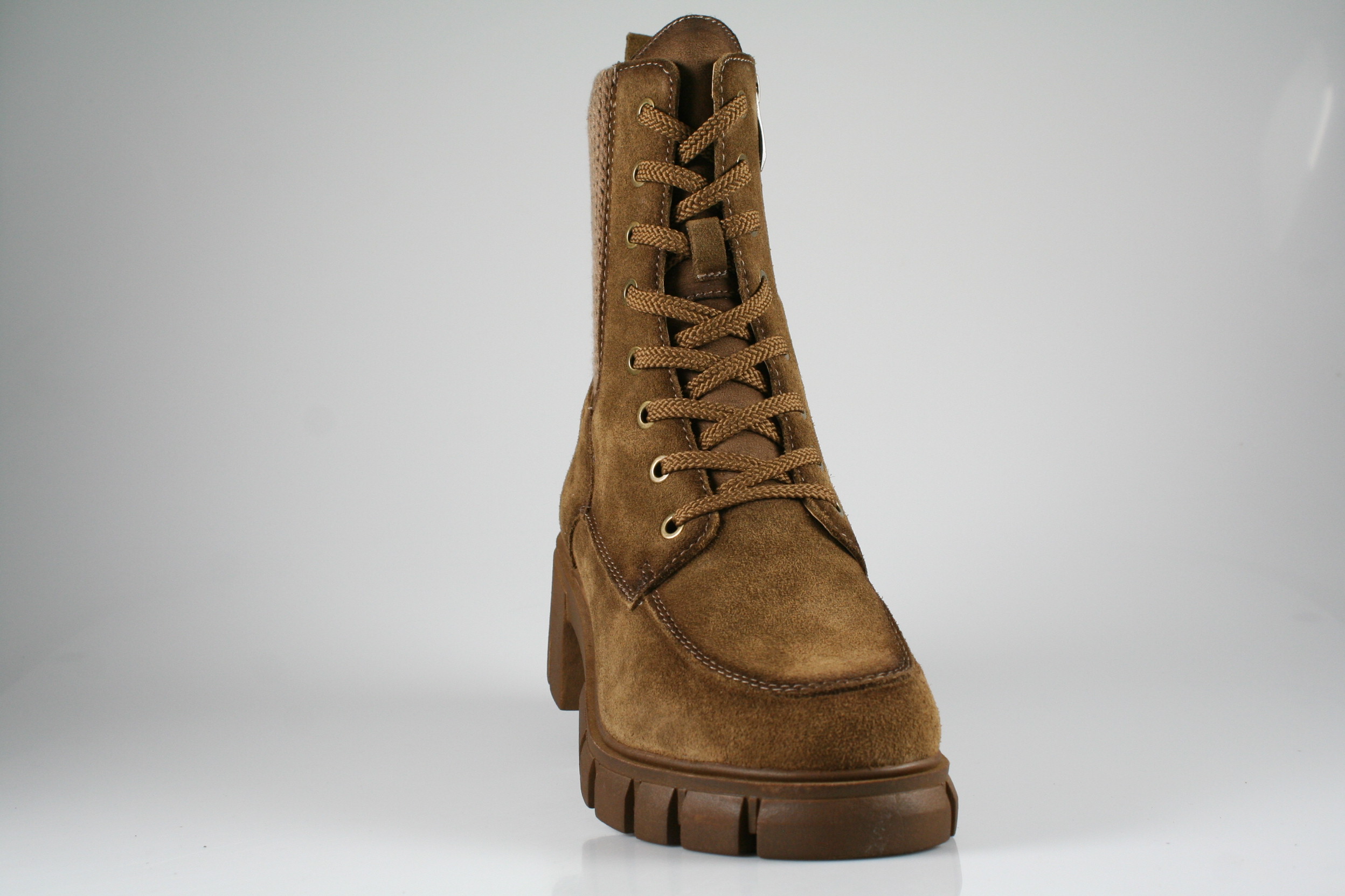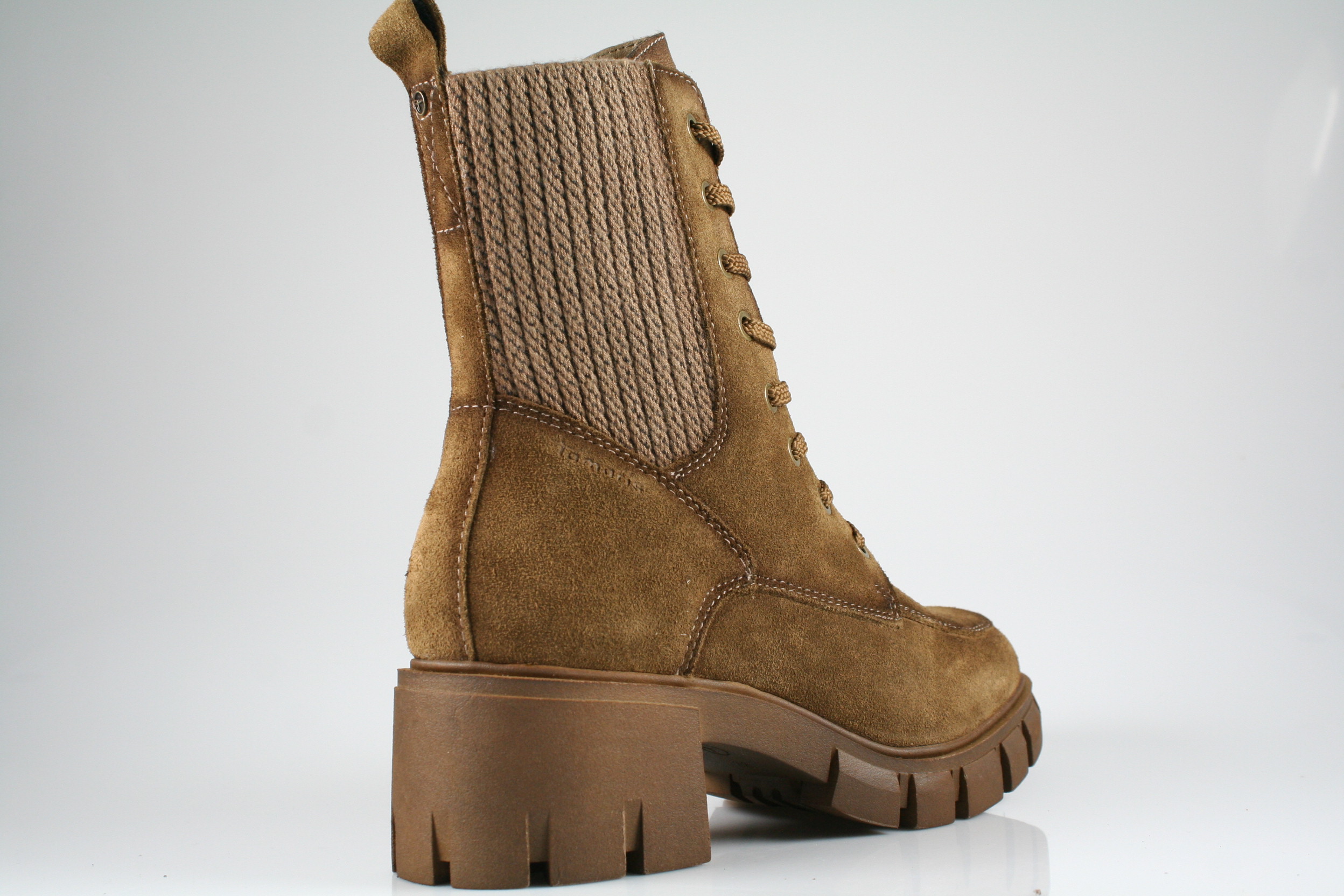 Typ: Boots; Farbe: "camel"; Ausstattung:; - Obermaterial: Velourleder/Strick; - atmungsaktives Futter; - weich gepolsterte Decksohle; - Gummisohle mit Profil; - Schnürung und Reißverschluss