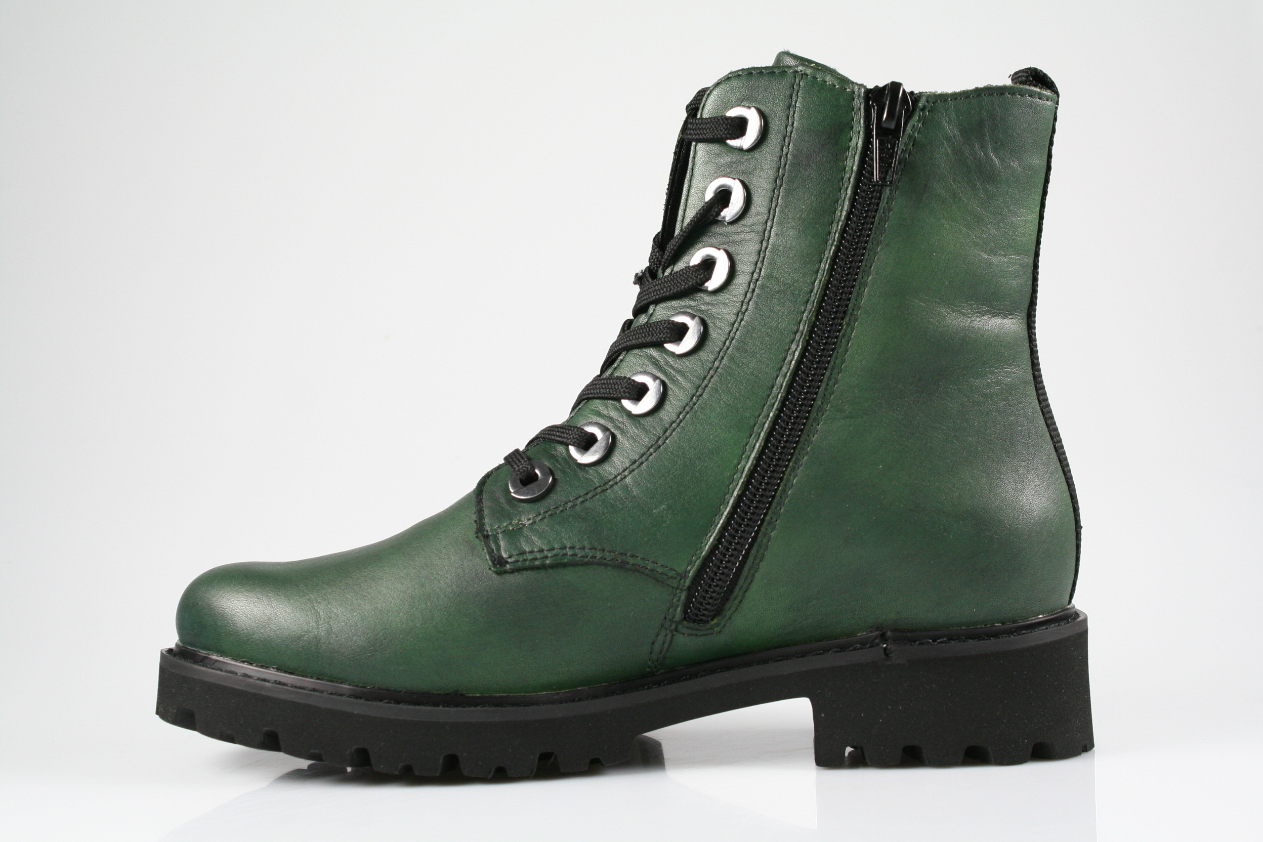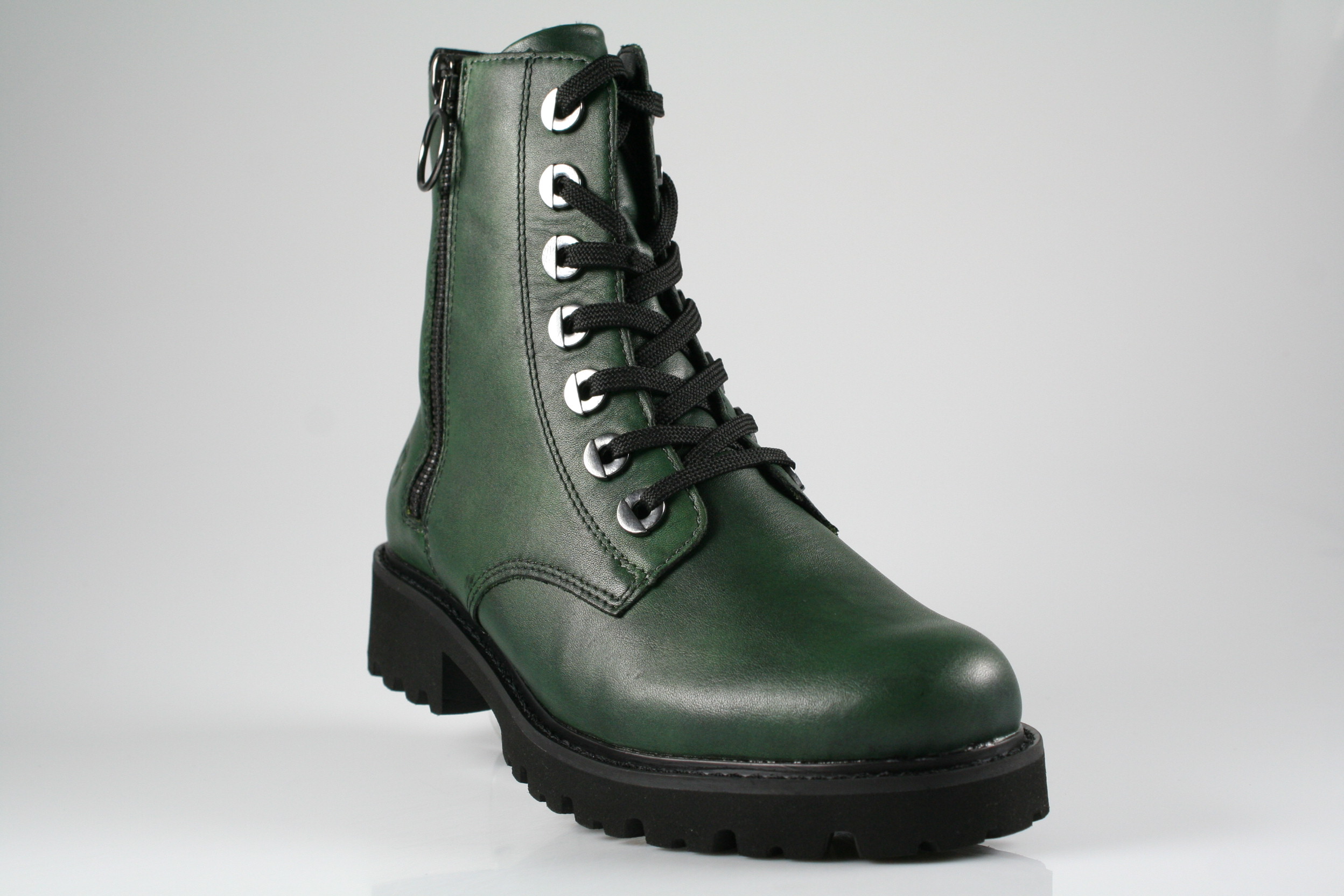 Typ: Boots; Farbe "grün"; Ausstattung:; - Obermaterial: Glattleder; - Warmfutter; - herausnehmbares Fußbett; - leichte Laufsohle; - gepolsterter Schaftrand; - Schnürsenkel und Reißverschluss