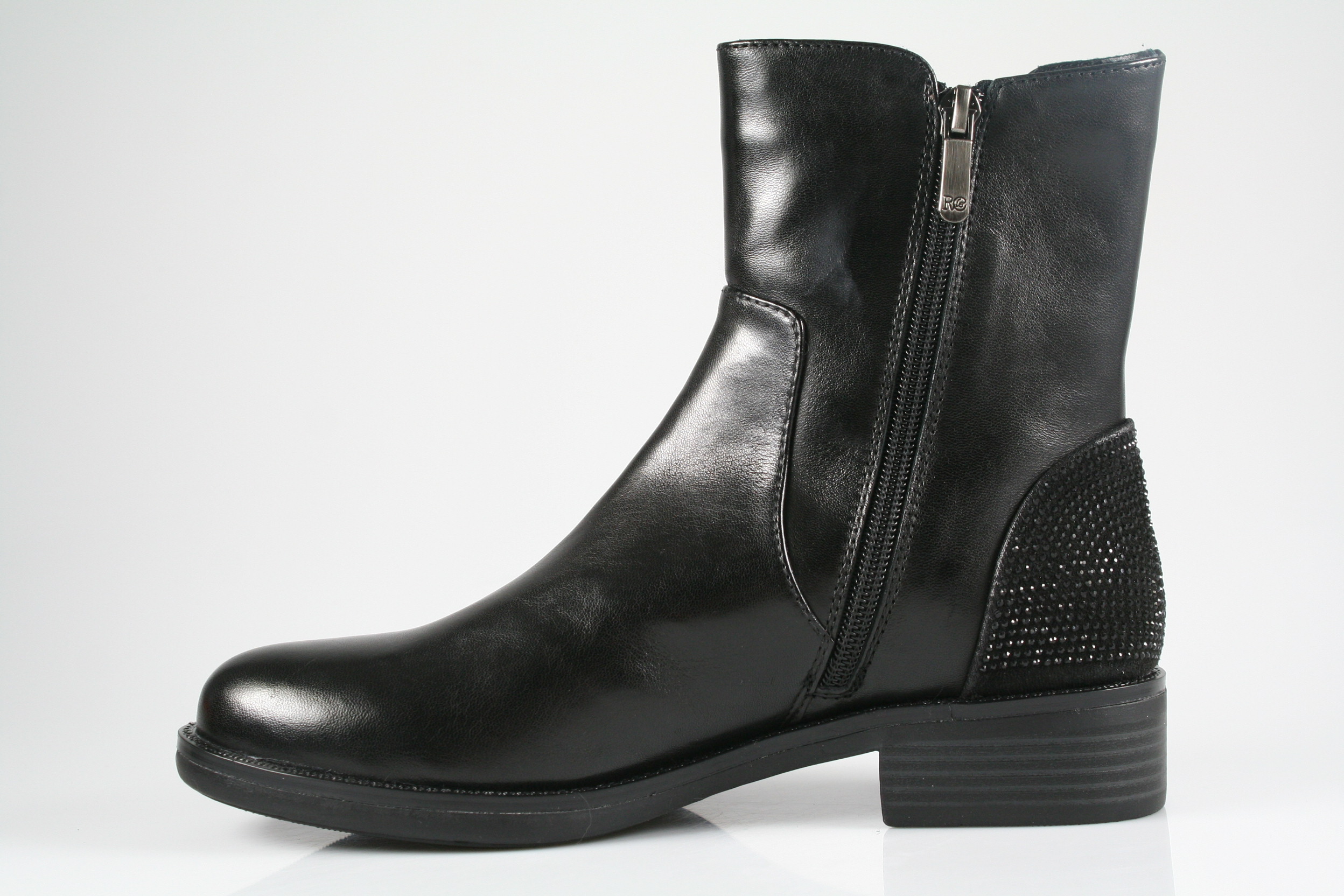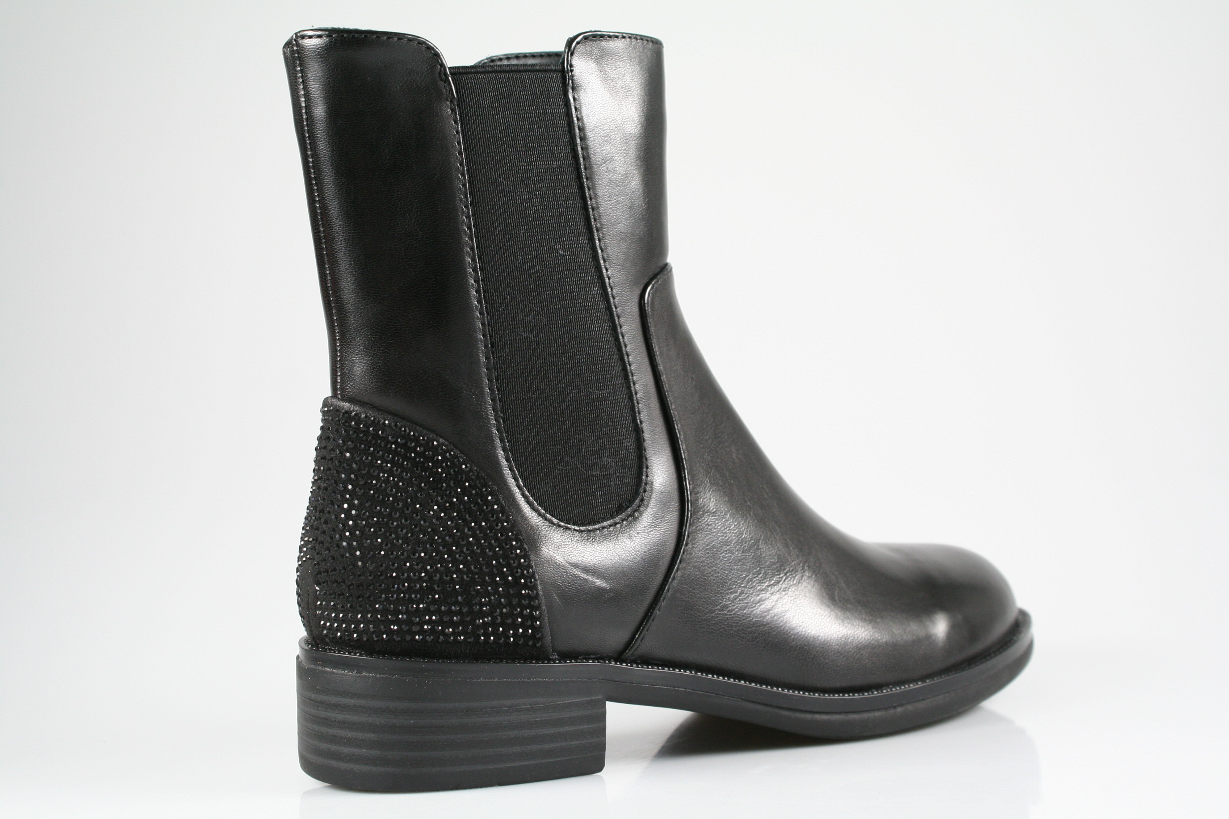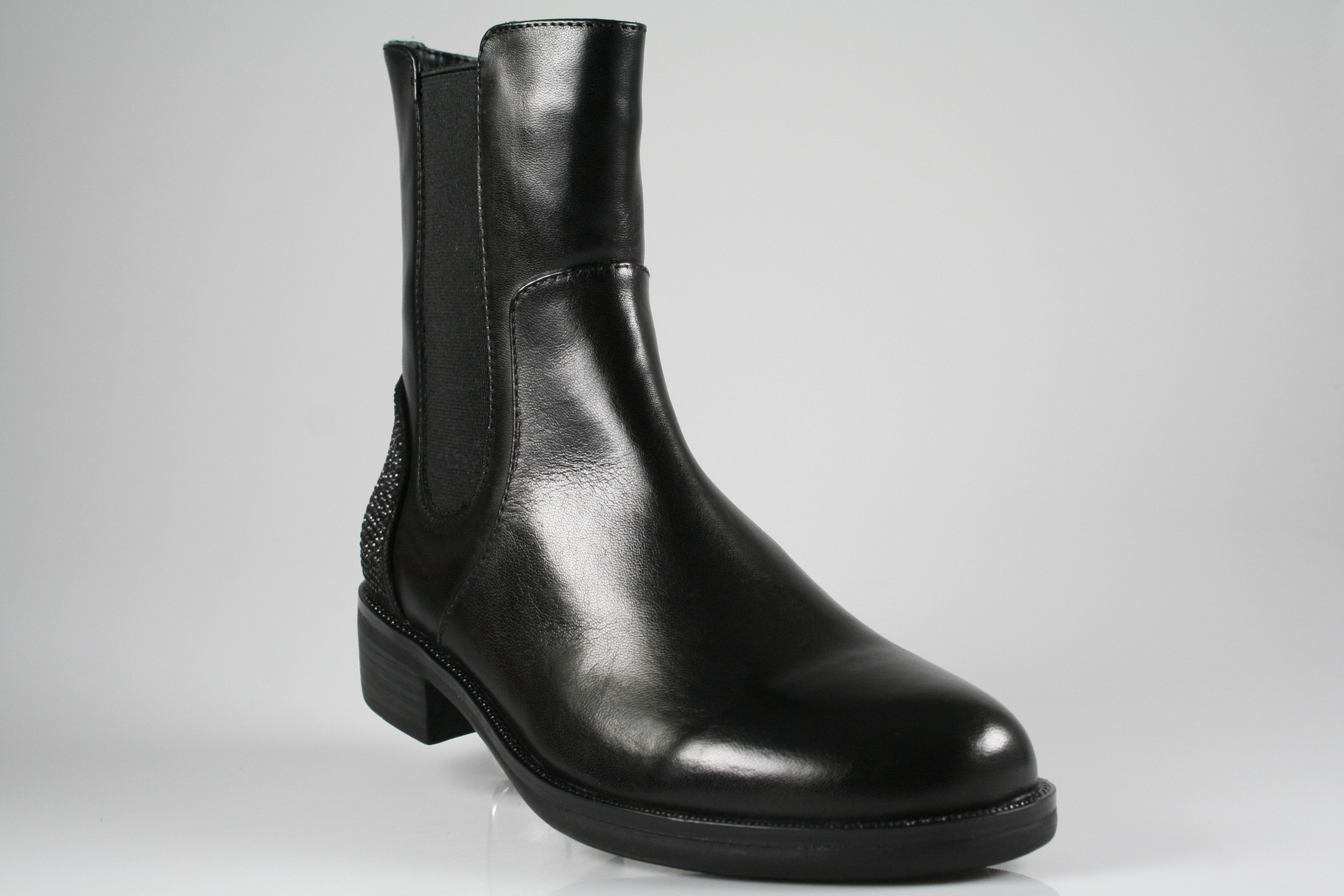 Typ: Stiefelette; Farbe: "black"; Ausstattung:; - Obermaterial: Glattleder; - Warmfutter; - weiches Fußbett; - leichte Laufsohle; - 30mm Blockabsatz; - elastische Einsätze am Schaftrand; - Reißverschluss an der Innenseite