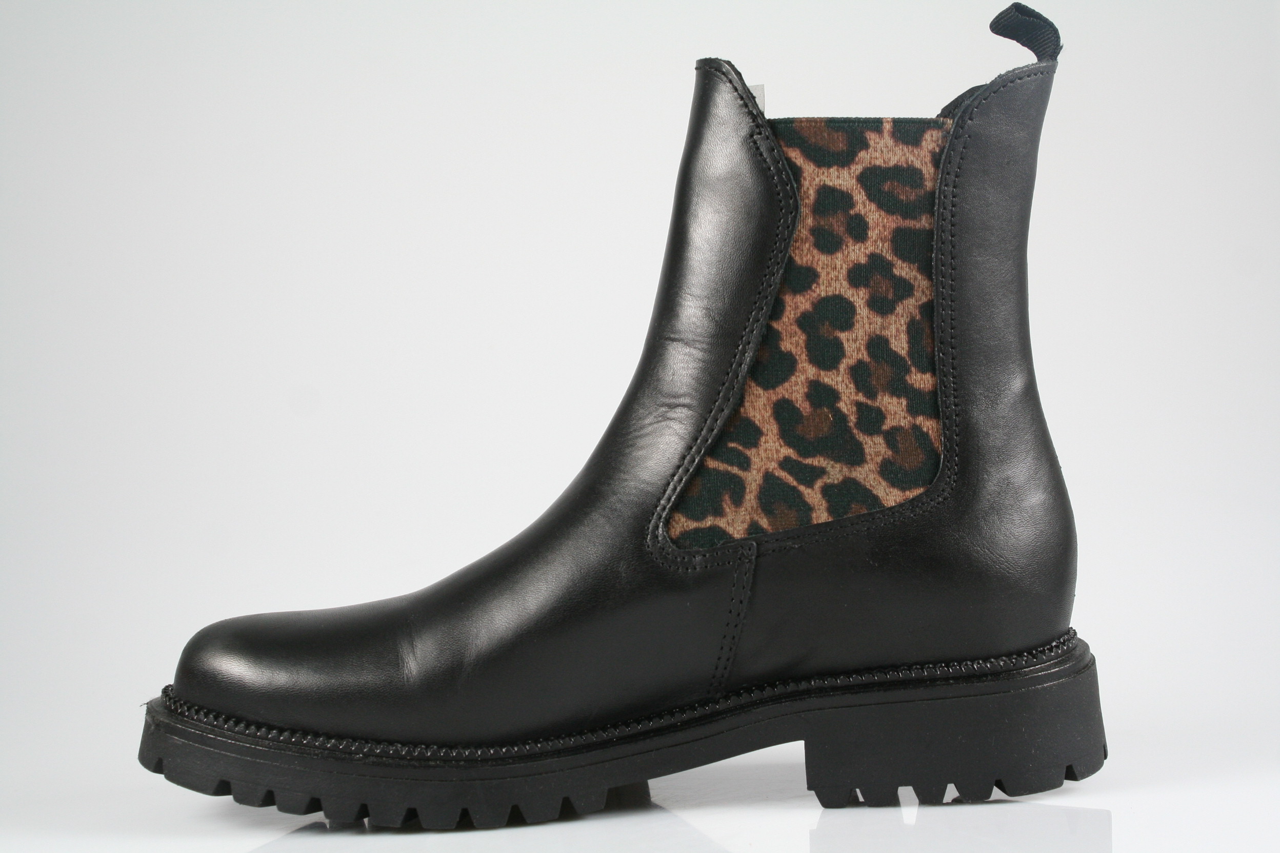 Typ: Boots; Farbe "black/leopard"; Ausstattung:; - Obermaterial: Glattleder; - Warmfutter; - weiches Fußbett; - flexible Laufsohle; - gepolsterter Schaftrand; - dehnbarer Einschlupf
