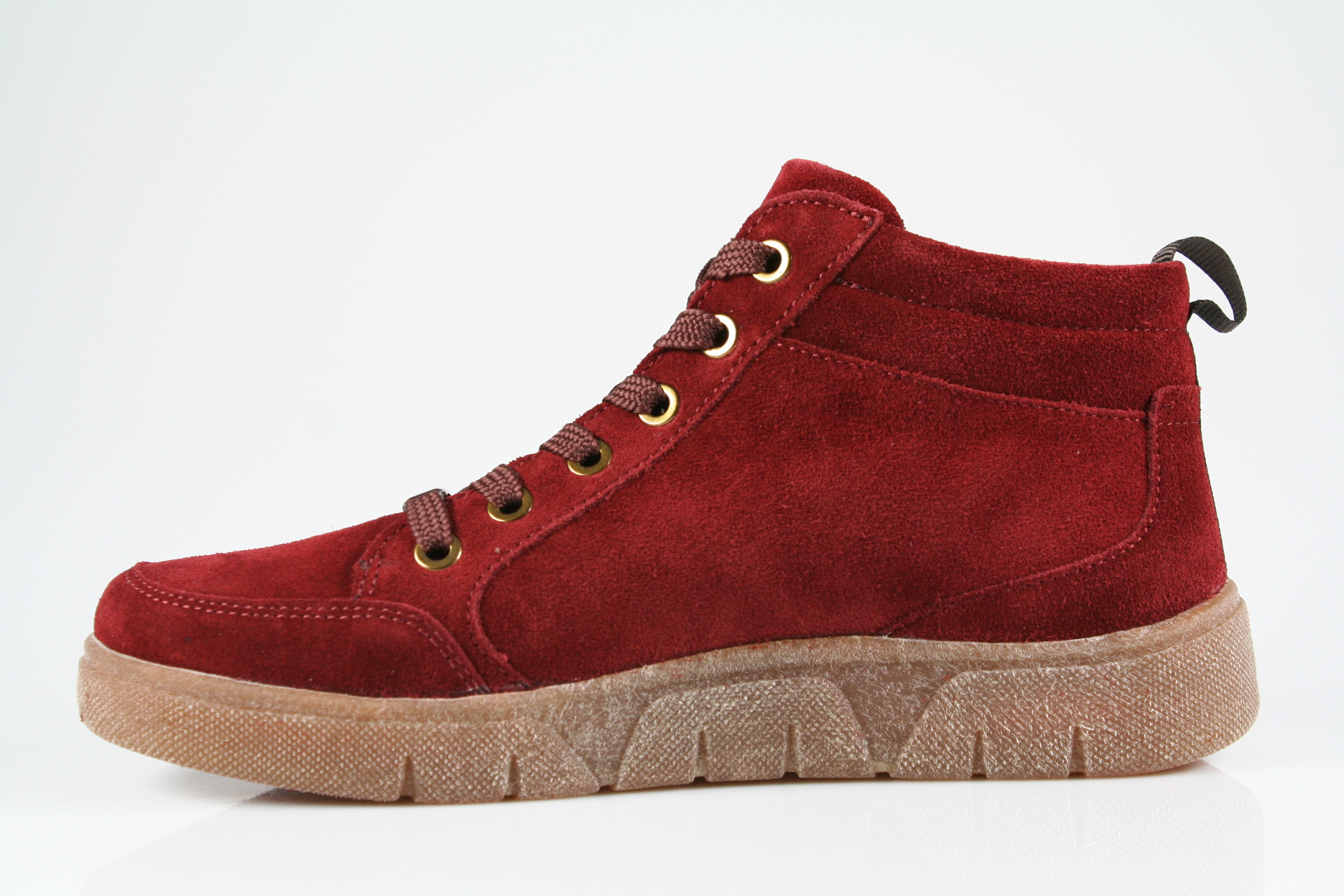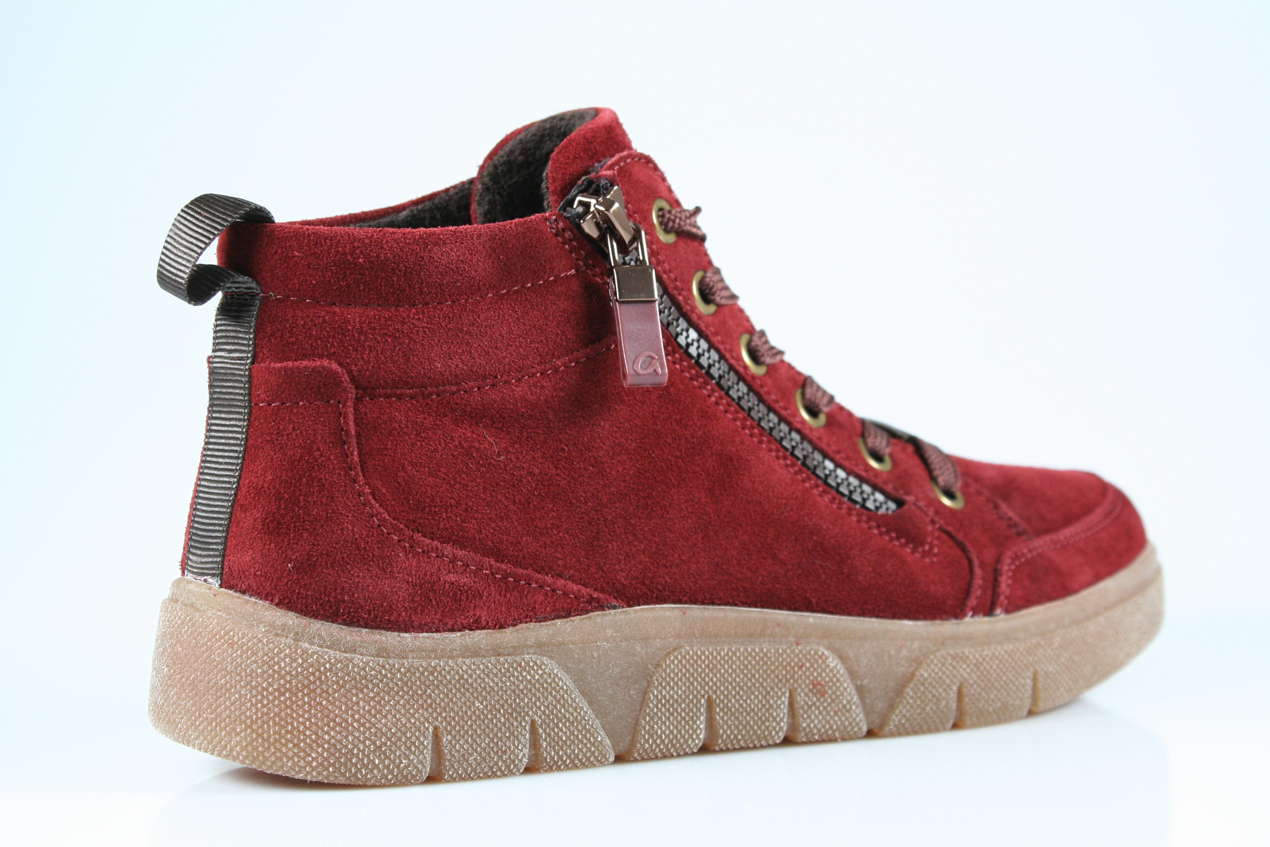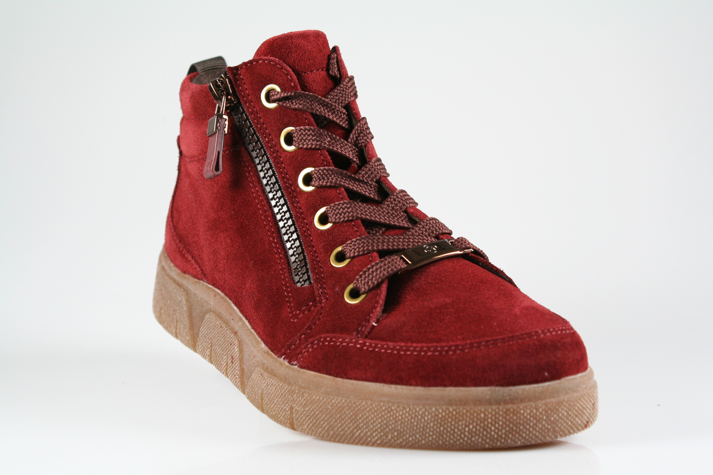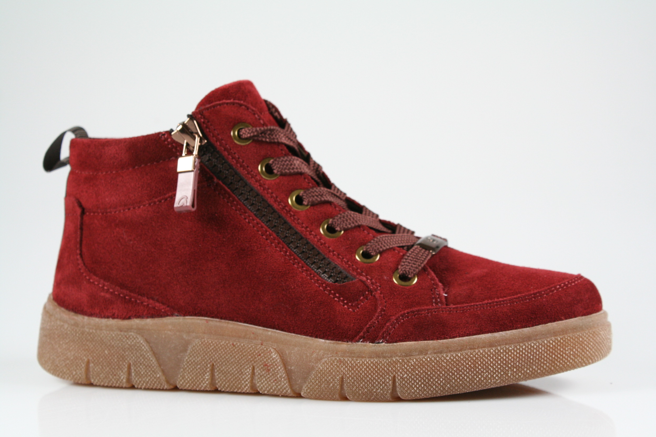 Typ: Boots; Farbe "burgundy"; Ausstattung:; - Obermaterial: Velourleder; - herausnhembares Fußbett; - flexible Laufsohle; - gepolsterter Schaftrand; - Schnürsenkel und Reißverschluss;
