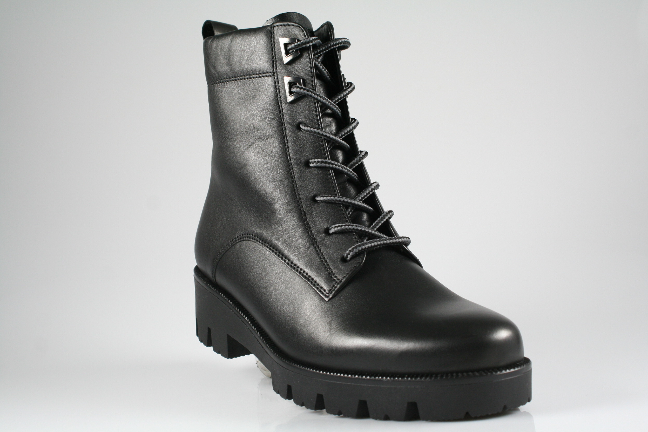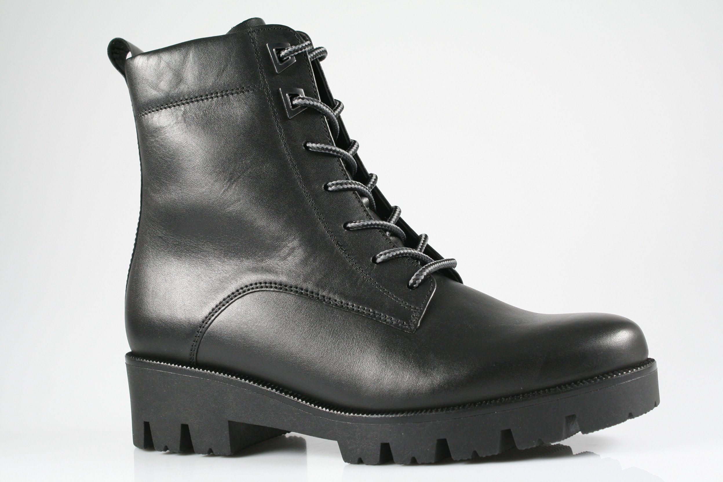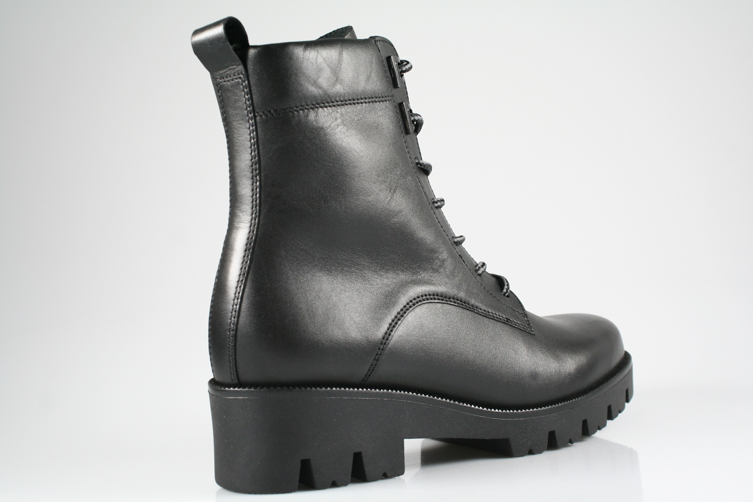 Typ: Boots; Farbe "schwarz"; Ausstattung:; - Obermaterial: Glattleder; - Warmfutter; - herausnehmbares Fußbett; - leichte Laufsohle; - gepolsterter Schaftrand; - Schnürsenkel und Reißverschluss