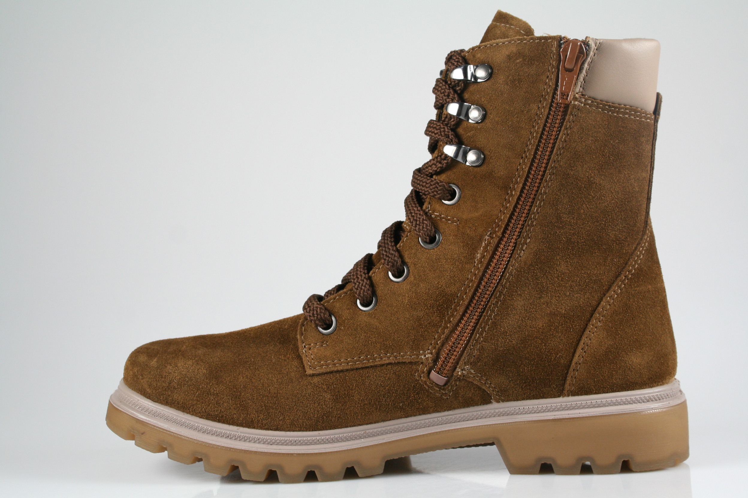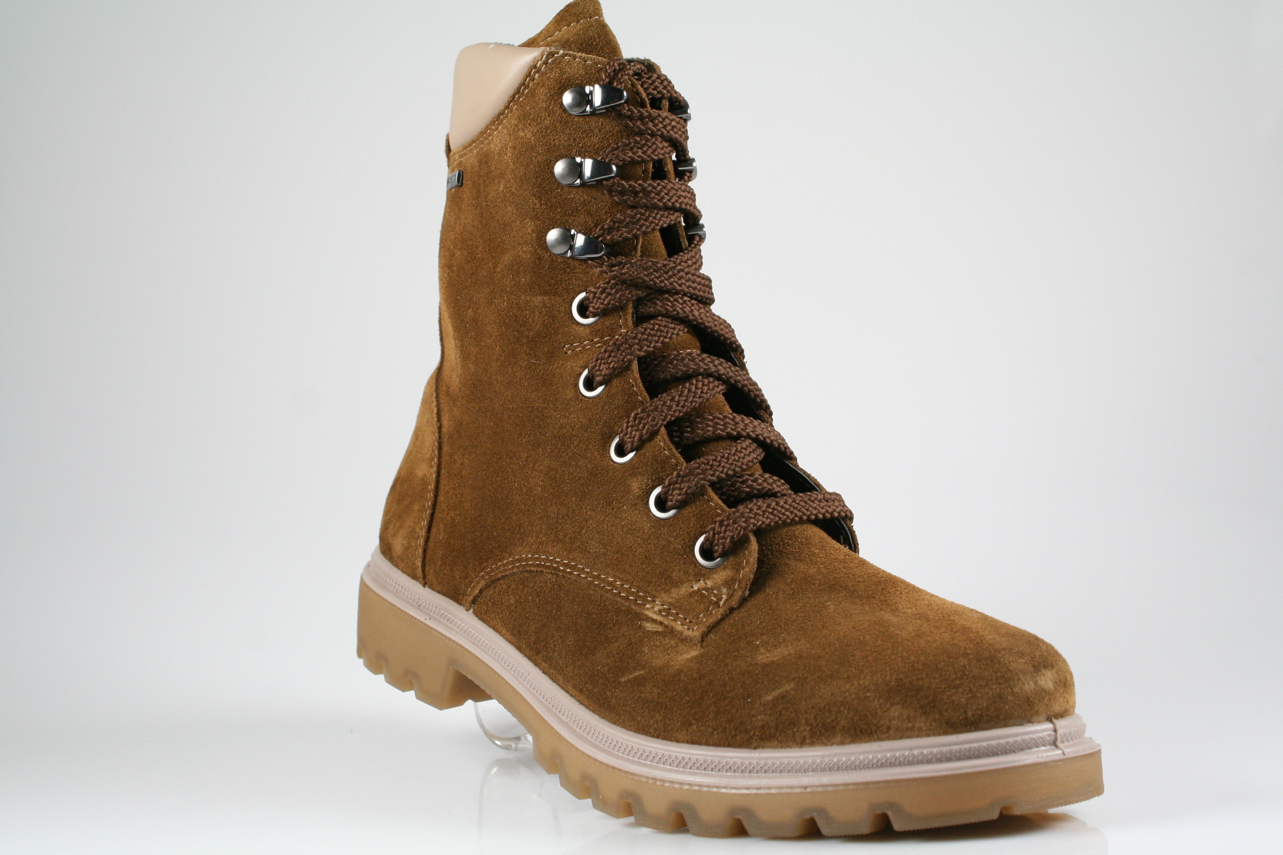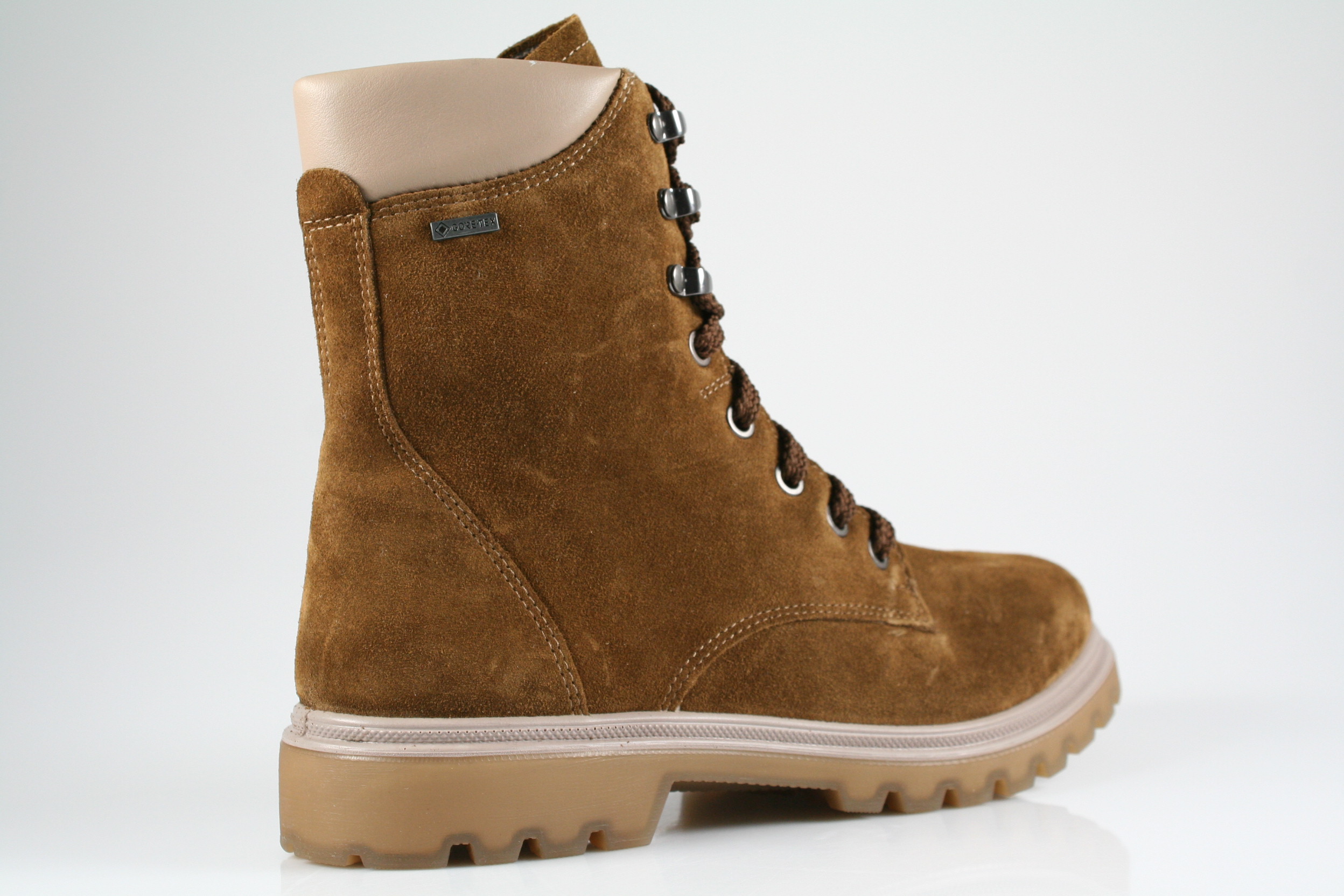 Typ: Boots; Farbe "saddle"; Ausstattung:; - Obermaterial: Velourleder; - Warmfutter; - herausnehmbares Fußbett; - flexible Laufsohle; - gepolsterter Schaftrand; - Schnürsenkel und Reißverschluss zur Weitenregulierung; - "GoreTex"-Membrane