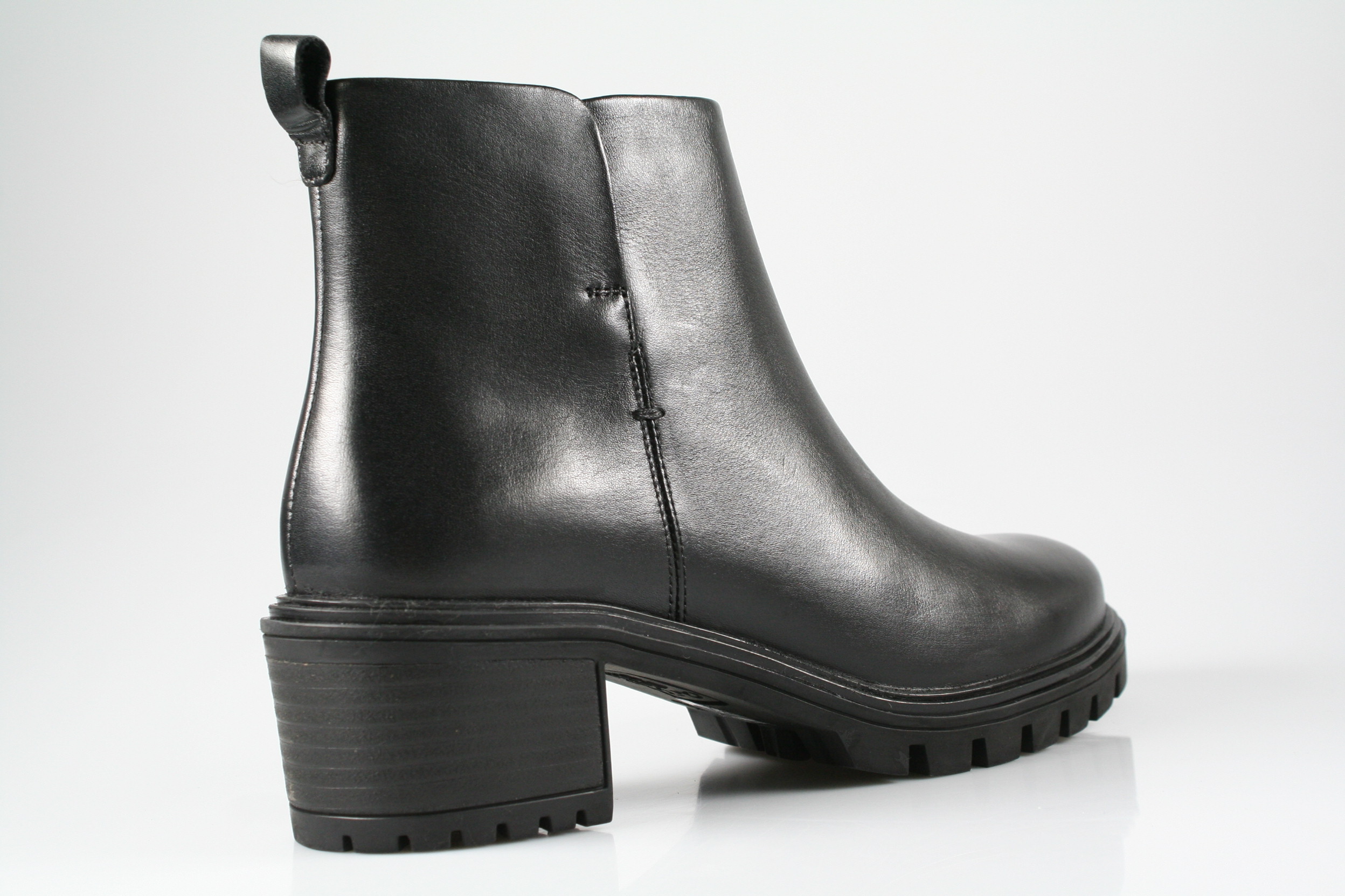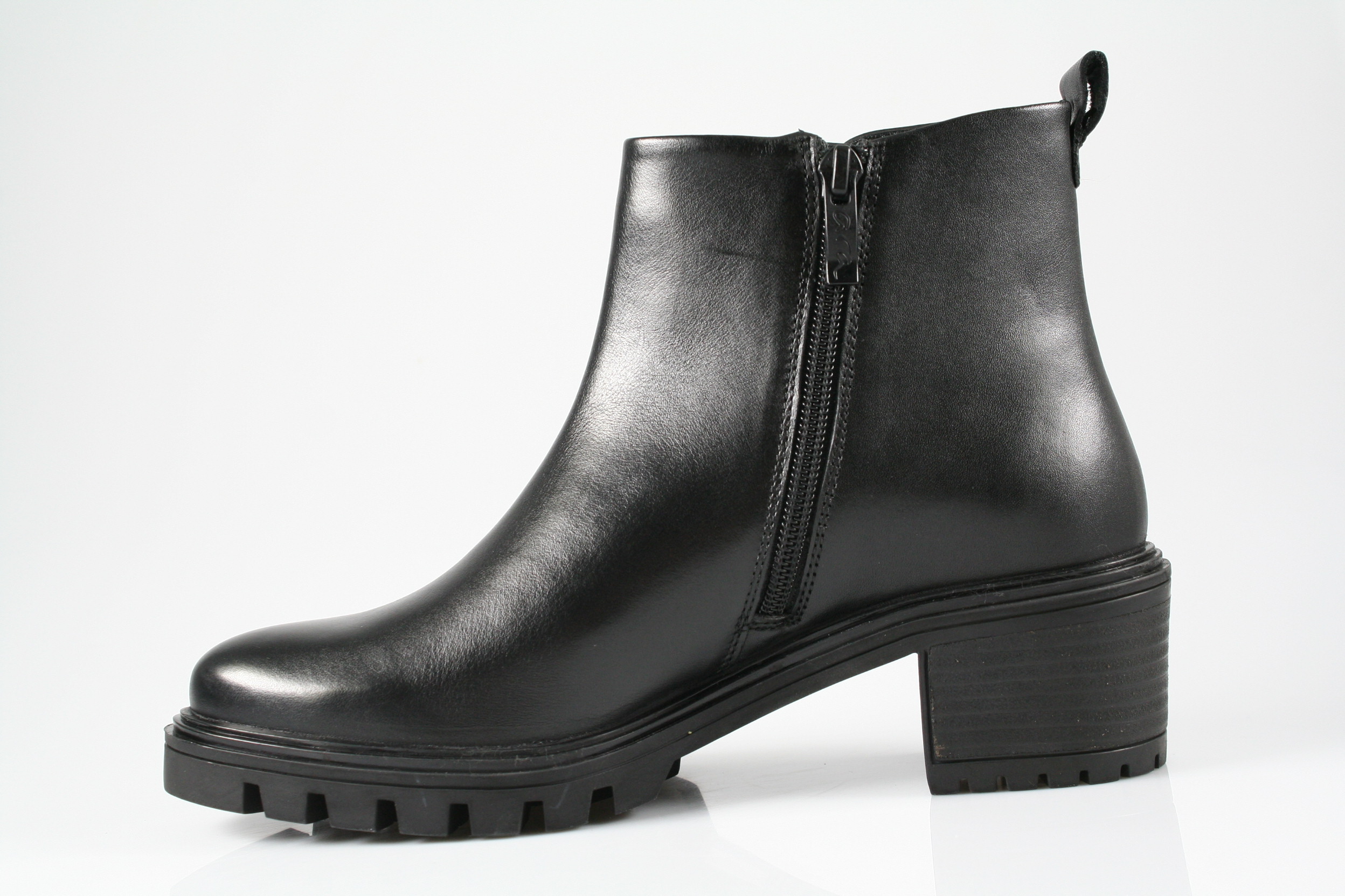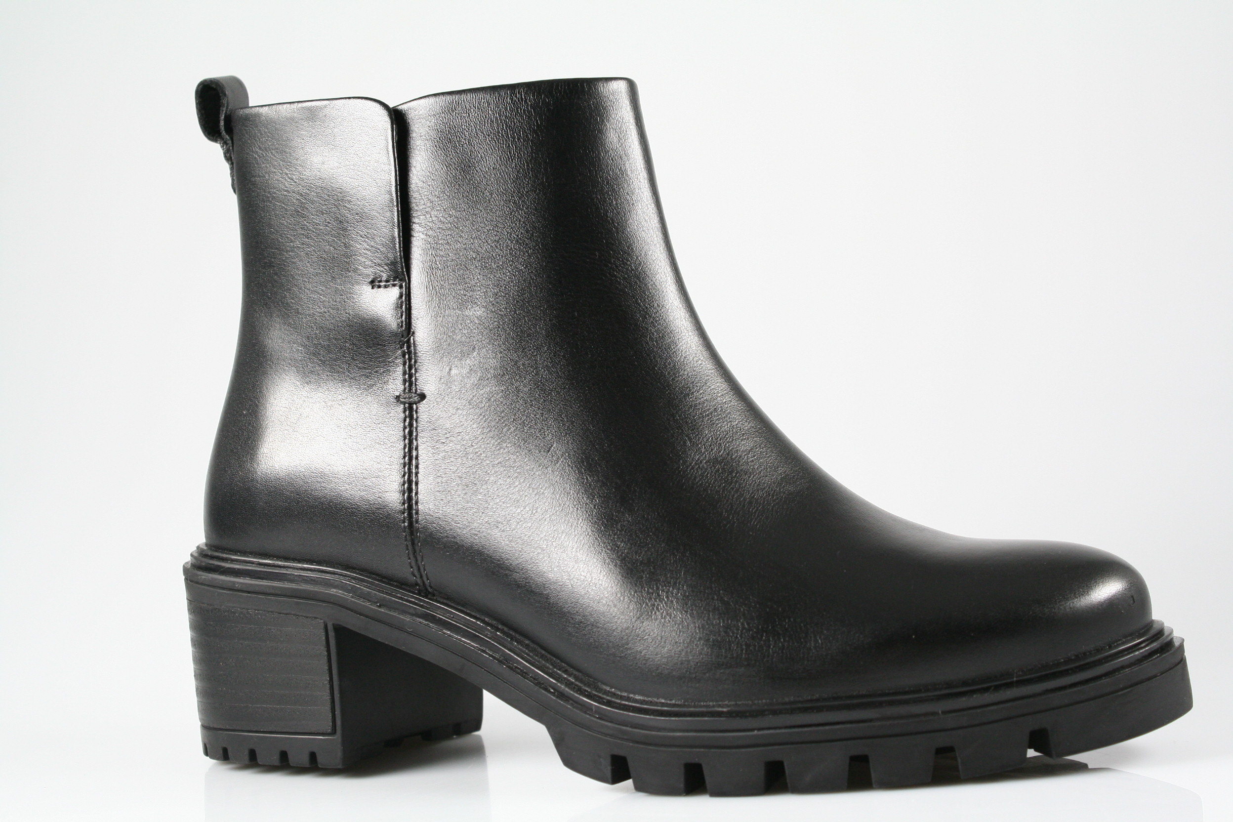 Typ: Stiefelette; Farbe "schwarz"; Ausstattung:; - Obermaterial: Glattleder; - Warmfutter; - herausnehmbares Fußbett; - flexible Laufsohle; - 40mm Blockabsatz; - gepolsterter Schaftrand; - Reißverschluss an der Innenseite;