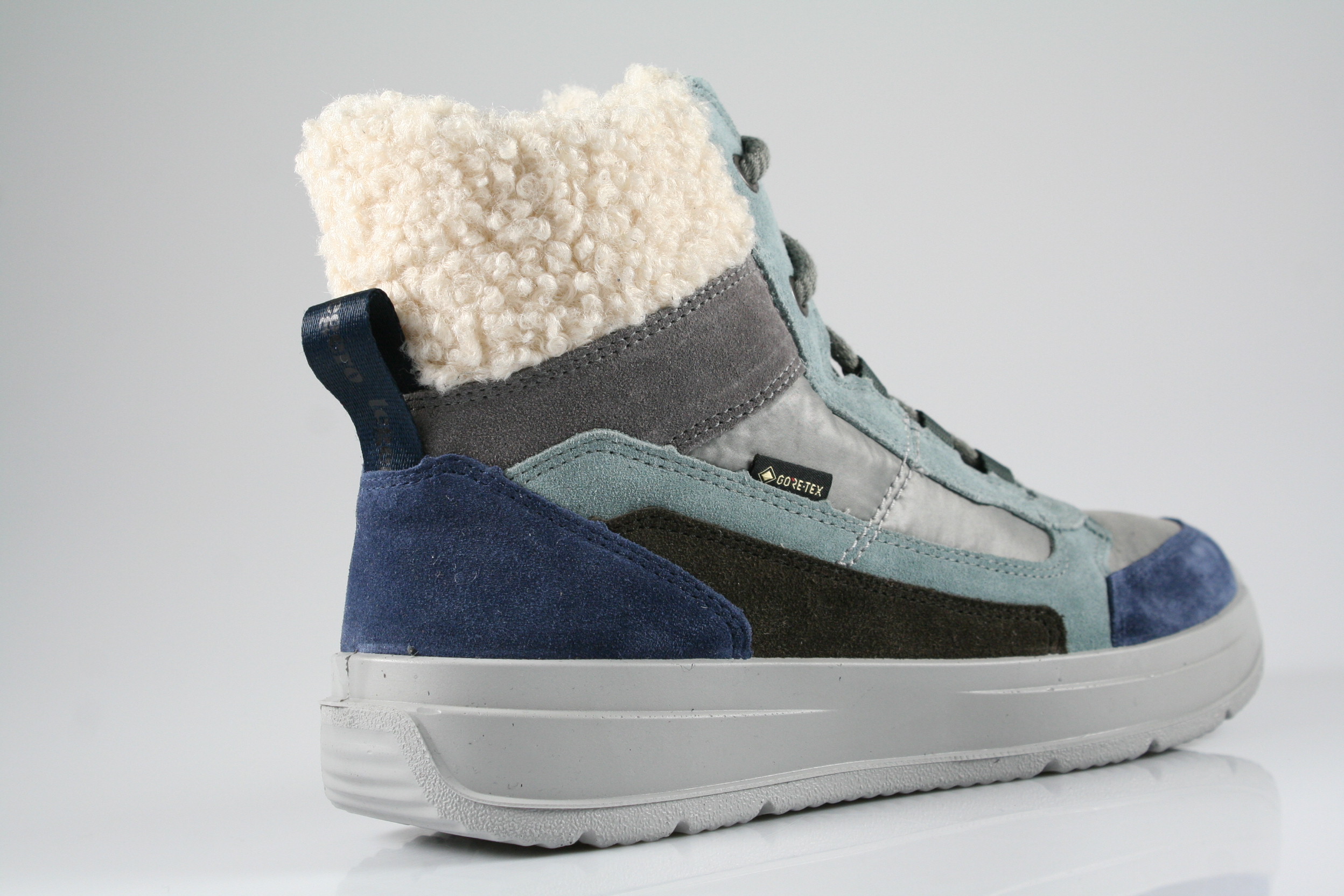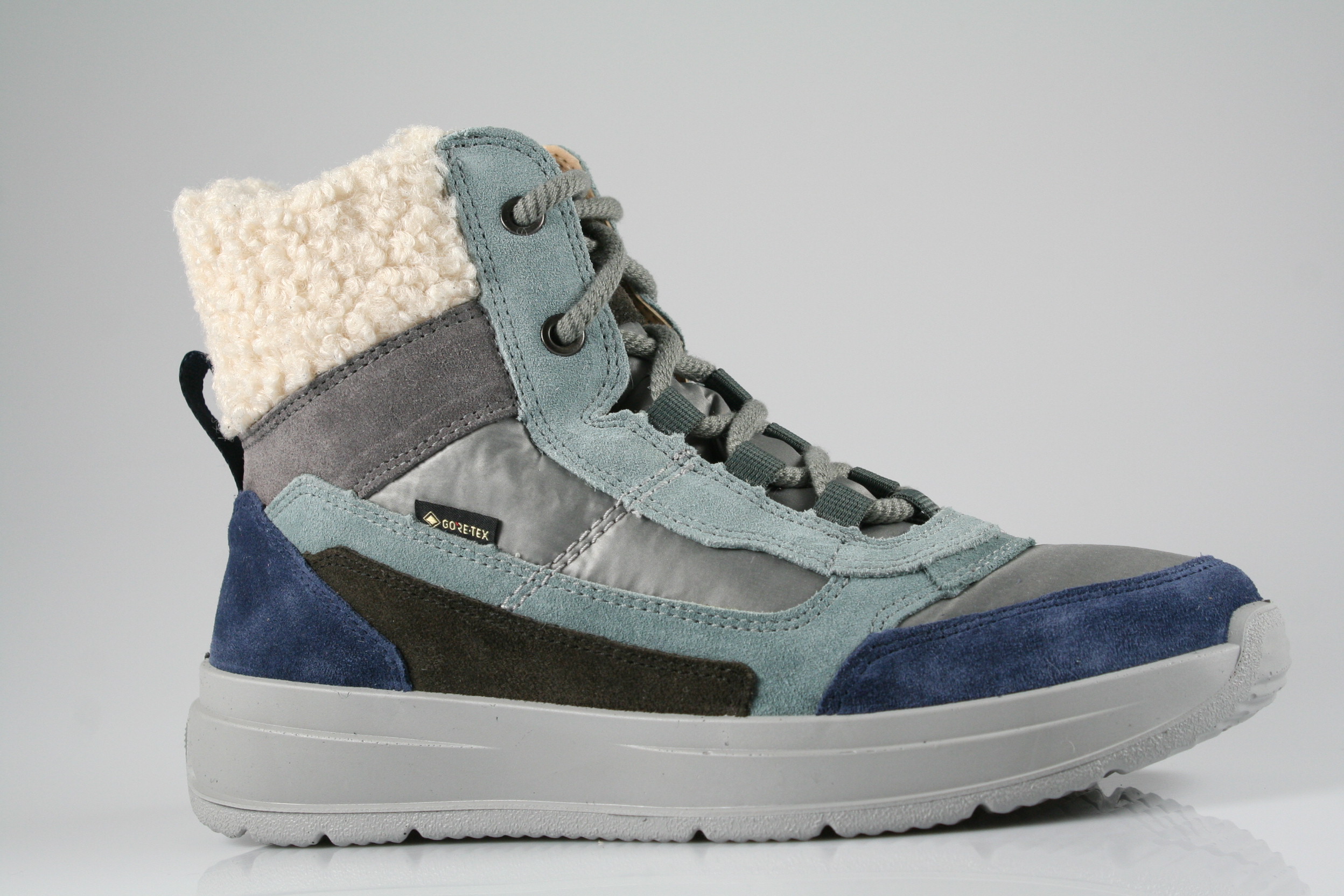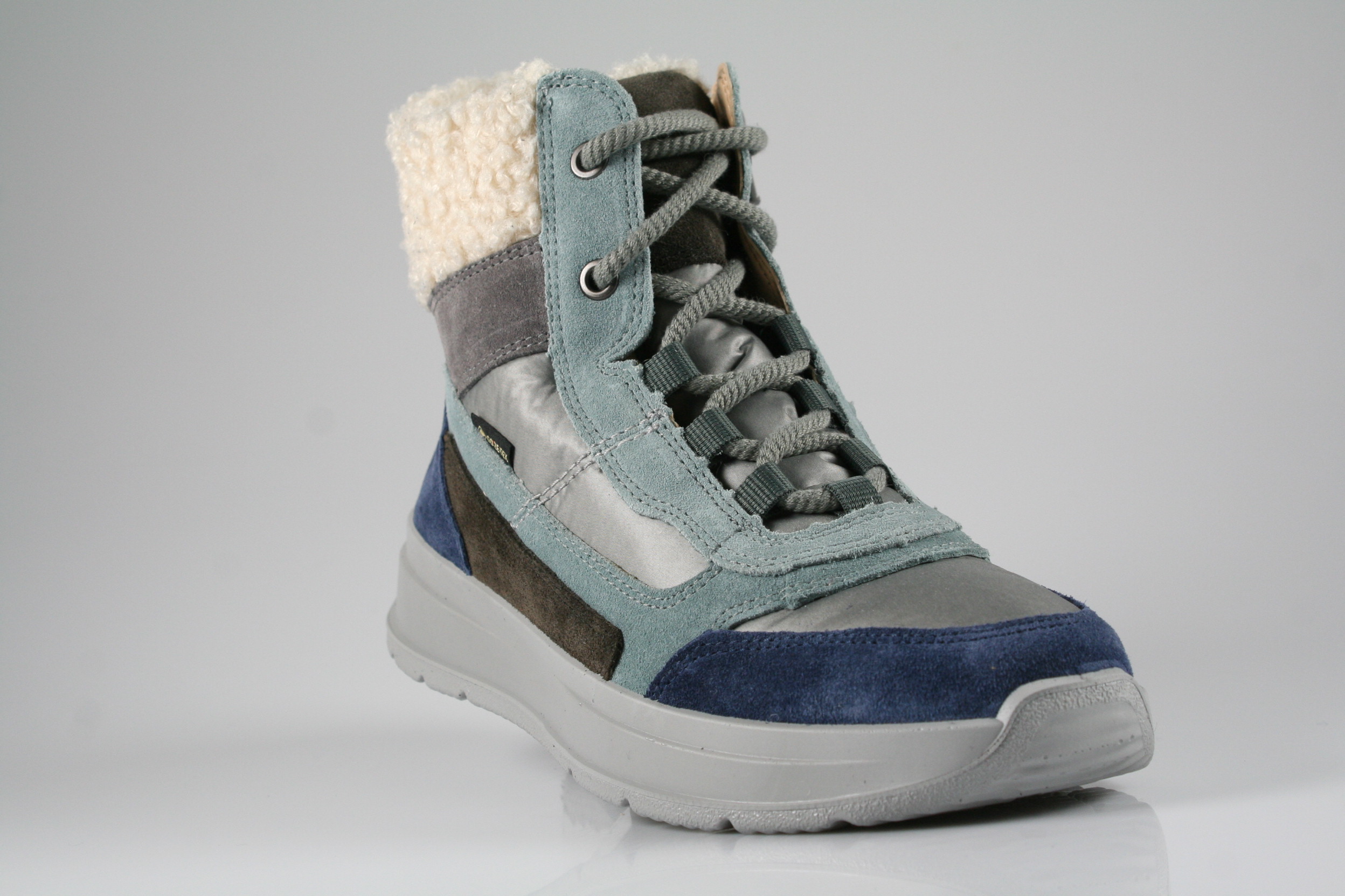 Typ: Boots; Farbe "multicolour blue"; Ausstattung:; - Obermaterial: Velourleder, Synthetik; - Warmfutter; - weiches Fußbett; - flexible Laufsohle; - gepolsterter Schaftrand; - Schnürsenkel und Reißverschluss; - wasserfest durch "GoreTex"-Membrane