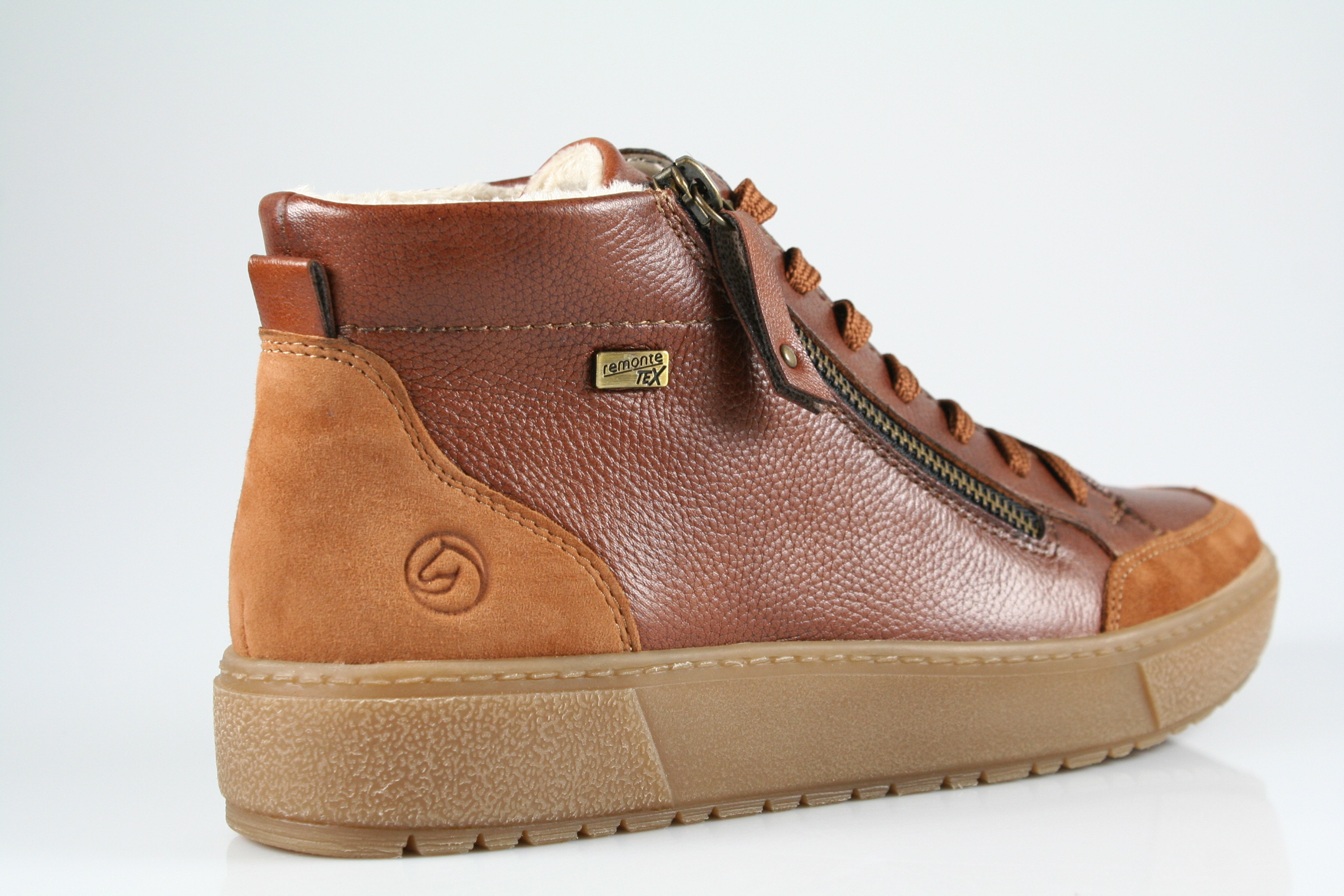 Typ: Boots; Farbe: "noccia/amaretto/cuoio"; Ausstattung:; - Obermaterial: Leder kombiniert; - Warmfutter; - herausnehmbares Fußbett; - flexible Laufsohle; - gepolsterter Schaftrand; - Schnürsenkel und Reißverschluss zur Weitenregulierung; - "RemonteTex"-Membrane