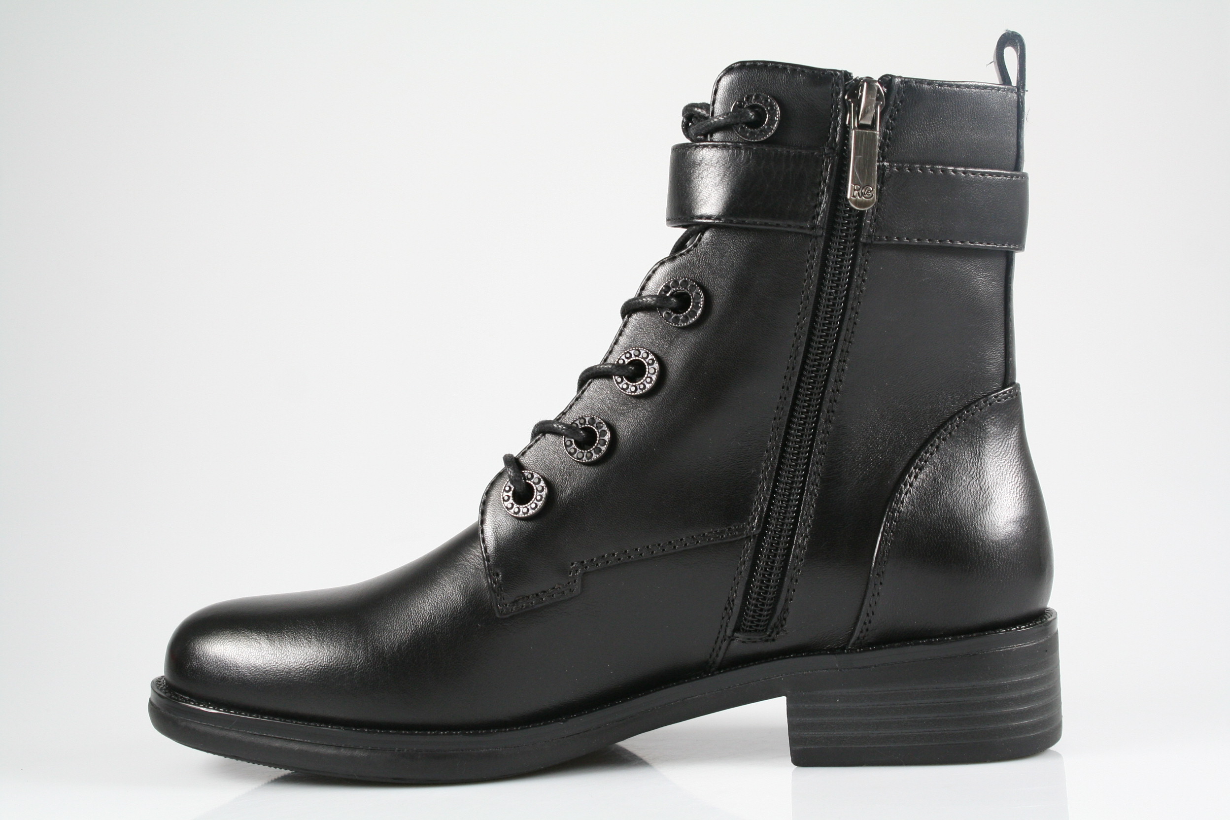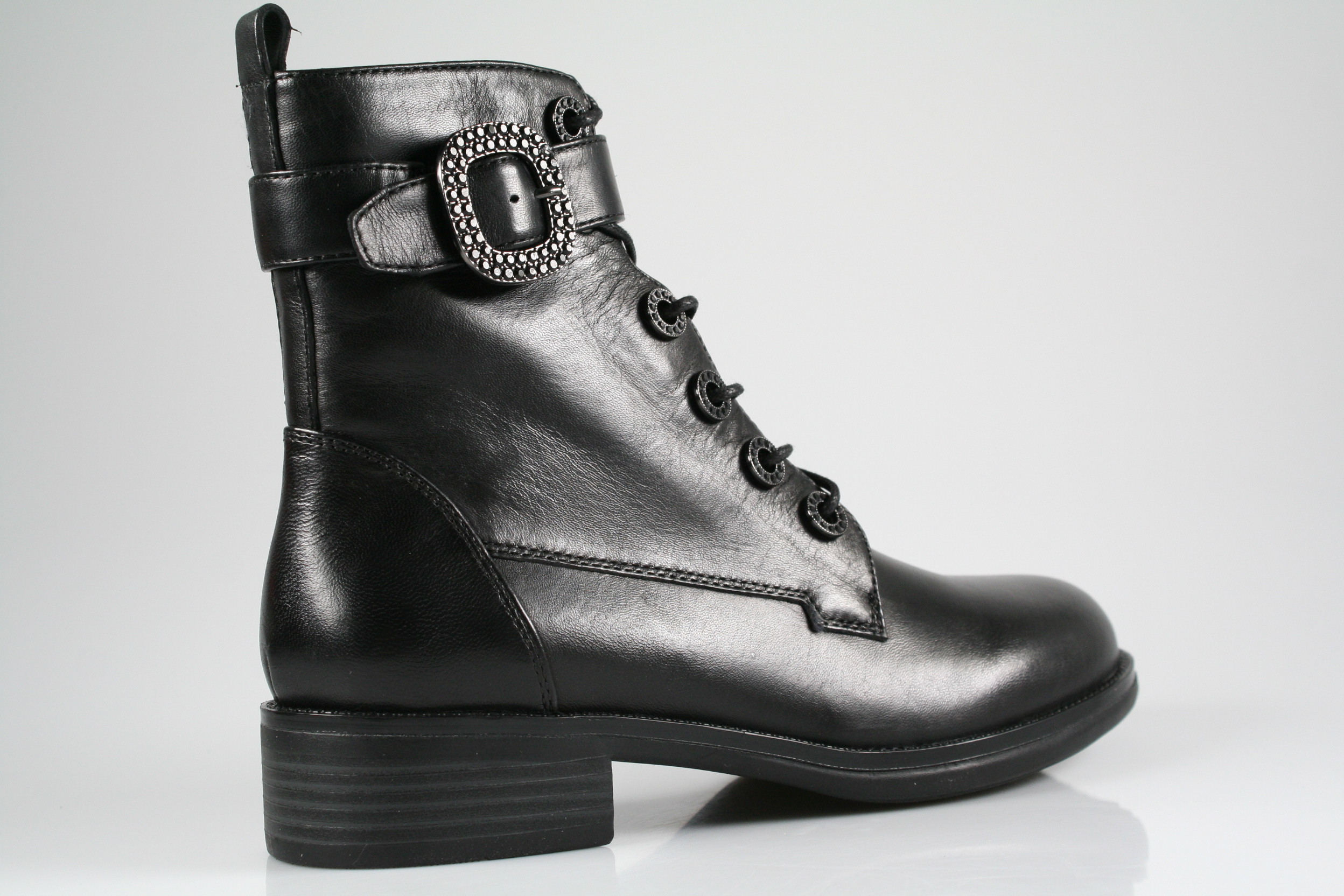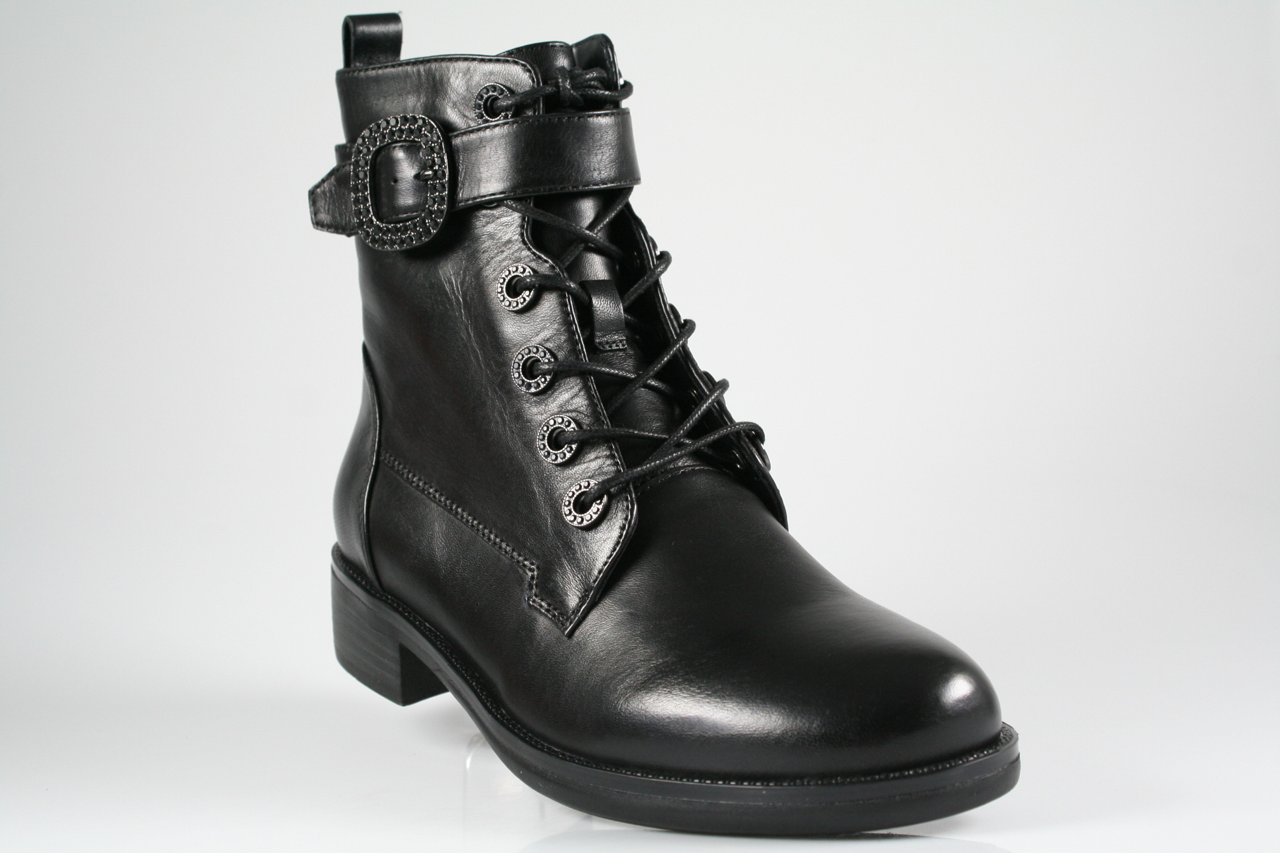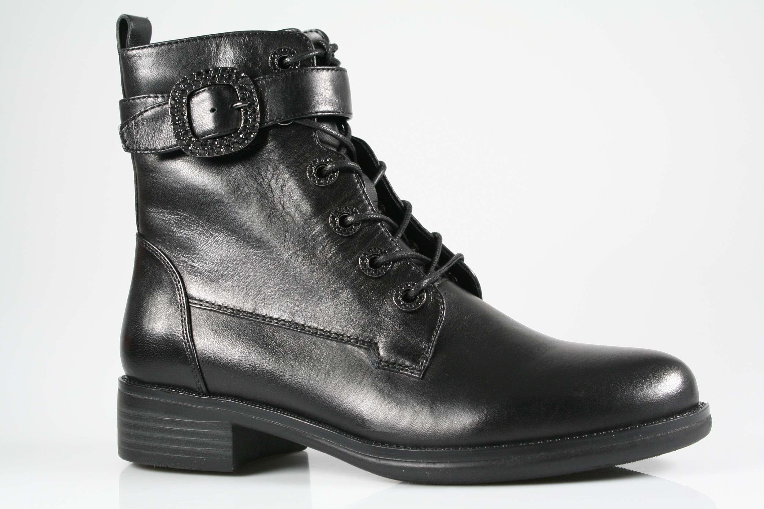 Typ: Boots; Farbe "black"; Ausstattung:; - Obermaterial: Glattleder; - Warmfutter; - weiches Fußbett; - flexible Laufsohle; - gepolsterter Schaftrand; - Schnürsenkel und Reißverschluss