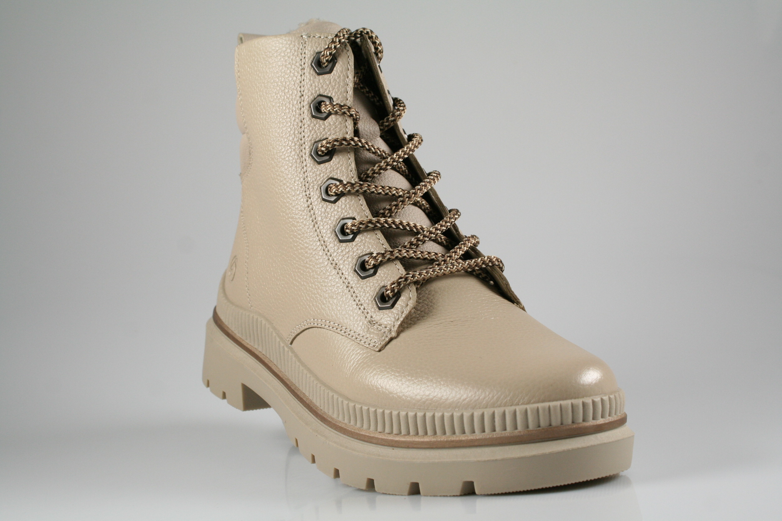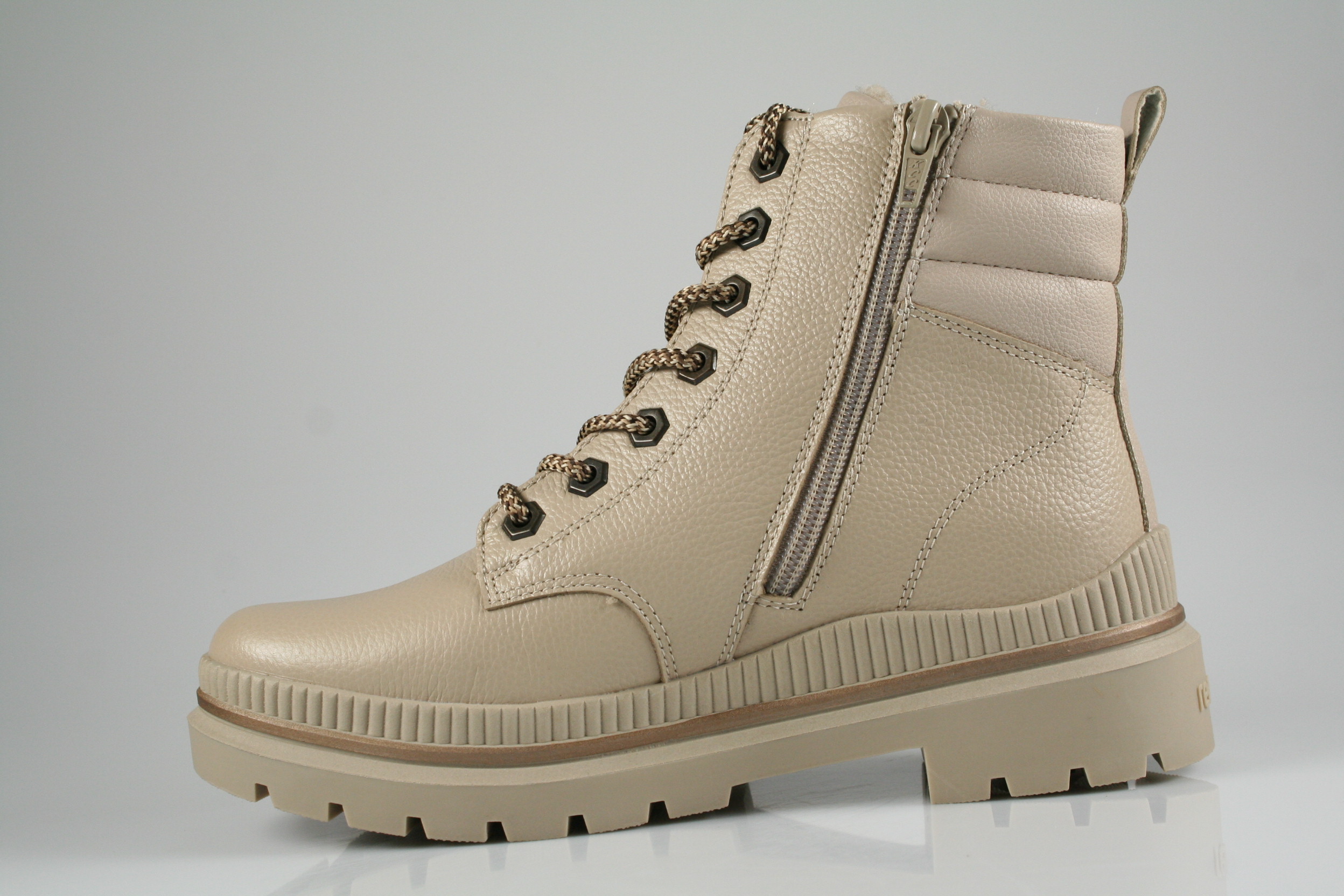 Typ: Boots; Farbe "beige"; Ausstattung:; - Obermaterial: Leder; - Warmfutter; - herausnehmbares Fußbett; - leichte Laufsohle; - gepolsterter Schaftrand; - Schnürsenkel zur Weitenregluierung; - Reißverschluss an der Innenseite