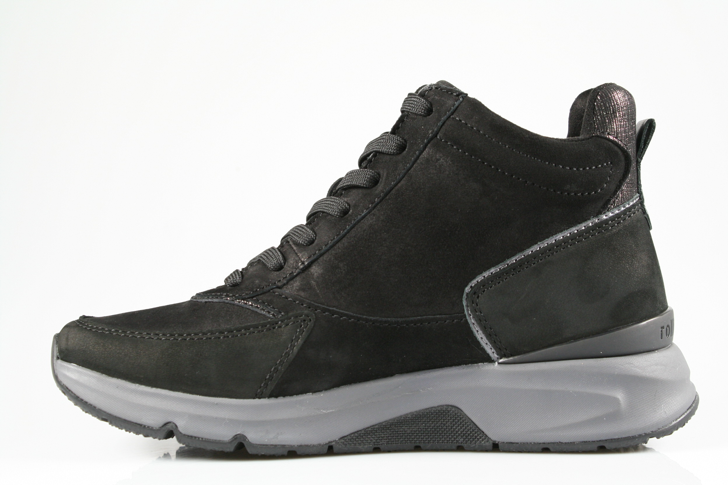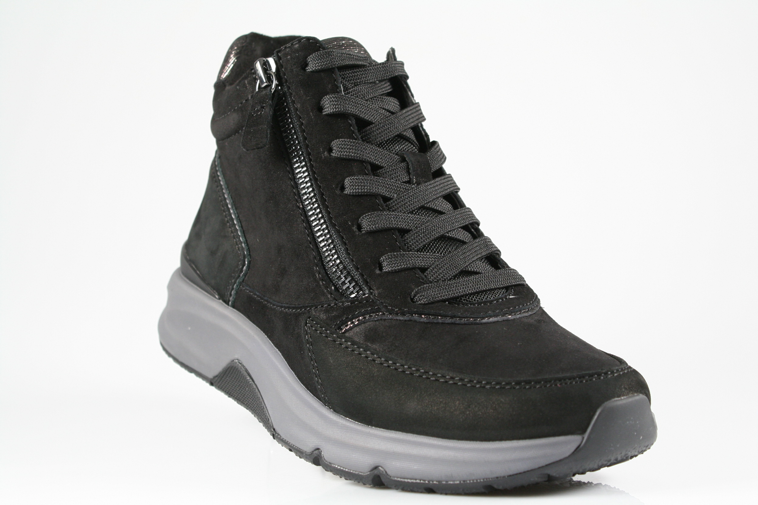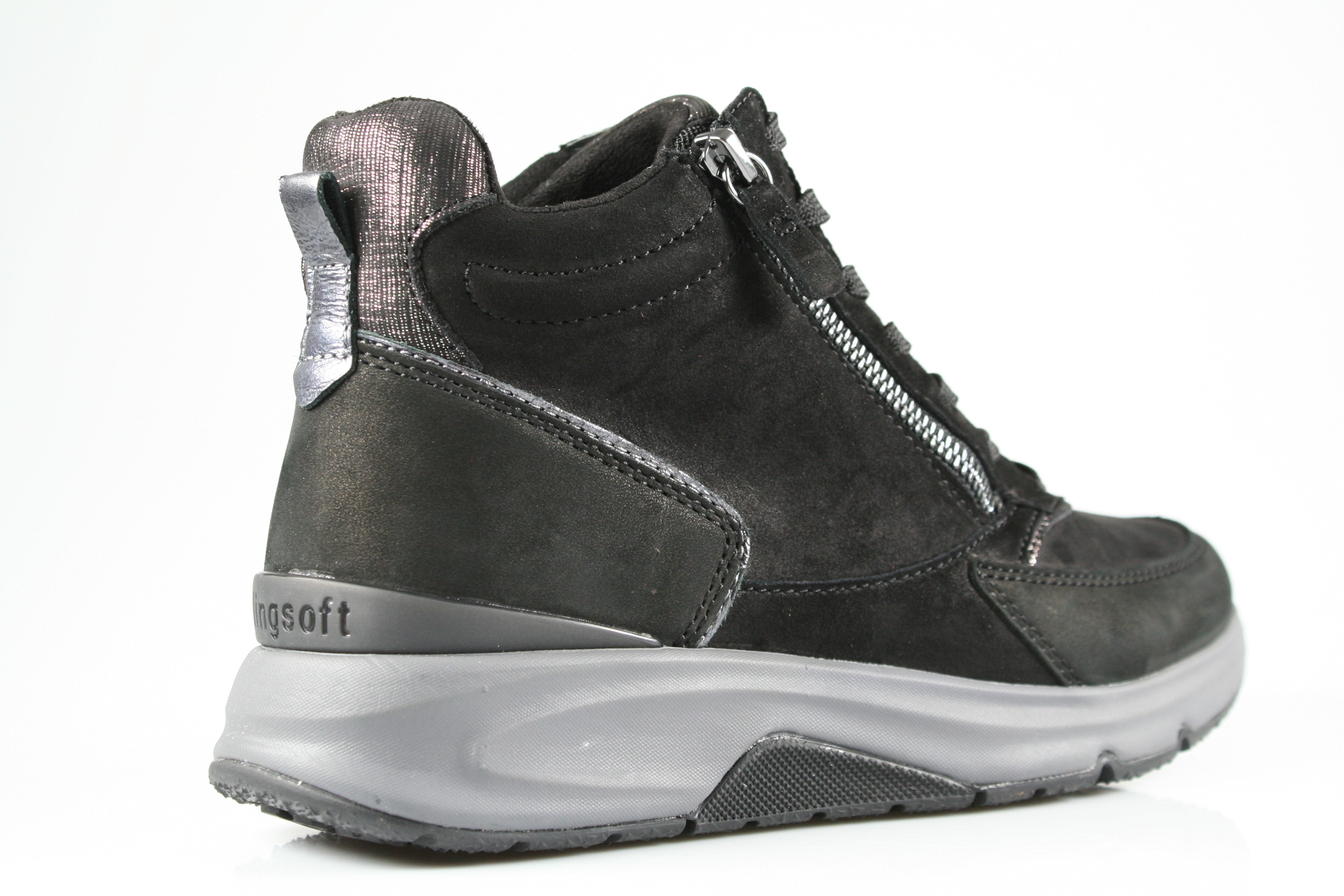 Typ: Boots; Farbe "schwarz/anthrazit"; Ausstattung:; - Obermaterial: Velourleder; - herausnehmbares Fußbett; - flexible Laufsohle; - gepolsterter Schaftrand; - Schnürsenkel und Reißverschluss zur Weitenregulierung