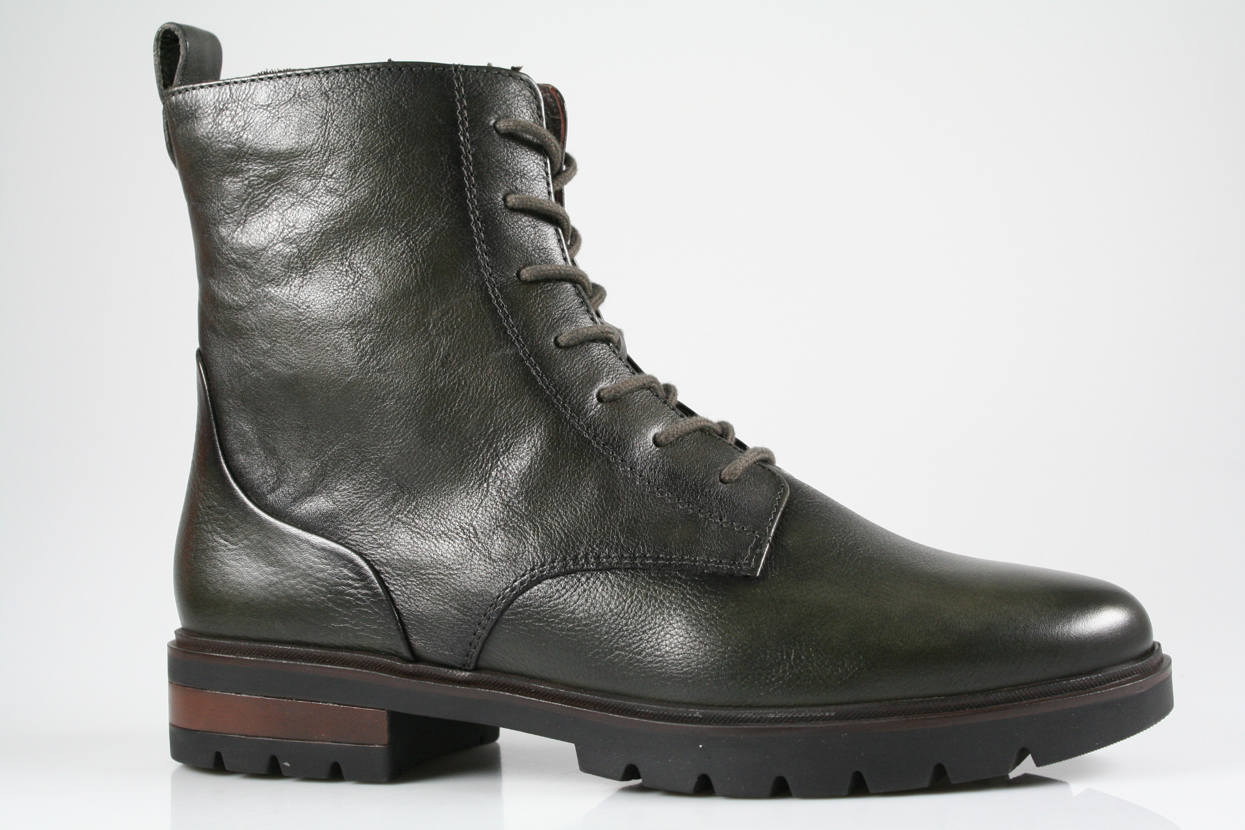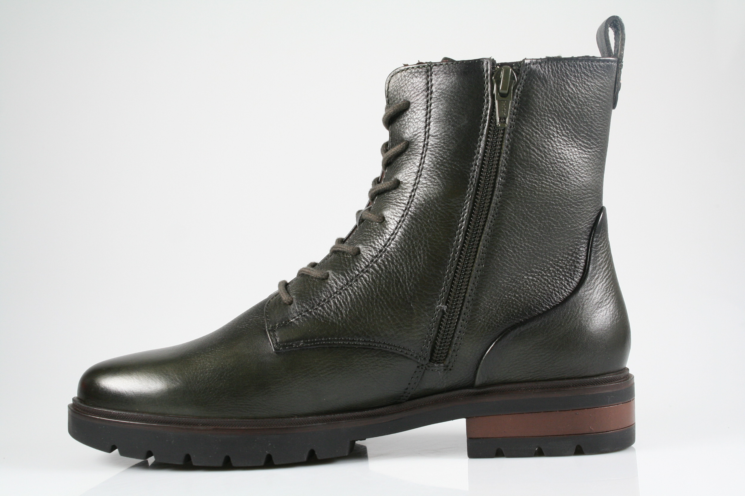 Typ: Boots; Farbe "forrest"; Ausstattung:; - Obermaterial: Leder; - Warmfutter; - herausnehmbares Fußbett; - flexible Laufsohle; - gepolsterter Schaftrand; - Schnürsenkel und Reißverschluss zur Weitenregulierung;