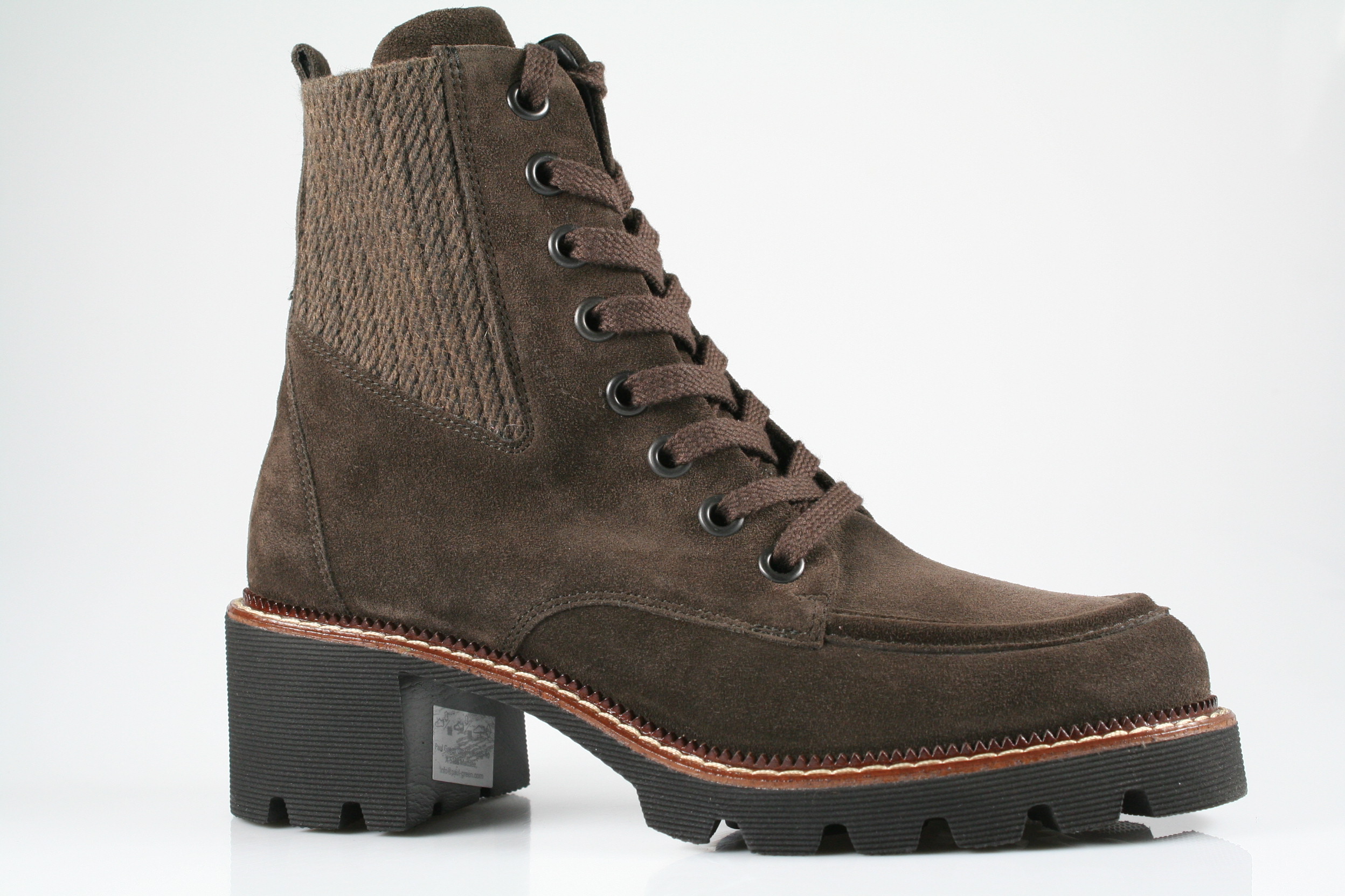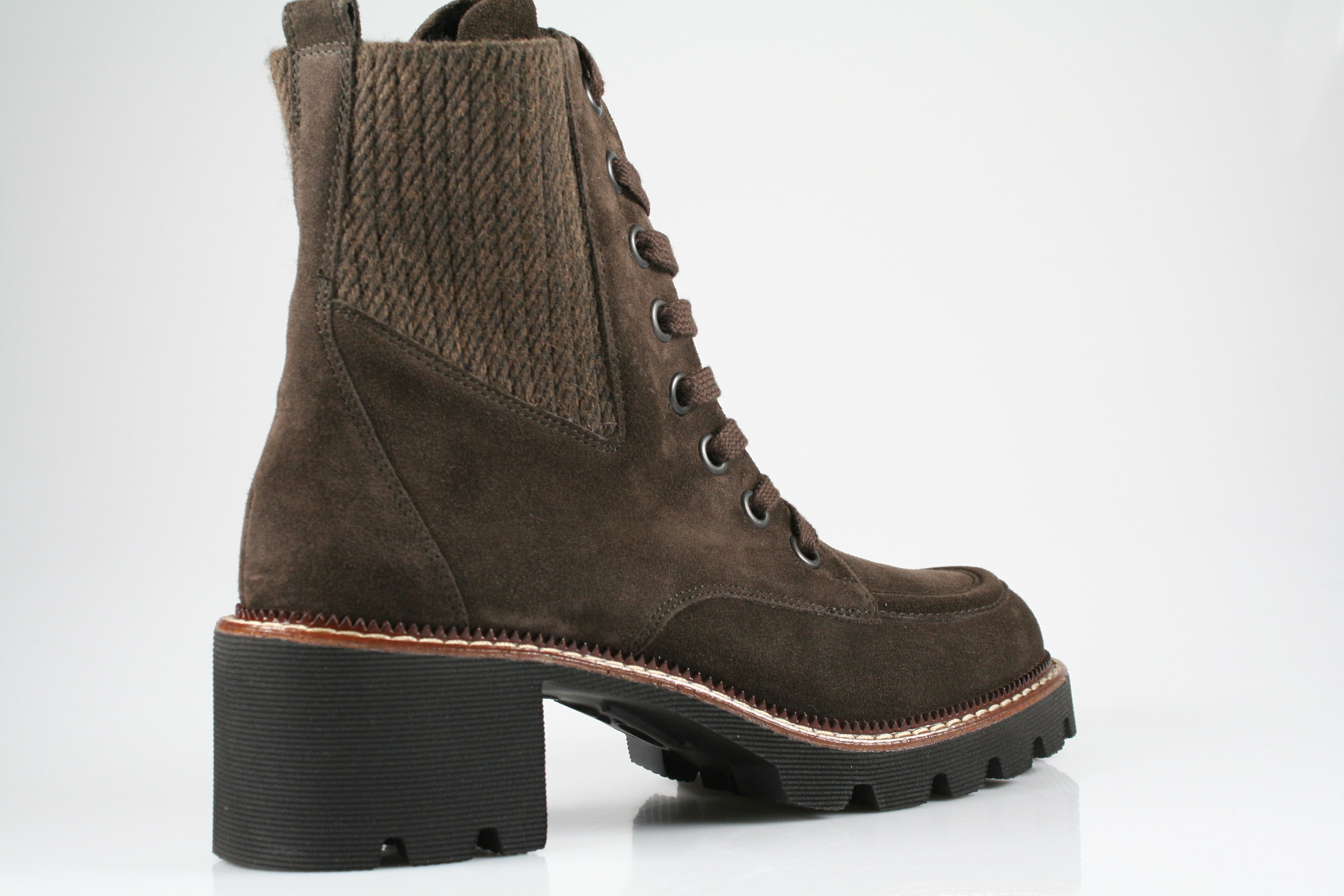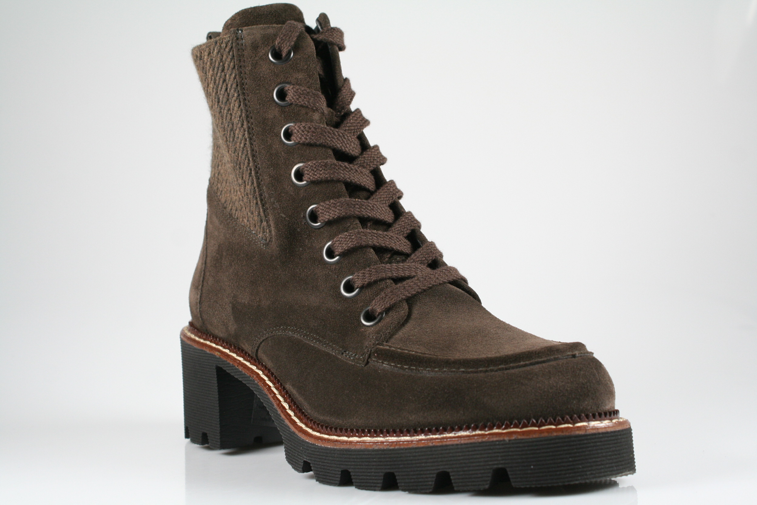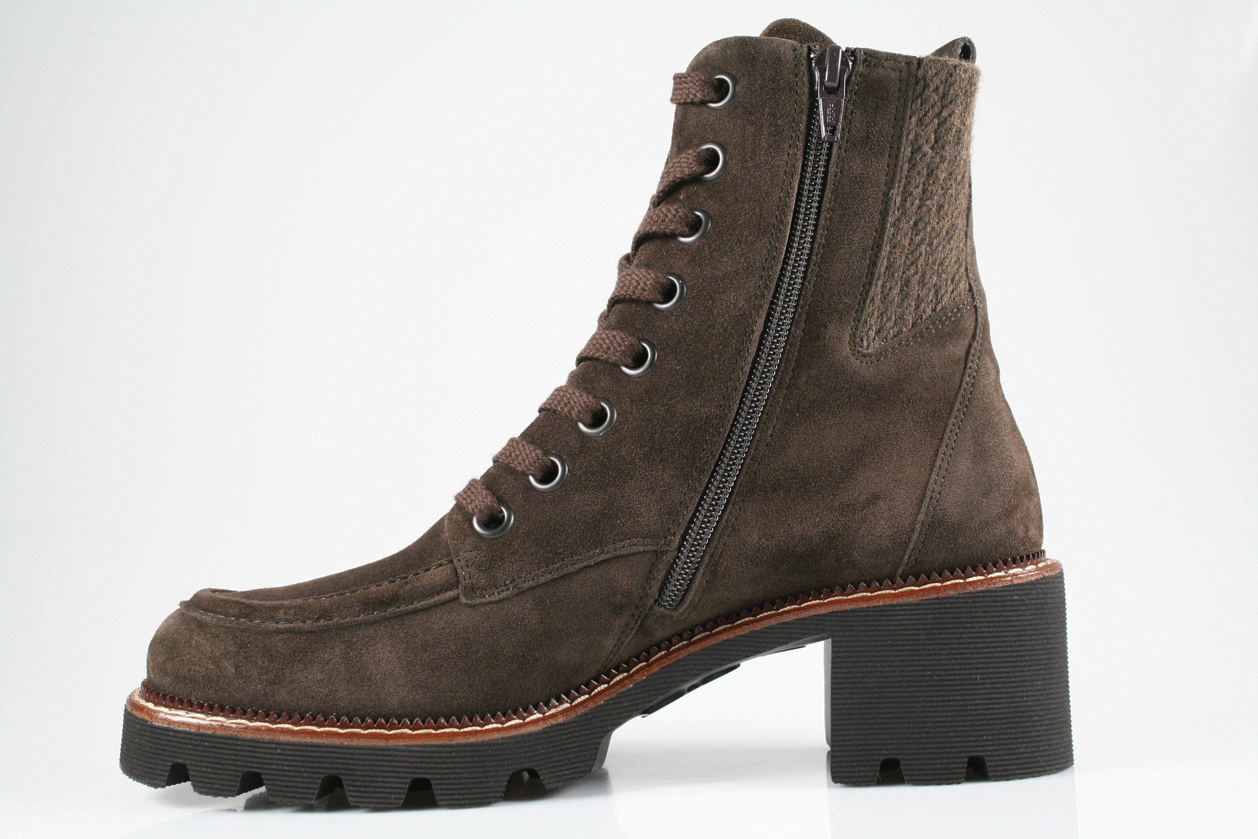 Typ: Boots; Farbe "mocca"; Ausstattung:; - Obermaterial: Velourleder; - weiches Fußbett; - leichte Laufsohle; - 45mm Blockabsatz; - gepolsterter Schaftrand; - Schnürsenkel zur Weitenregulierung; - Reißverschluss an der Innenseite