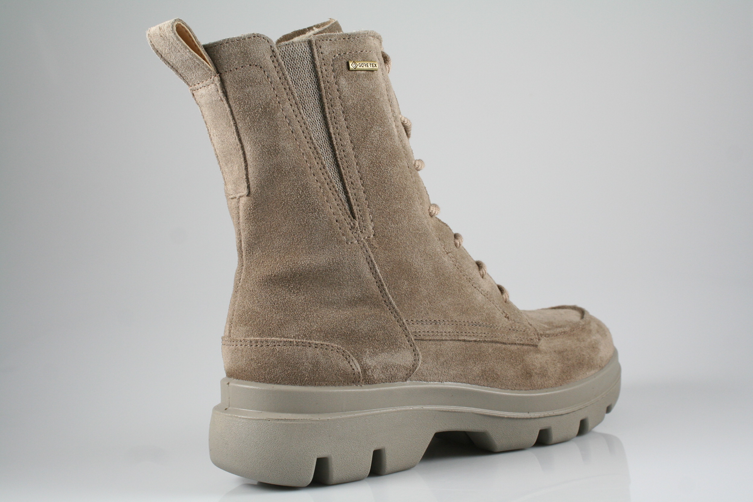 Typ: Boots; Farbe "giotto"; Ausstattung:; - Obermaterial: Velourleder; - Warmfutter; - herausnehmbares Fußbett; - flexible Laufsohle; - gepolsterter Schaftrand; - Schnürsenkel und Reißverschluss; - wasserfest durch "GoreTex"-Membrane