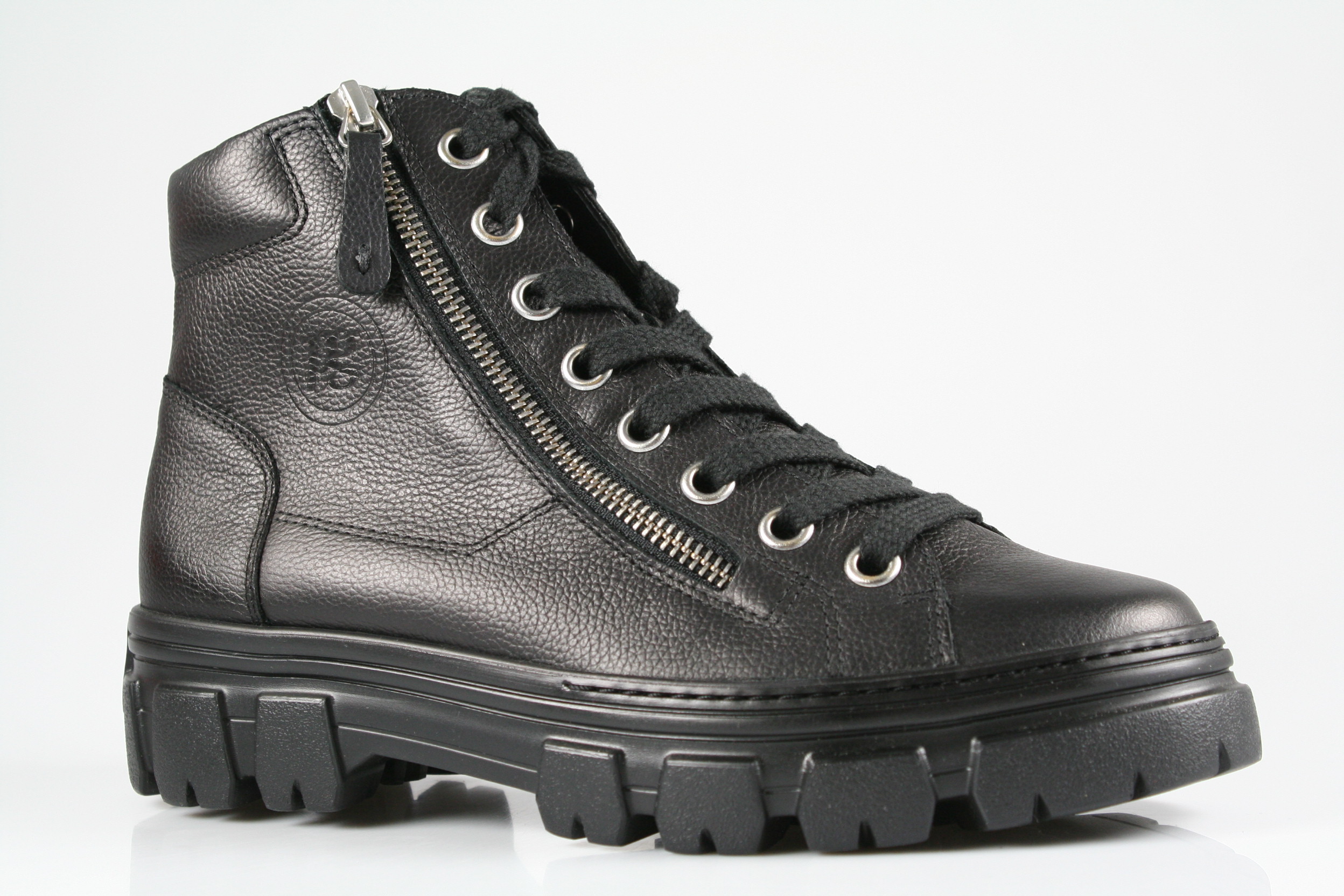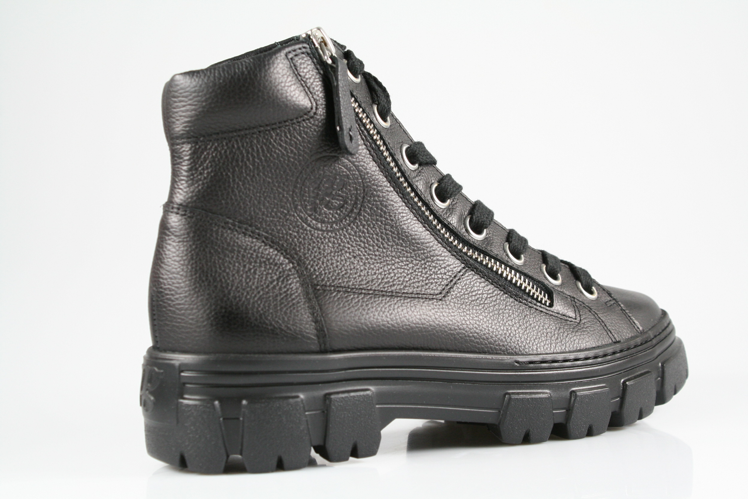 Typ: Boots; Farbe "black"; Ausstattung:; - Obermaterial: Leder; - weiches Fußbett; - flexible Laufsohle; - gepolsterter Schaftrand; - Schnürsenkel und Reißverschluss zur Weitenregulierung;
