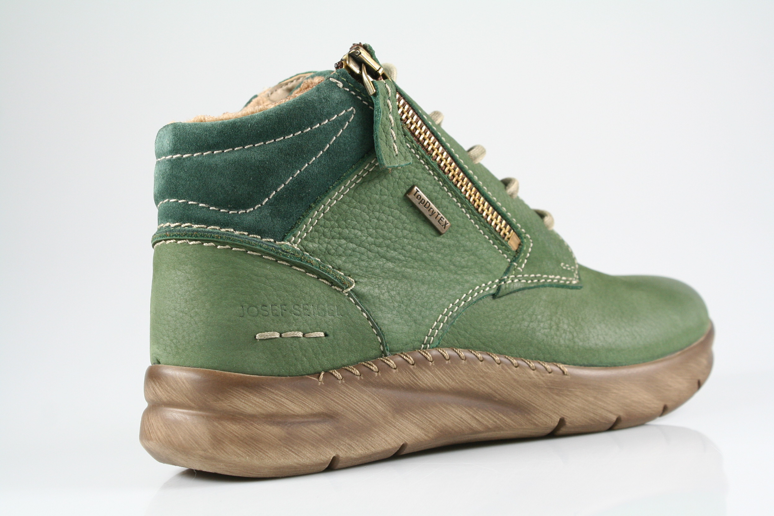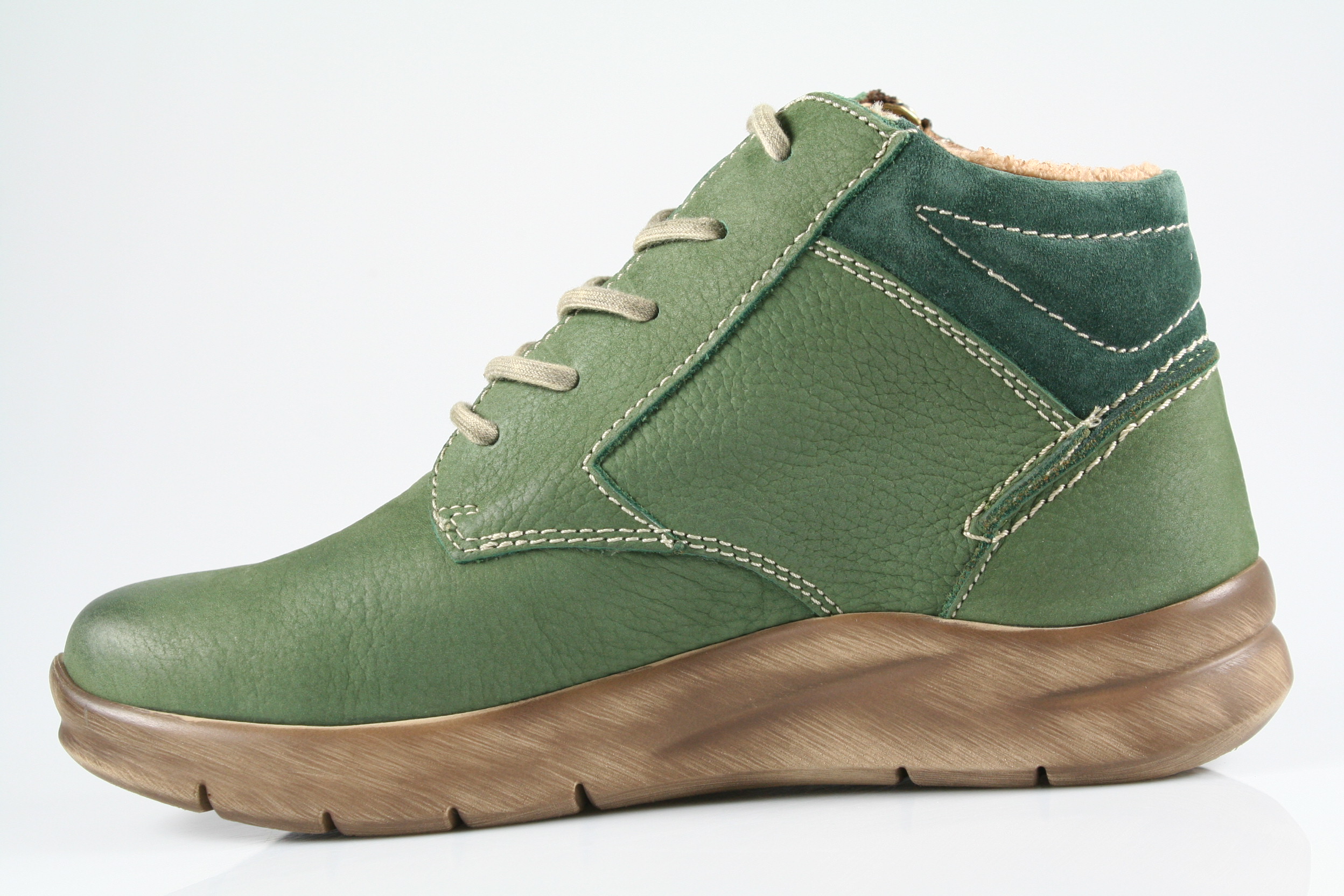 Typ: Boots; Farbe "grün"; Ausstattung:; - Obermaterial: Nappaleder; - Warmfutter; - herausnehmbares Fußbett ; - leichte Laufsohle; - gepolsterter Schaftrand; - Schnürsenkel und Reißverschluss; - wasserfest durch "TopDryTex"-Membrane
