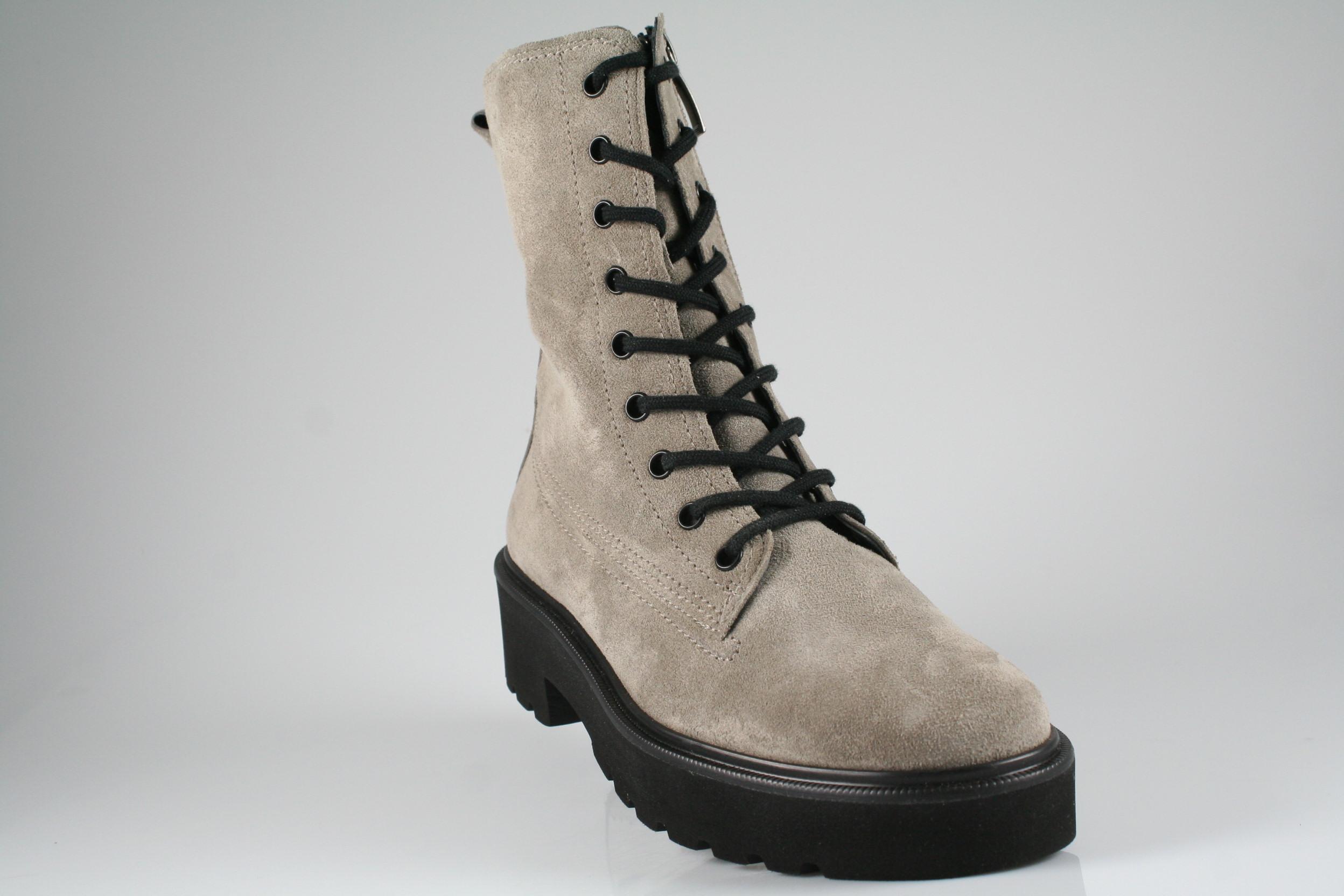 Typ: Boots; Farbe "stone"; Ausstattung:; - Obermaterial: Velourleder; - weiches Fußbett; - leichte und robuste Laufsohle; - Blockabsatz; - Schnürsenkel und Reißverschluss